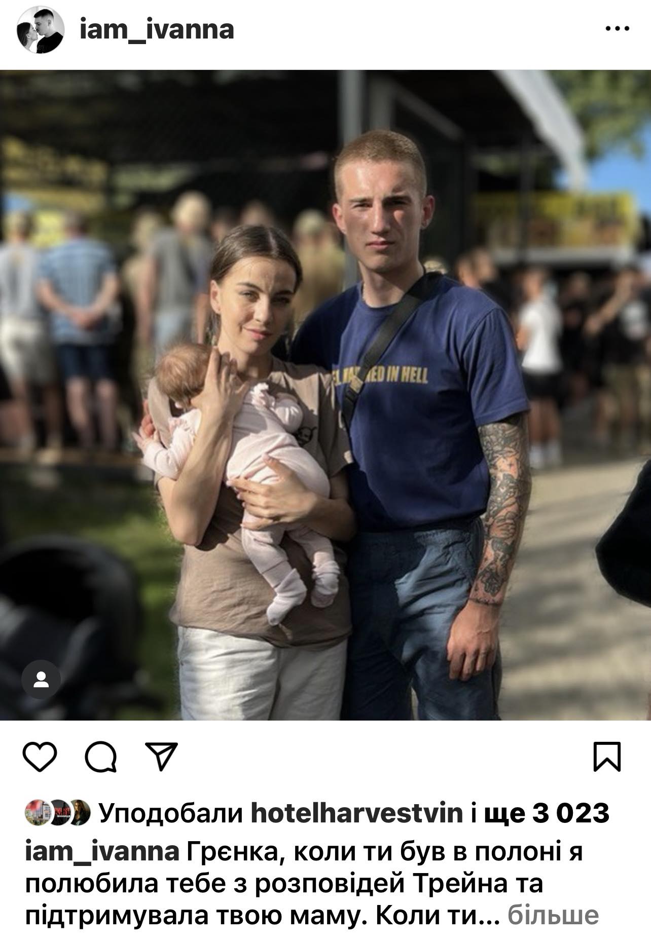Торік Вінниця прощалась ще з одним легендарним Героєм Денисом Бабієм «Трейном». Назар на церемонії прощання читав молитву Українського націоналіста. За словами дружини Трейна, тоді він став опорою для неї і її маленької доньки. Про це Іванна написала в Інстаграмі.