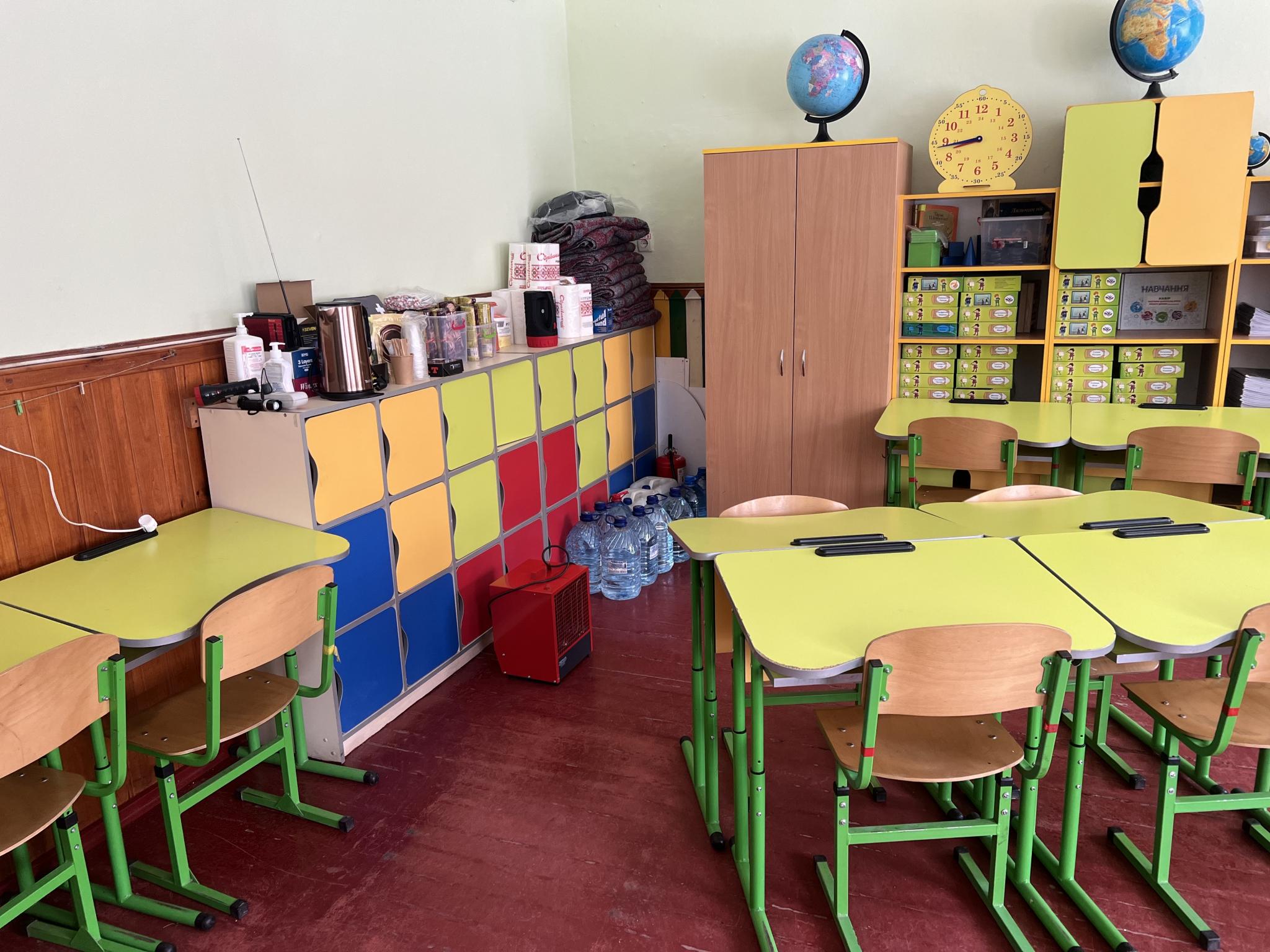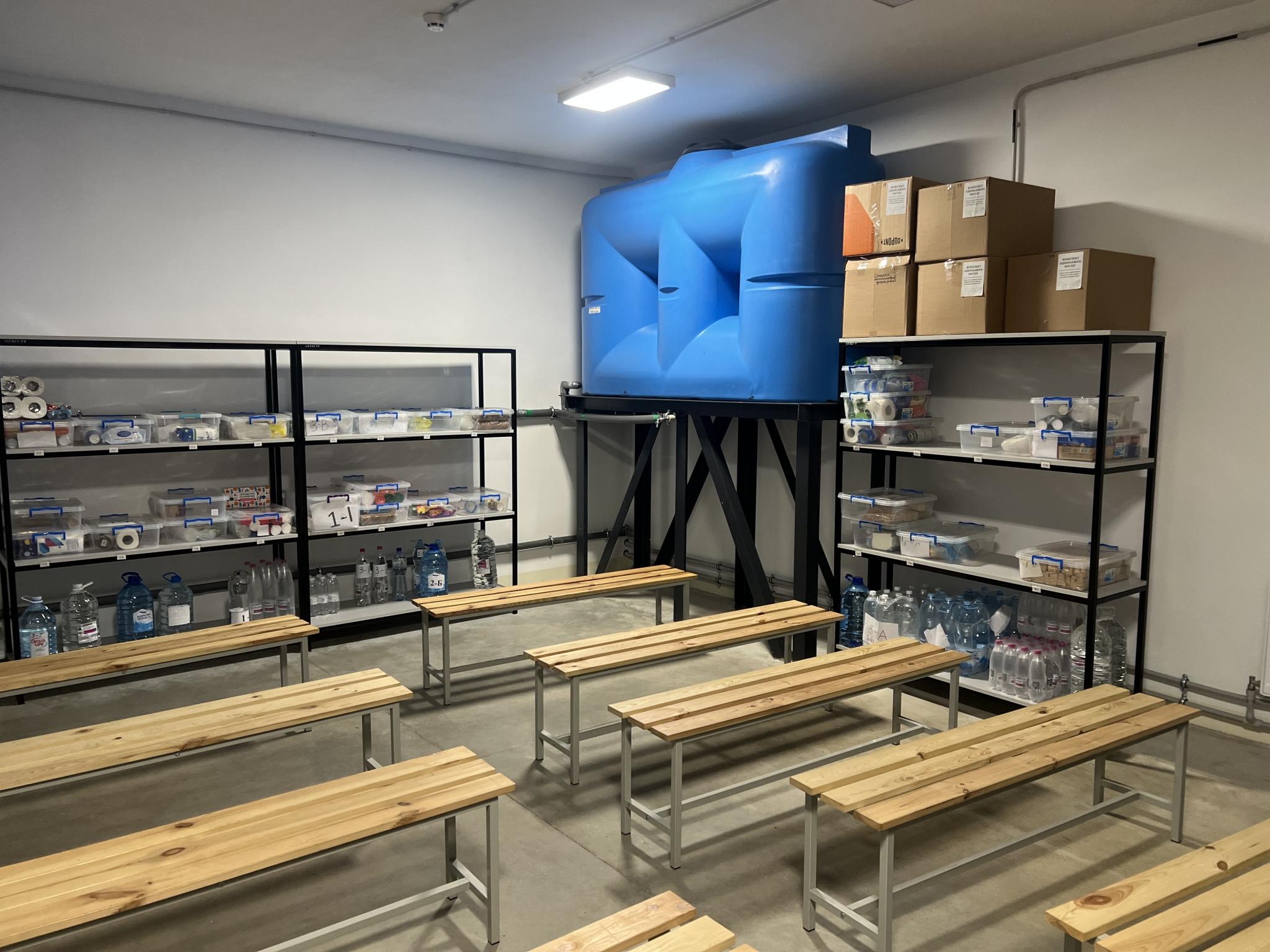 — Так, укриття оснащене всім необхідним: є окремі приміщення, класи, обладнані зони для перебування людей. Печиво і вода розміщені в харчоблоці, усе працює відповідно до вимог безпеки.