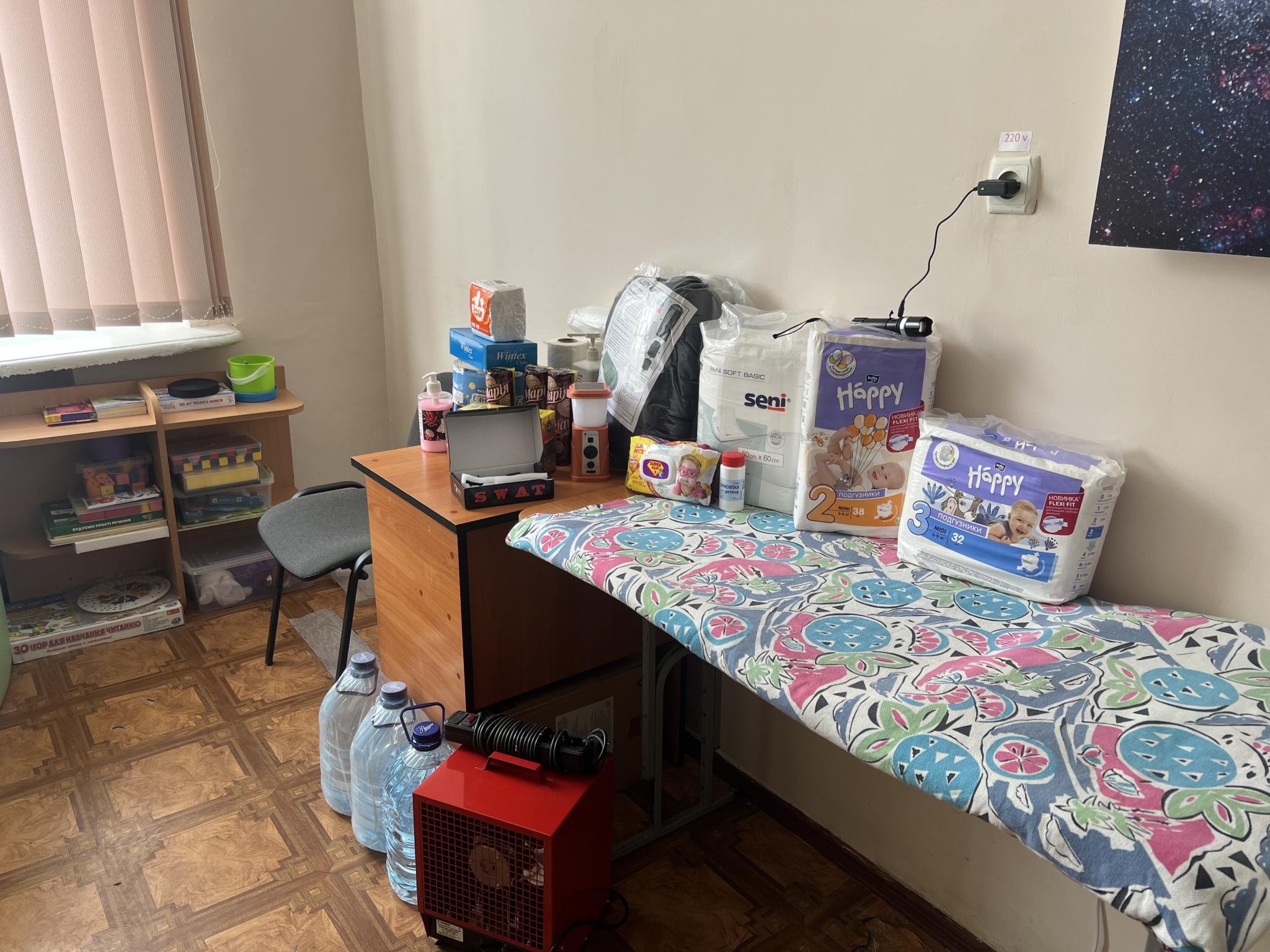 — Так, усе обладнання, яке ви бачите — обігрівачі, ковдри, аптечки, радіоприймачі, запаси води, генератор і паливо — надане міською радою, — зазначає Галина Миколаївна. — У разі потреби ми вмикаємо генератор, він повністю готовий до роботи.
