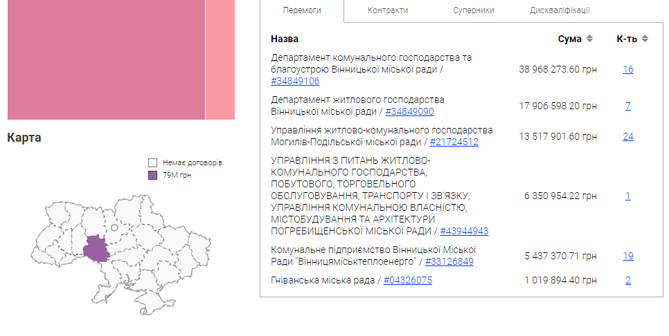 Та знову ж таки, найбільше замовлень ця фірма виконала від департаменту комунального господарства та благоустрою Вінницької міськради.