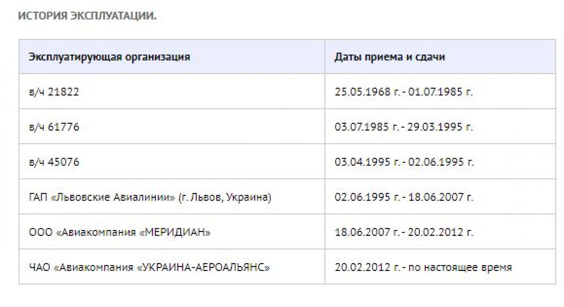 Літак був у експлуатації уже 51 рік. Належав авіакомпанії «Україна Аероальянс».