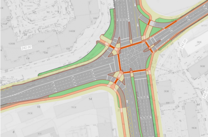 — Ще додаємо велопереїзди, нове озеленення і змінюється конфігурація світлофорного об’єкту, — розповідає директор КП «Агенція просторового розвитку» Максим Кравчук. — Підрядник рекомендує встановити окремі світлофори на кожній зі смуг руху, щоб було більше можливостей для додаткового керування цим перехрестям. Перелік змін неостаточний, буде уточнюватися під час розробки проектно-кошторисної документації.