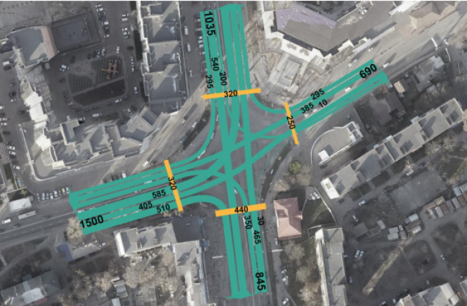 Підрядник зазначає, що в нинішньої схеми організації руху є кілька конфліктних точок, де перетинаються пішохідні та транспортні потоки.