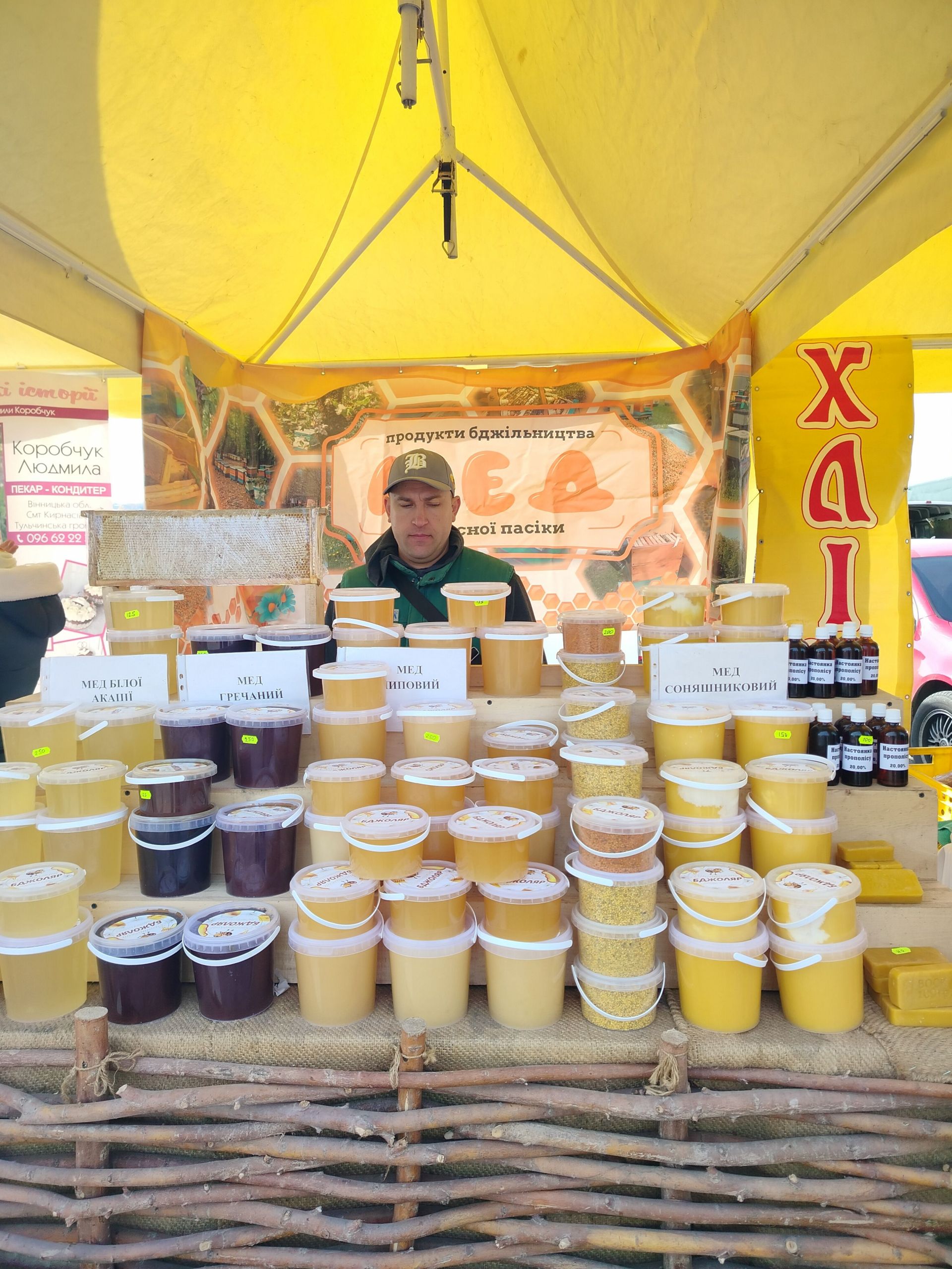 — Уся продукція — вироблена у Вінницькій міській територіальній громаді, — зазначає староста Вінницько-Хутірського старостинського округу Владислав Кривешко. — Разом з організаційним внеском ми додали донат на ЗСУ, оскільки збираємо кошти на машину для нашої новоствореної бригади морської піхоти. Ми маємо бути свідомі того, що саме завдяки нашим Збройним силам сьогодні ми можемо проводити цей ярмарок. Саме завдяки ним, є можливість збирати урожай, випікати хліб, виготовляти мед. Тому ми дякуємо ЗСУ та дякуємо вінничанам, які сьогодні та наступні дні завітають на ярмарок.
