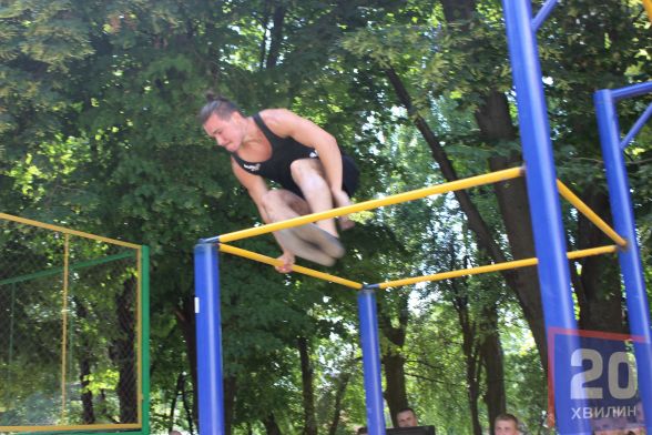 - Приїхали із Житомира, Києва, Жмеринки, Хмельницький, Бар. На фоні інших міст Вінниця досить таки непогано виглядає. Дуже багато вінницьких спорсменів займали призові місця. До речі, зараз займаємося у Центральному парку, також тренуємо дітей.Ввечері стануть відомі переможці, поки що ж хлопці викладаються на повну, “літаючи” над турніками із такою легкістю, ніби не важать ані граму.
