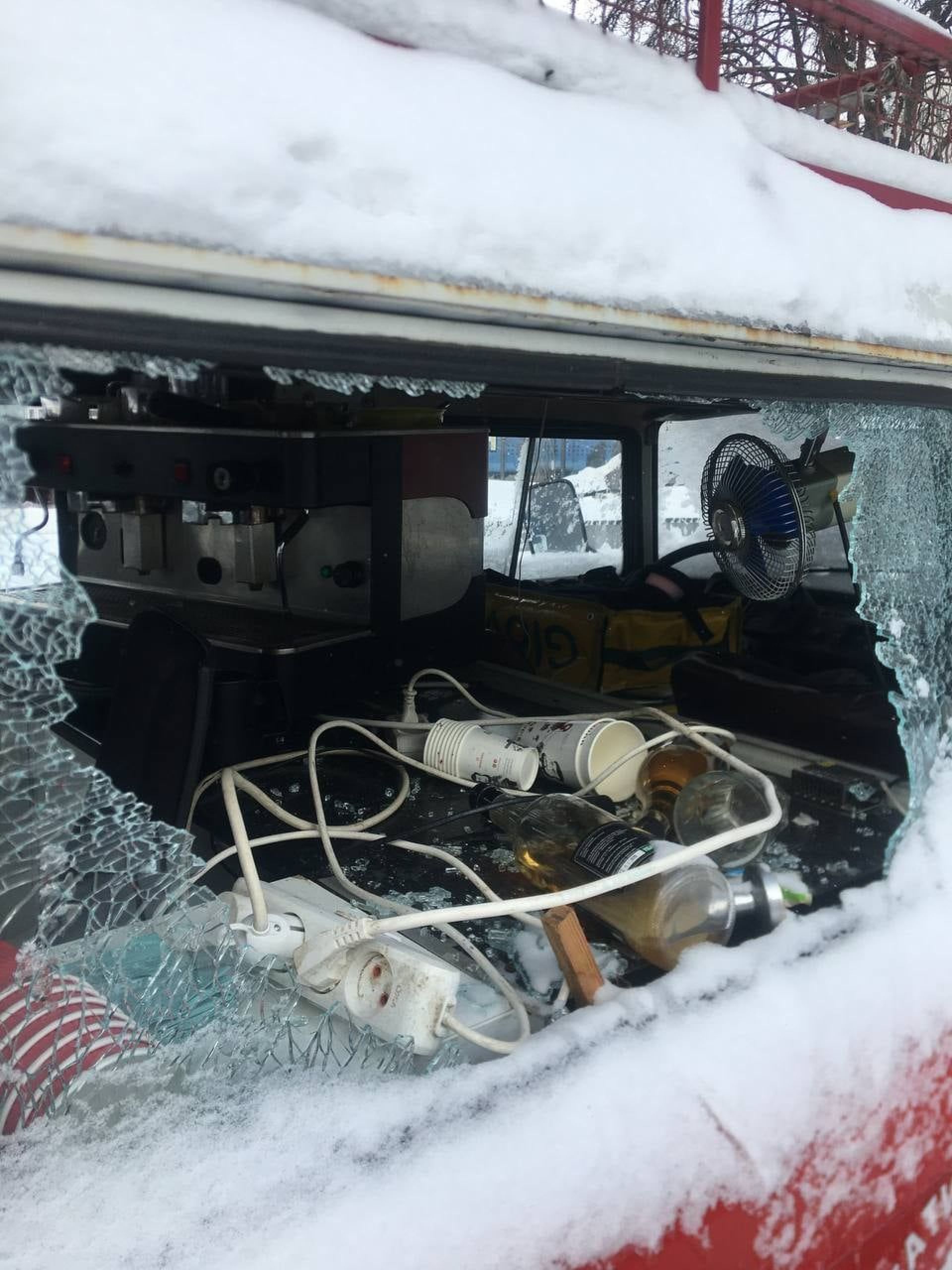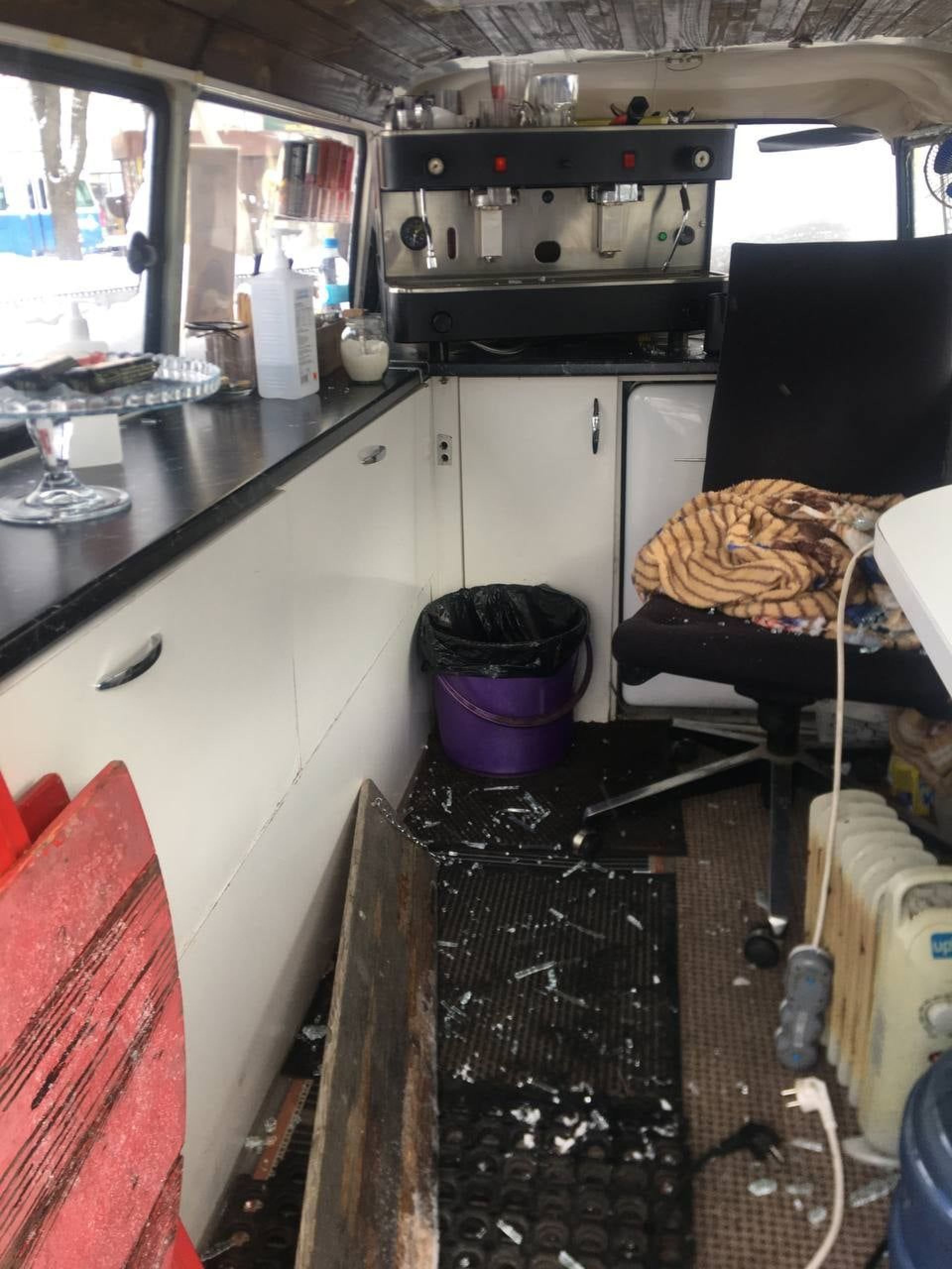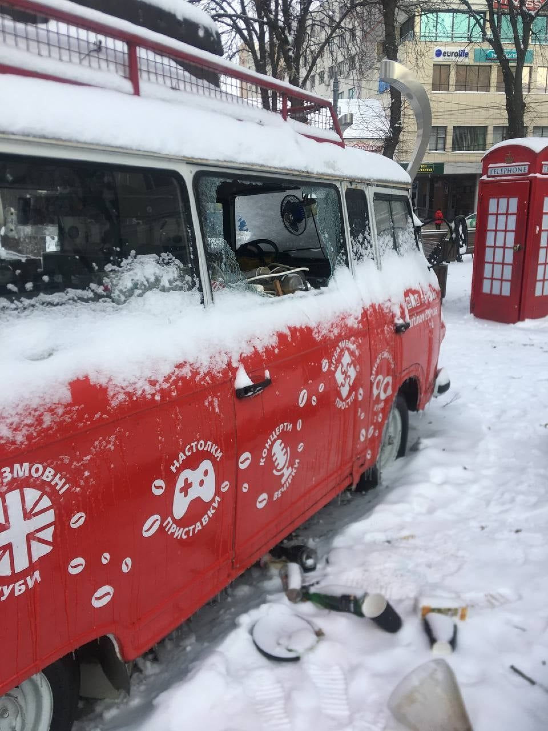 Про інцидент у фейсбук пише Креативний простір Артинов. Вони розповідають, що вандали на площі Ліверпуль розбили їх бус, де вони продавали кава.