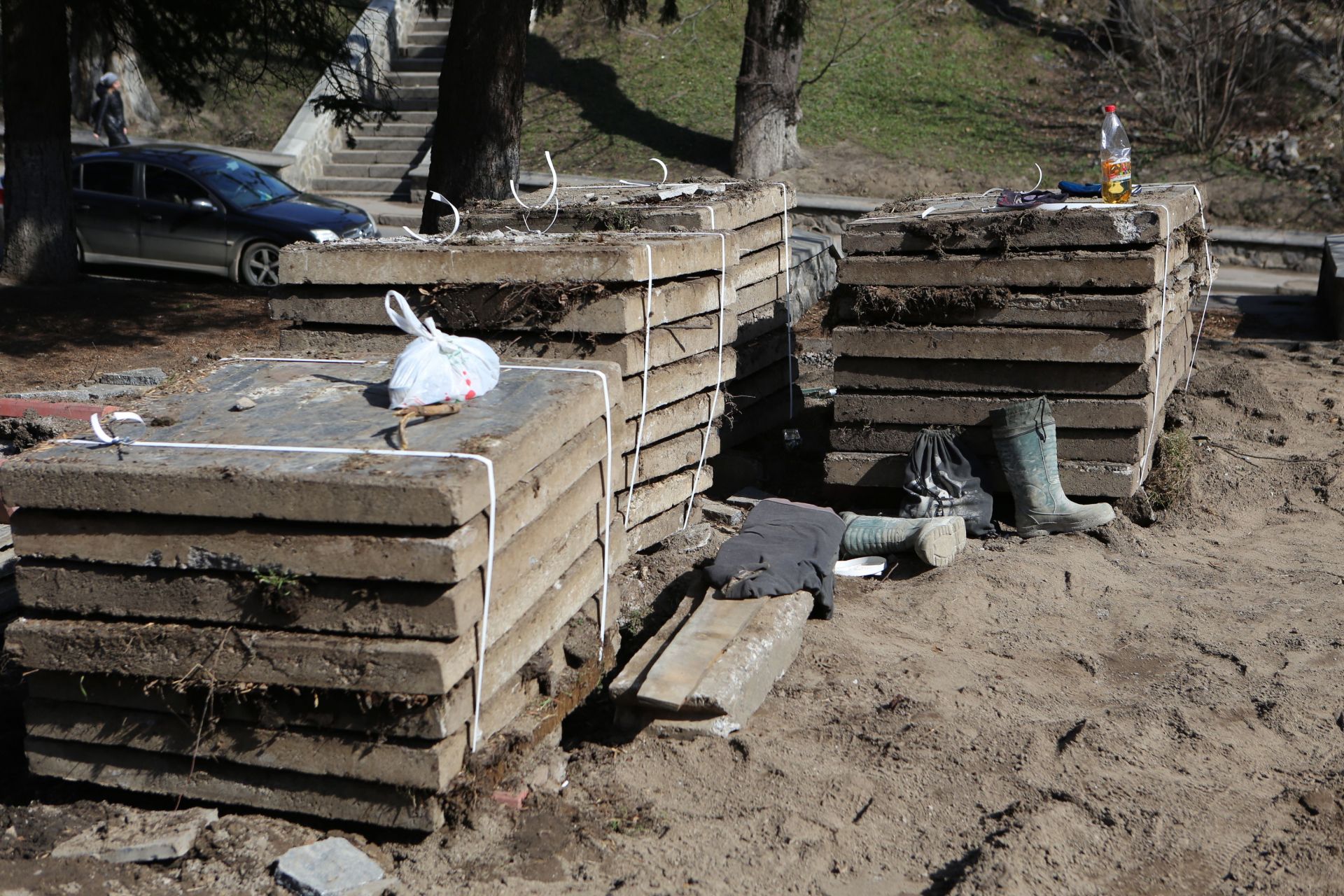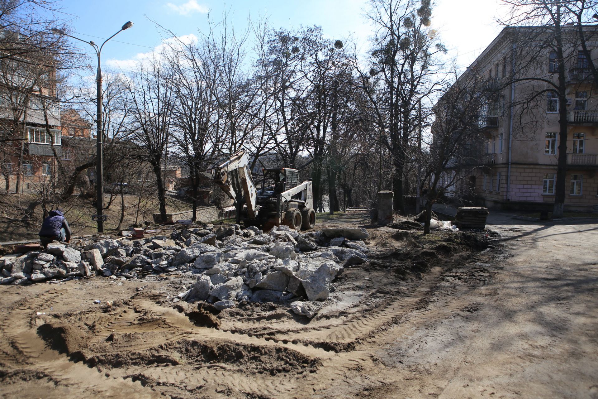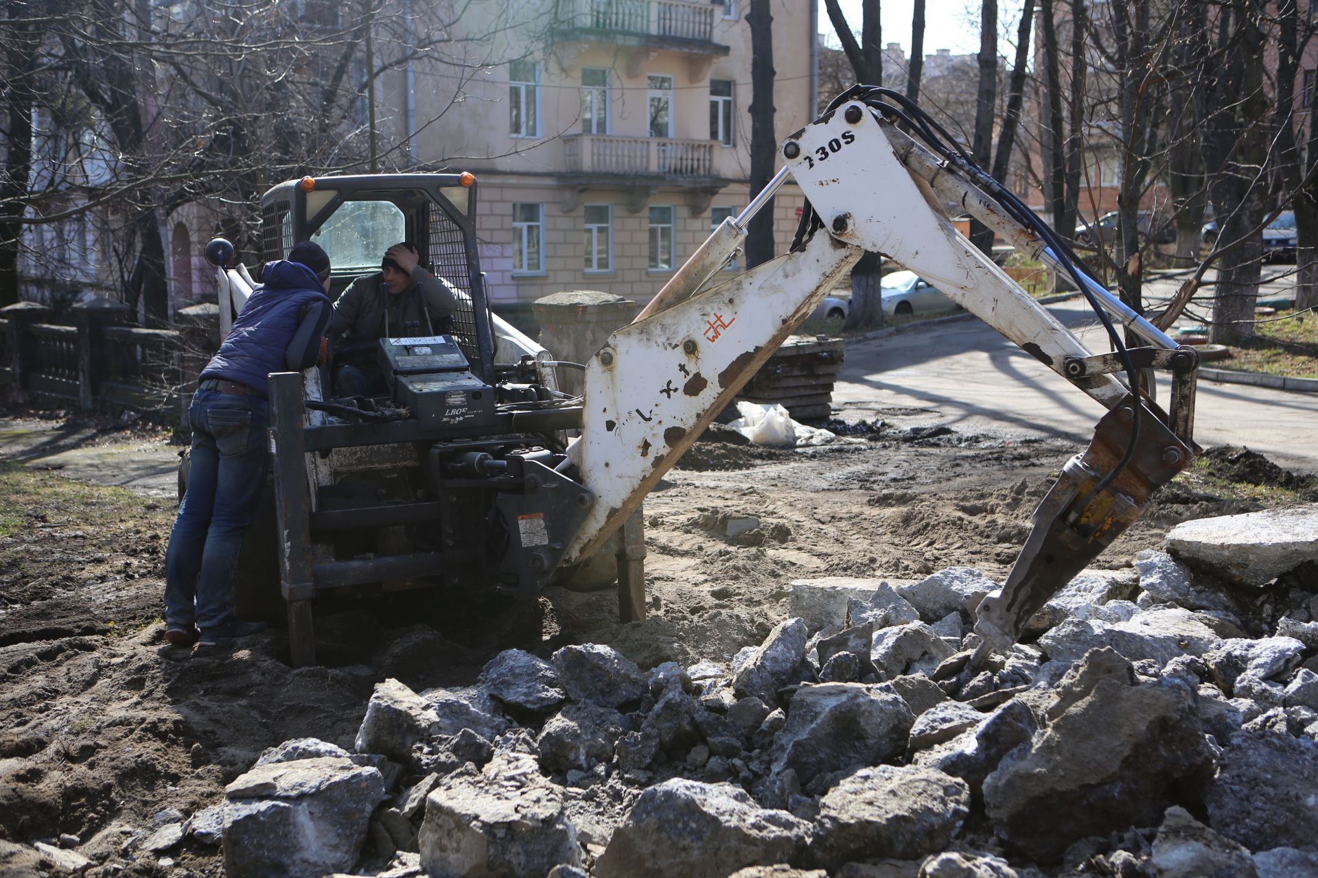 Захаращений сквер між будинками №54 та №58, що є на вулиці Оводова, почали ремонтувати. Нині тут працюють два робітники.