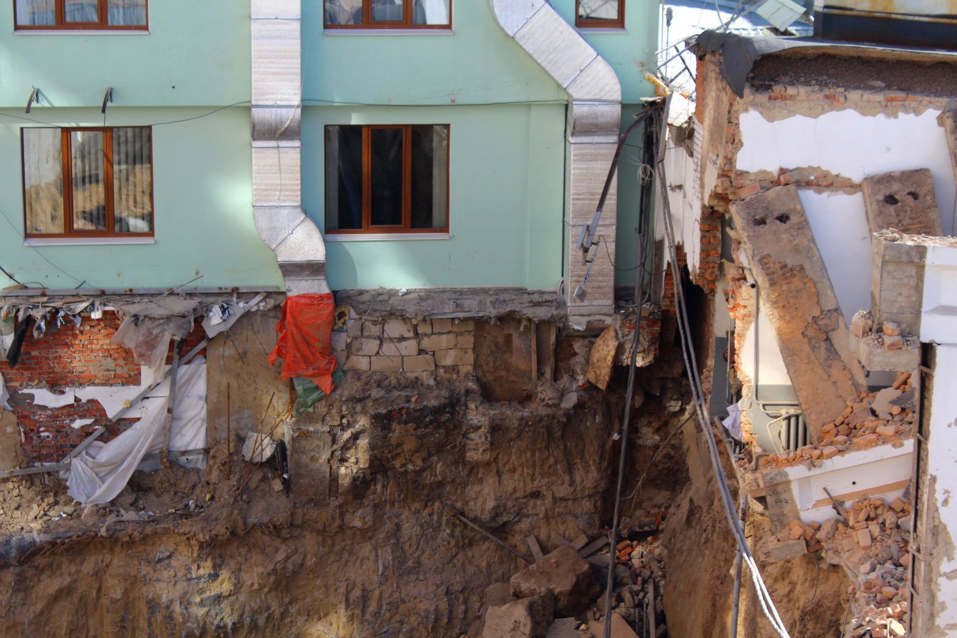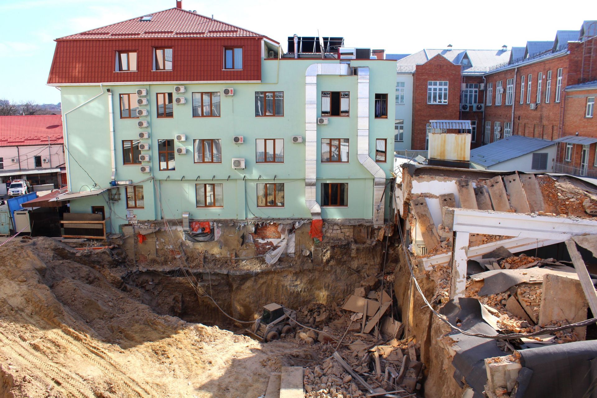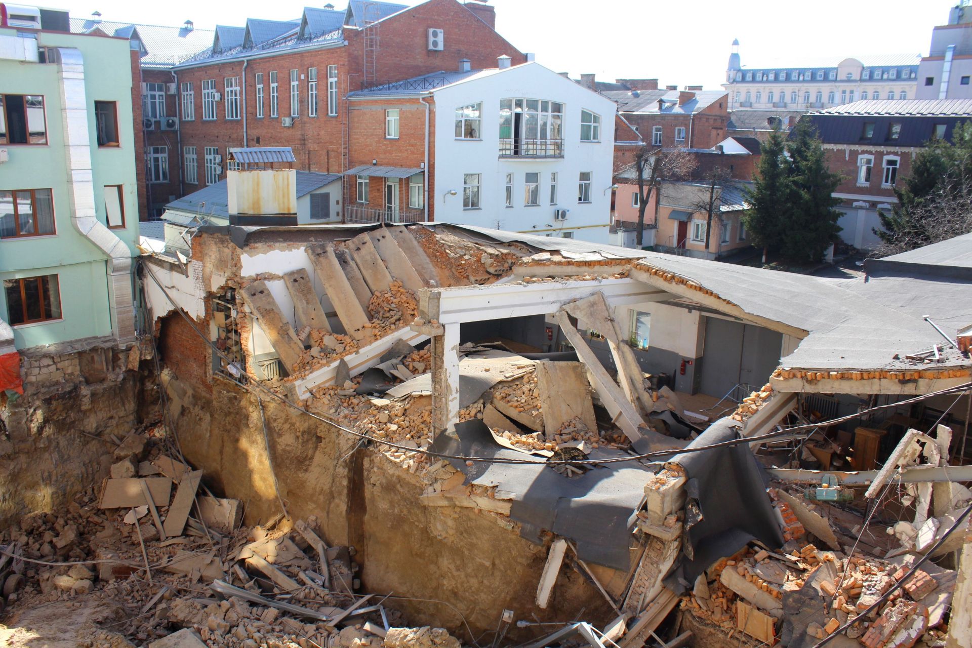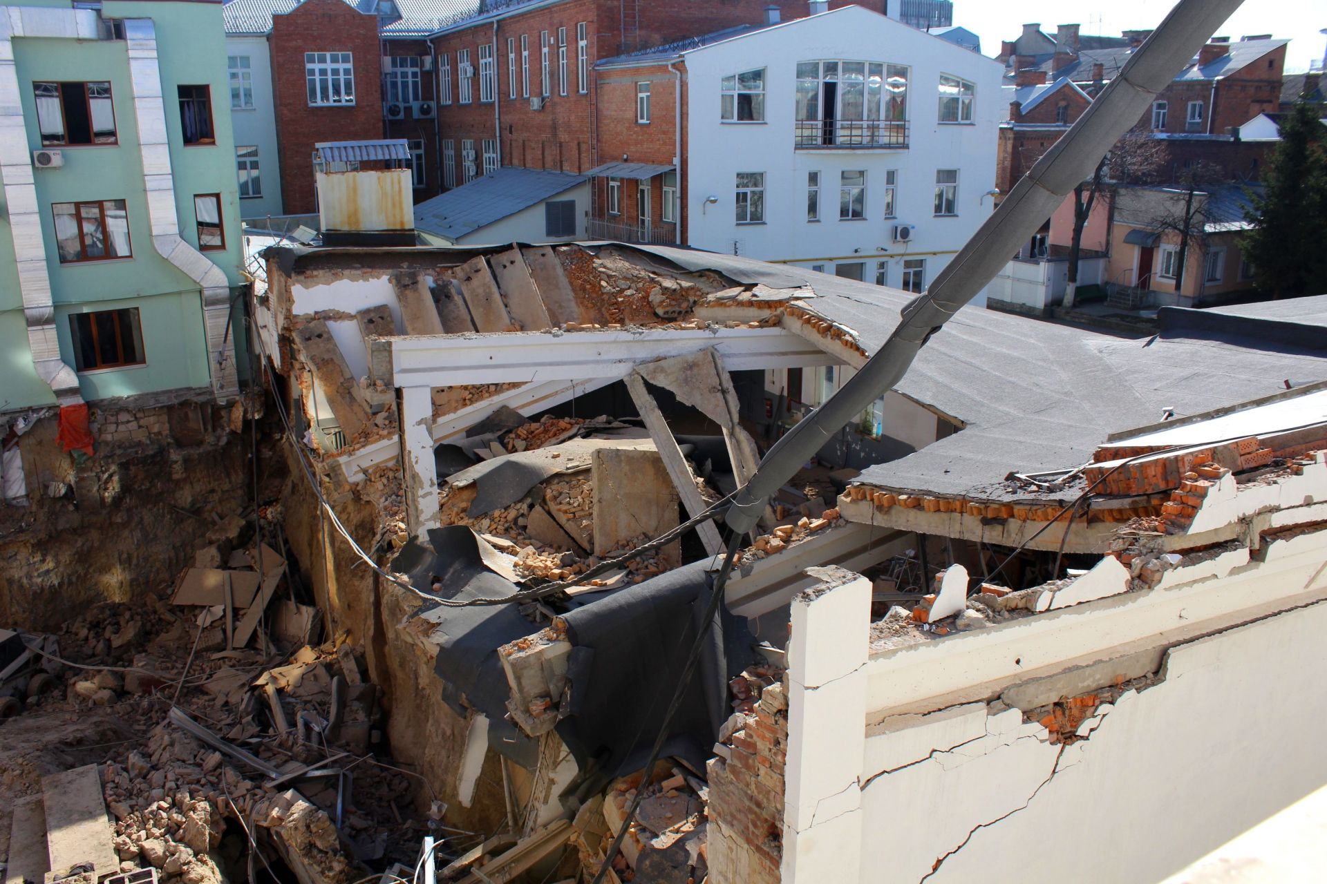 - Завалилася стіна між готелем «Франція» та Управлінням Нацбанку України у Вінницькій області.