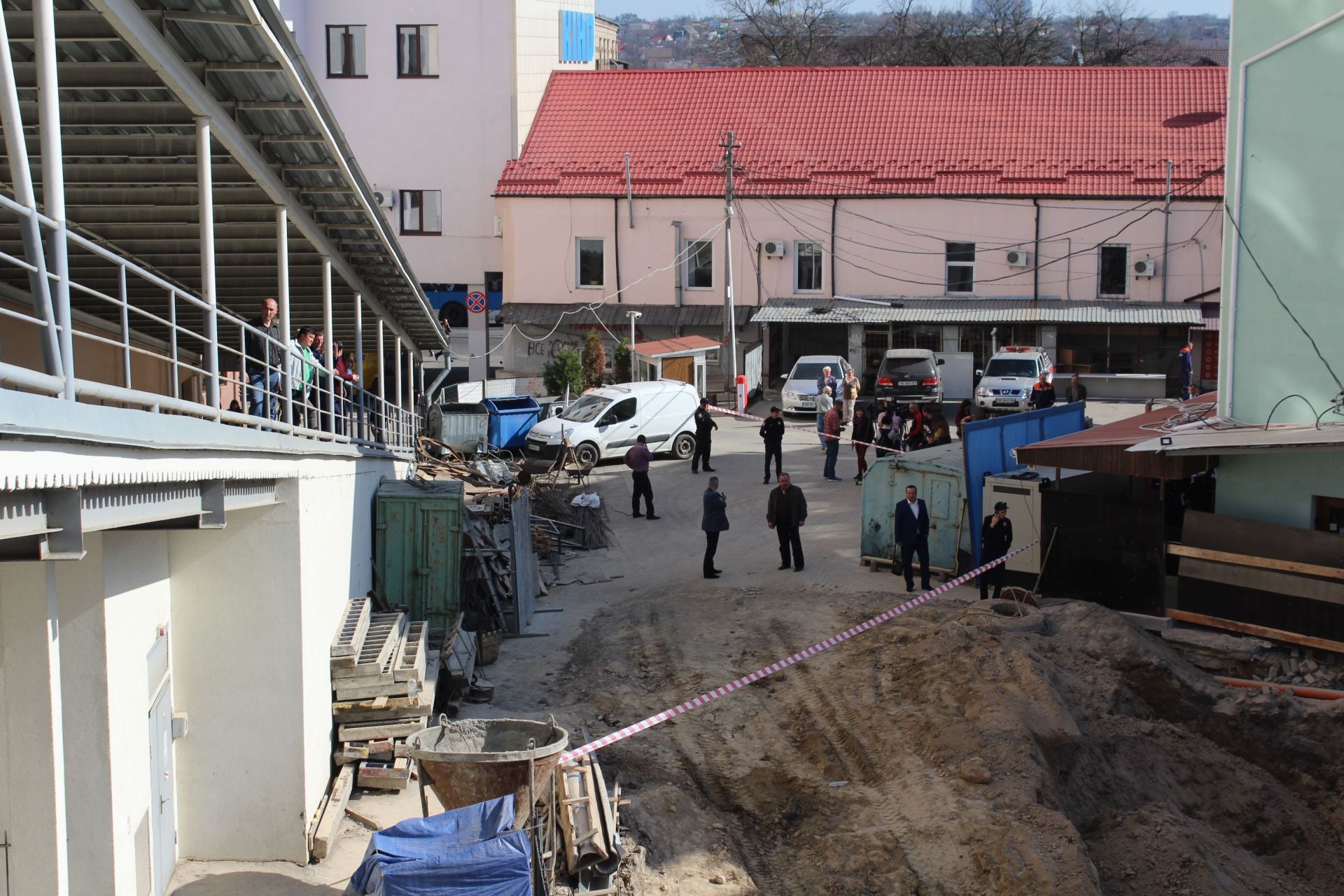 Прохід до місця обвалу обмежили стрічкою, за неї не пускали нікого. Журналісти чекали офіційного коментаря.
