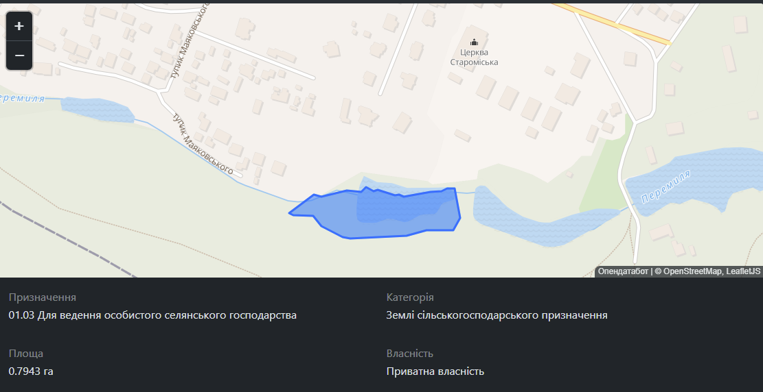 Проте станом на 26 лютого земля зі Староміським озером ще у приватній власності Таїсії Мулюкової.