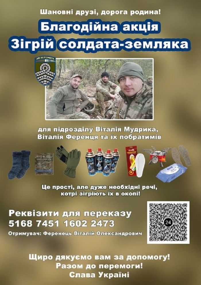 Злата закликала своїх друзів та шанувальників підтримати акцію Віталія, щоб дати можливість зігрітися у холодні дні тим, хто в окопах, хто зі зброєю у руках боронить рідну землю.
