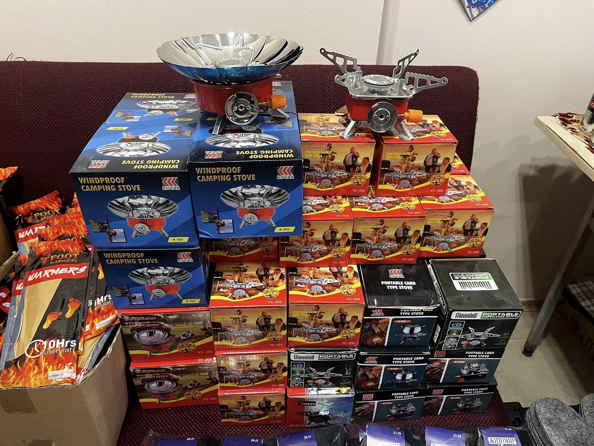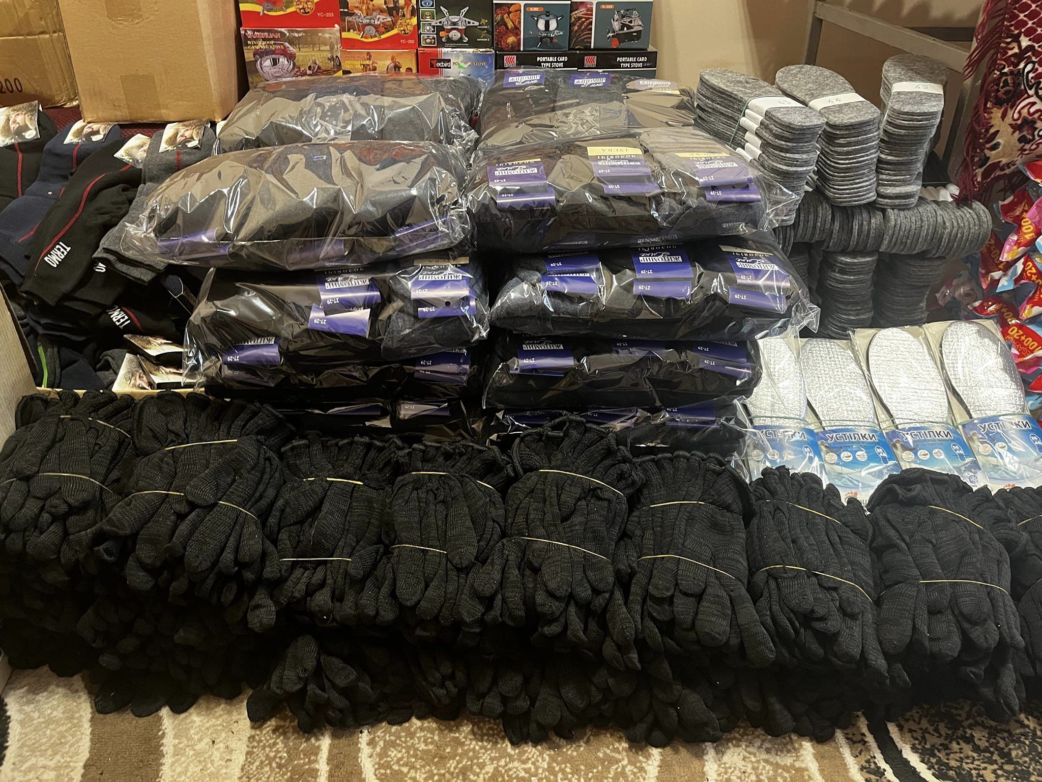 Ось тільки деякі з них: теплі шкарпетки, термошкарпетки; устілки — войлочні, хімічні, термо; газові балончики і газові плити; павербанки; ліки; сухий спирт; засоби гігєни.