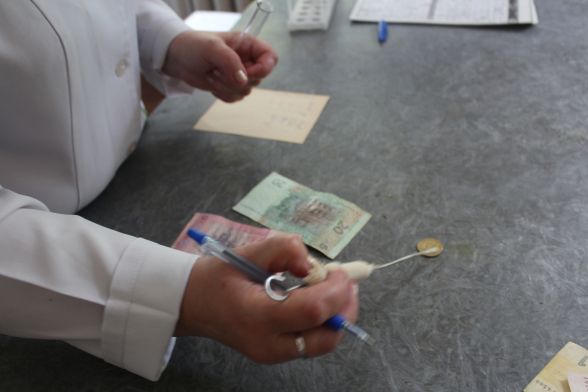 Лаборант взяла шість герметично запакованих пробірок, стерильним тампоном зробила змиви з кожної купюри. Зразки пронумерували і на три дні помістили до спеціальної печі, щоб накопичити мікроби і мати можливість їх висіяти.