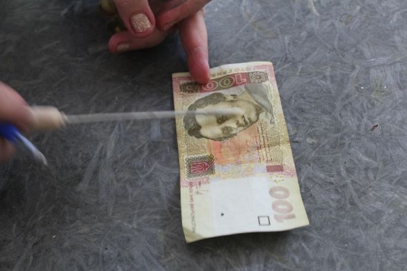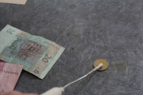 На перевірку взяли шість зразків - одна гривня, 10 гривень, 20 гривень, 100 гривень, 500 гривень і 50 копійок.