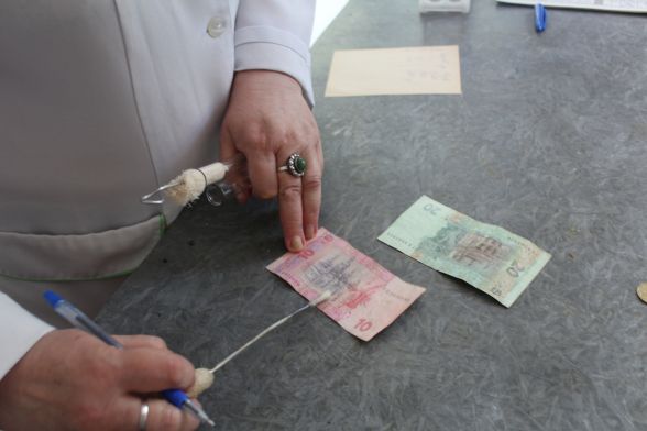 Завідувачка баклабораторії, бактеріолог Олена Марцінковська спочатку не зрозуміла, в чому сенс такої перевірки, адже зрозуміло, що гроші брудні, мовляв, чого шукати. Але потім згодилася.