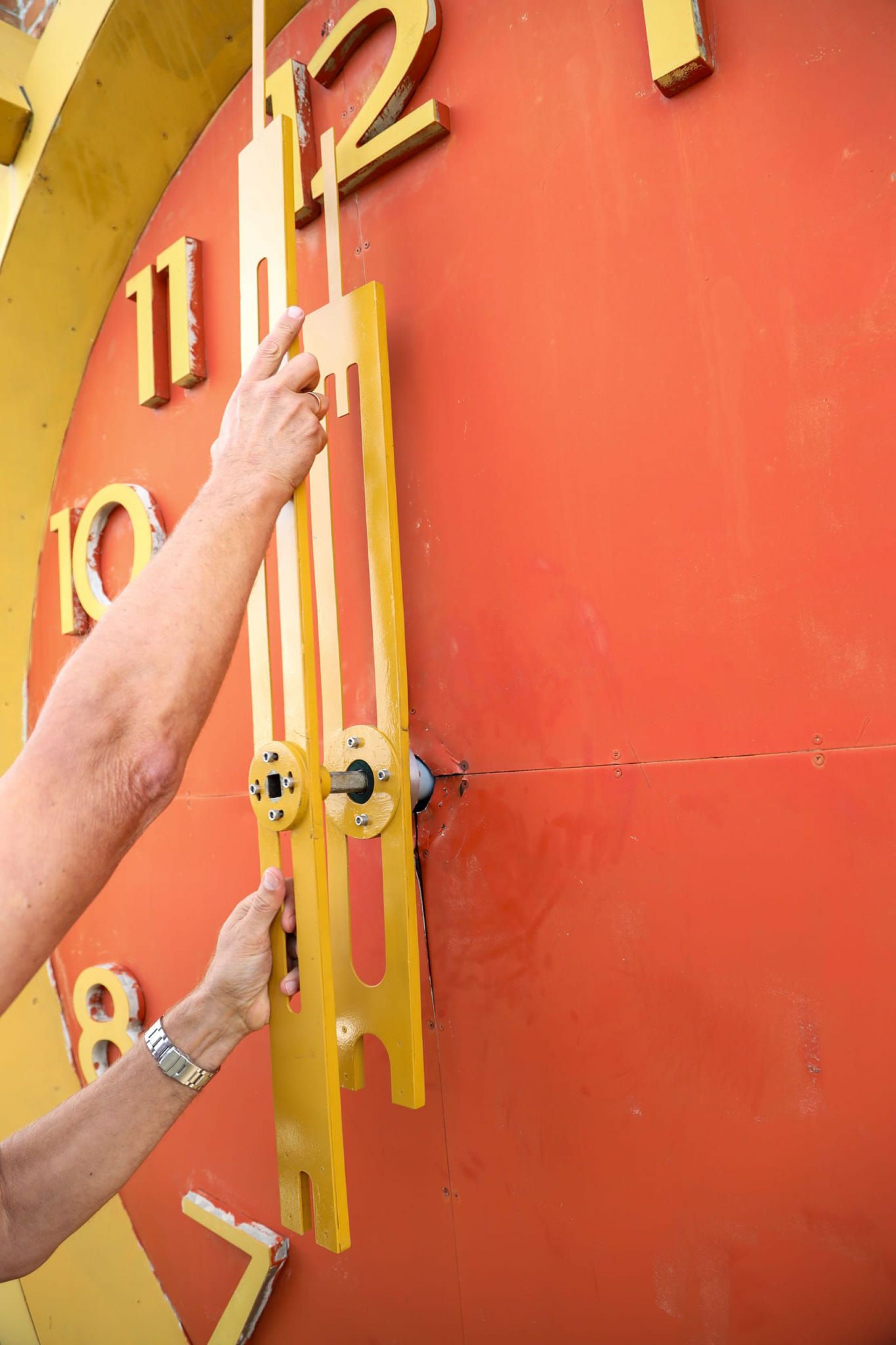 — Перш за все вони відремонтували редуктори годинних і хвилинних стрілок, самі стрілки очистили, пофарбували і збалансували. Обертання стрілок годинникового механізму здійснюється презиційним (таким, що вирізняється найвищою точністю) двигуном постійного струму, виготовленим у Швейцарії. Загальна вага всього механізму обертання стрілок становить 24 кг. Годинна стрілка важить 2,3 кг та має довжину 1 м, а хвилинна — 1,8 кг та 1,3 м, — зазначають у Музеї Вінниці.