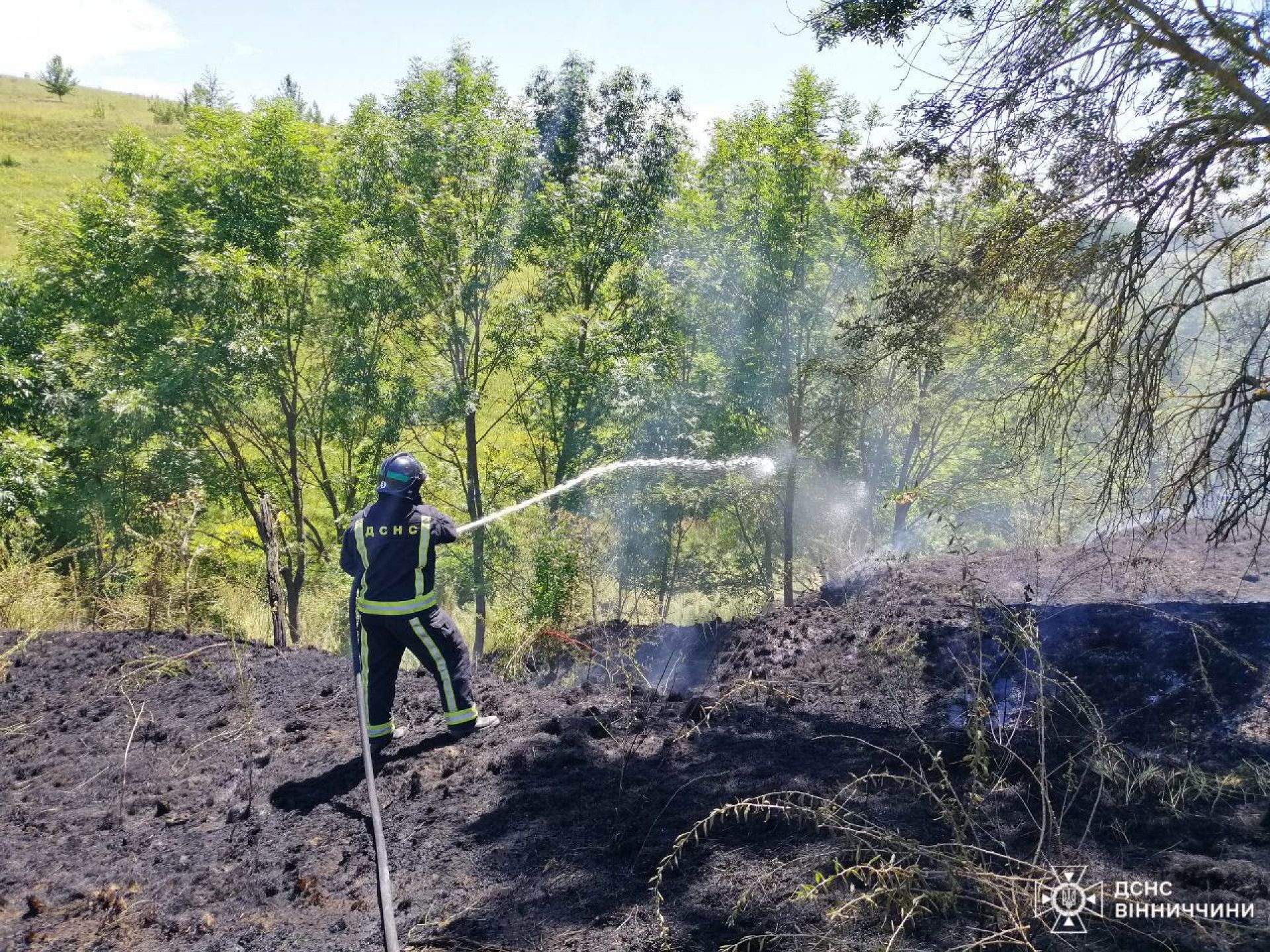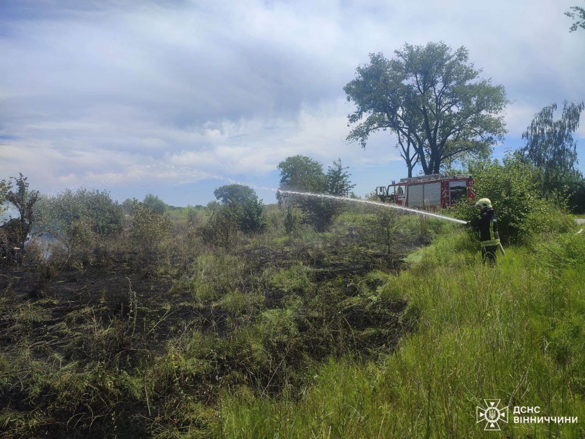 Спекотна погода та людська недбалість спричинили загоряння сухої трави у Вінницькому, Жмеринському та Тульчинському районах. Загалом вогнем знищено понад 2,5 га ґрунту.