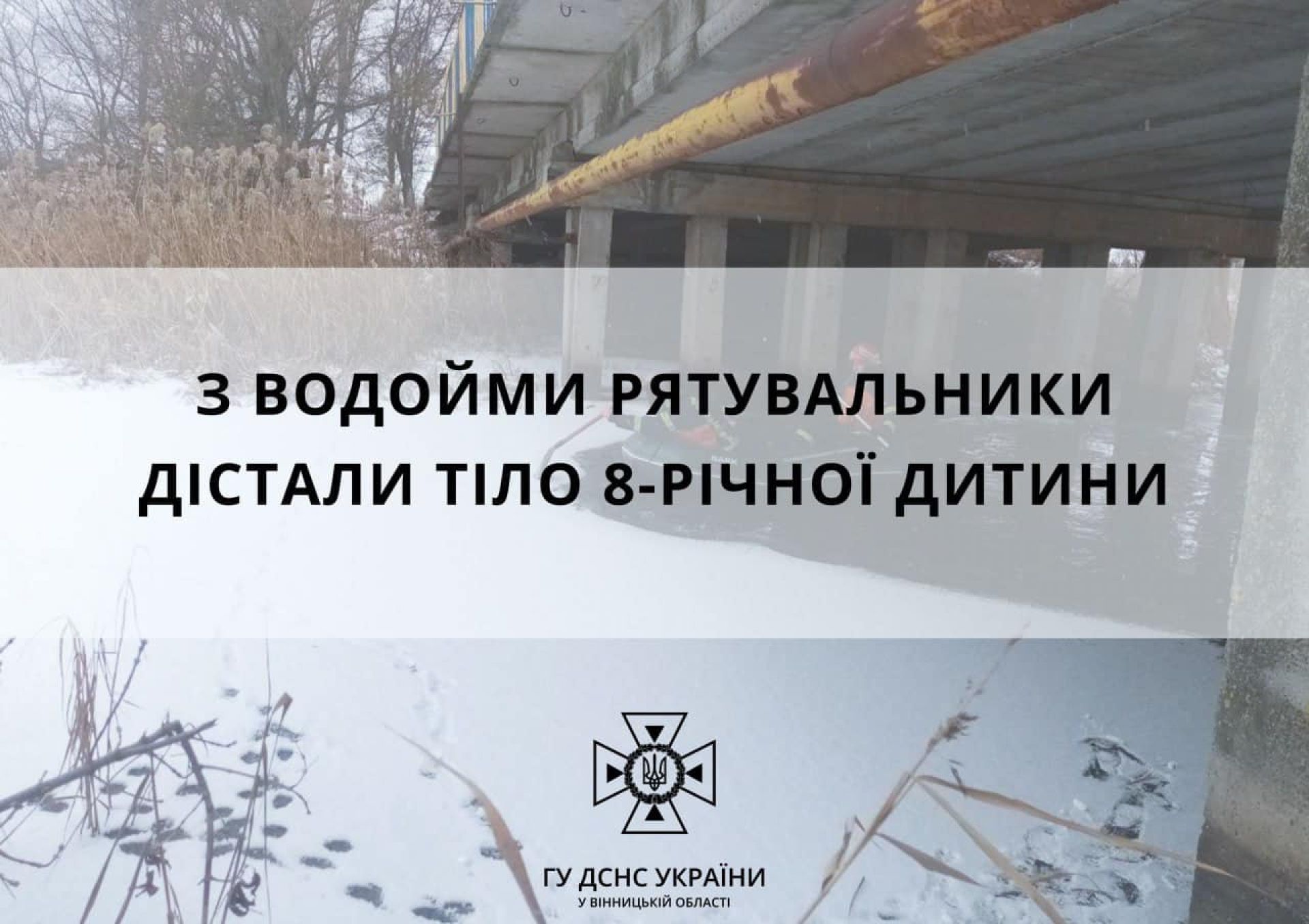 - Діти поверталися зі школи та вийшли на лід. Один хлопчик провалився та пішов під воду. Врятувати дитину не вдалося.
