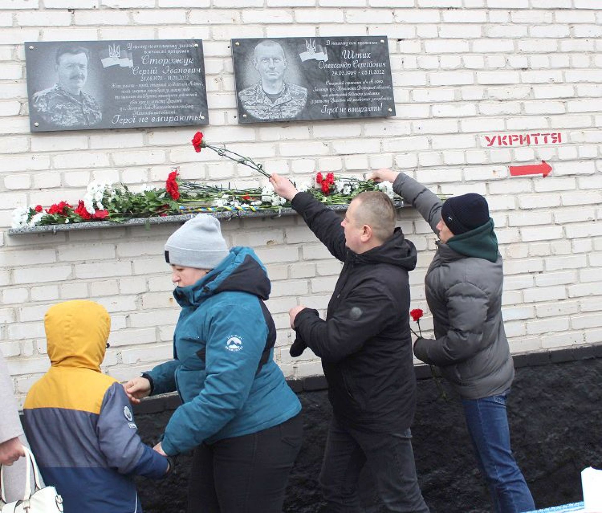 — На жаль, сьогодні ми стоїмо на цьому шкільному подвір’ї з сумного приводу: відкриваємо меморіальні дошки Сергію Сторожуку та Олександру Штиху. Ці мужні чоловіки пішли захищати нашу країну від російської нечисті. Вони віддали за Україну найдорожче, що є у людини — своє життя. Сьогодні кожен з нас має молитися за душі загиблих воїнів-Героїв, щоб вони легко спочивали з Богом. Пам'ятаємо також про тих чоловіків та жінок, які служать у Збройних силах України, які сьогодні на фронті, в нелюдських умовах захищають Україну від ворога, щоб ми жили під вільним небом в незалежній Україні, — звернувся до присутніх заступник Калинівського міського голови Віктор Кособуцький.