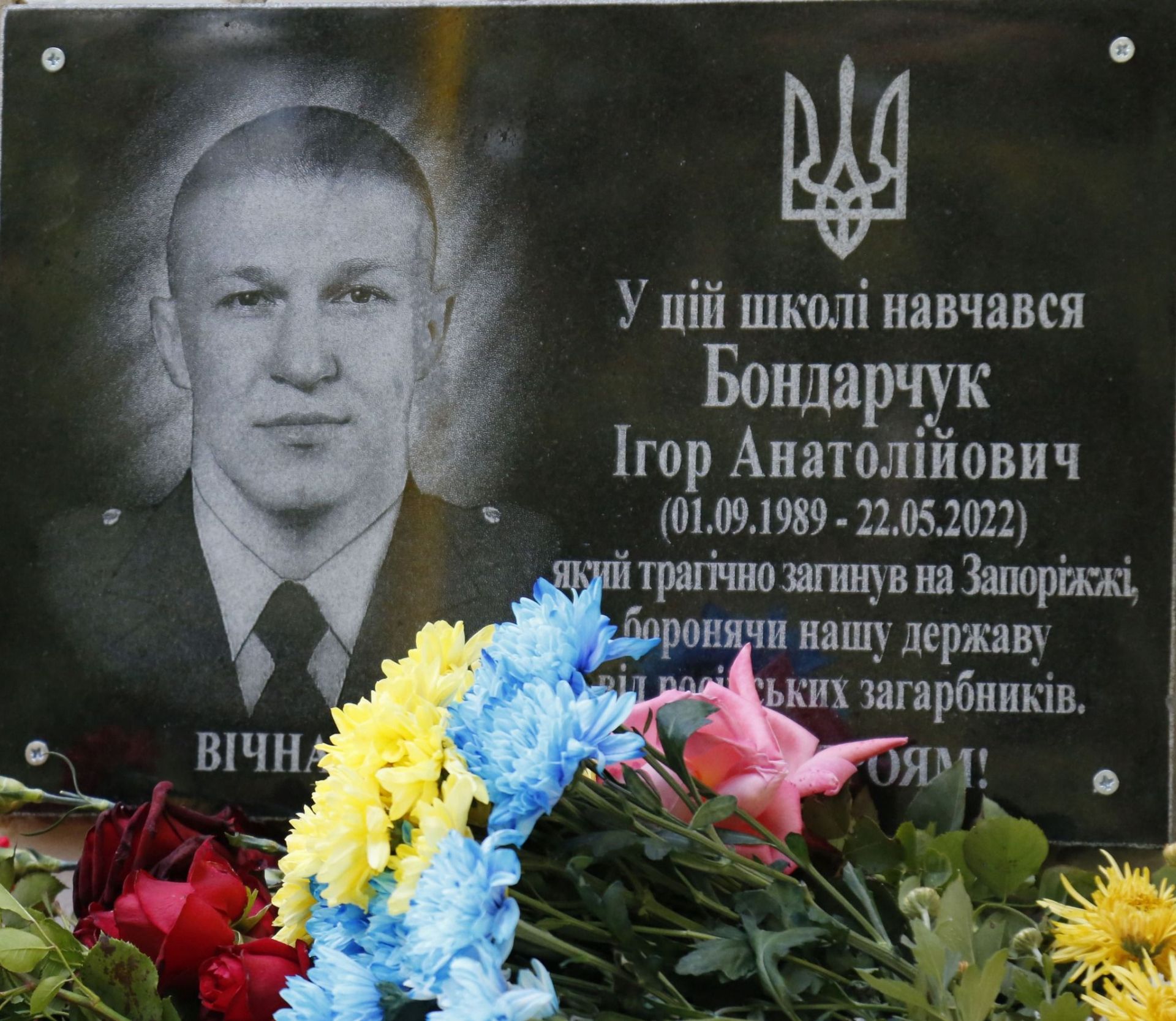 — Всі присутні на заході вшанували пам’ять загиблого Ігоря Бондарчука хвилиною мовчання та покладанням квітів до меморіальної дошки, — цитуємо повідомлення поліції. — Кожен присутній схилив голову у жалобі за Героєм, у якого було попереду довге і щасливе життя, Бондарчуком Ігорем Анатолійовичем... Але йому тепер навіки 32… Зі скорботою, вдячністю та шаною звучали слова «Не забудемо…».