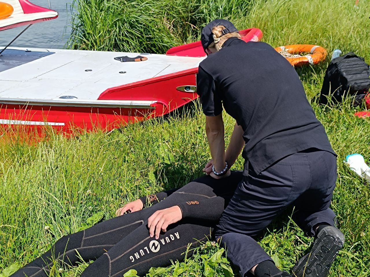 — Якщо людина без свідомості, але відновилося дихання, то ми переводимо її в стабільне бокове положення і кожні 20 секунд перевіряємо, чи вона дихає, — пояснює рятувальниця. — Навіть якщо людина прийшла до тями, все одно слід викликати швидку медичну допомогу, тому що може бути вторинне утоплення.