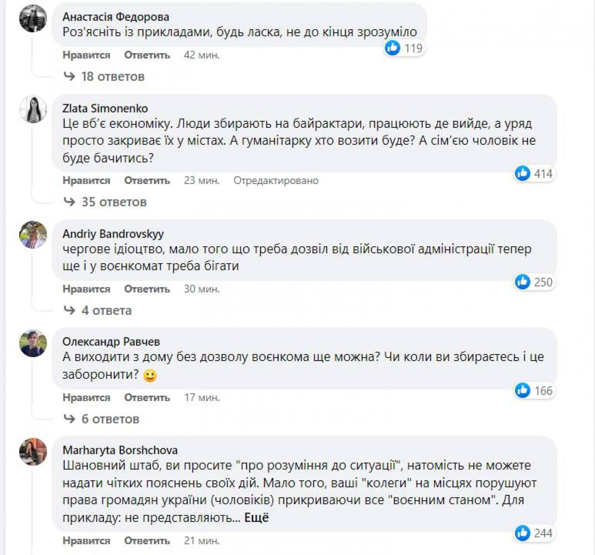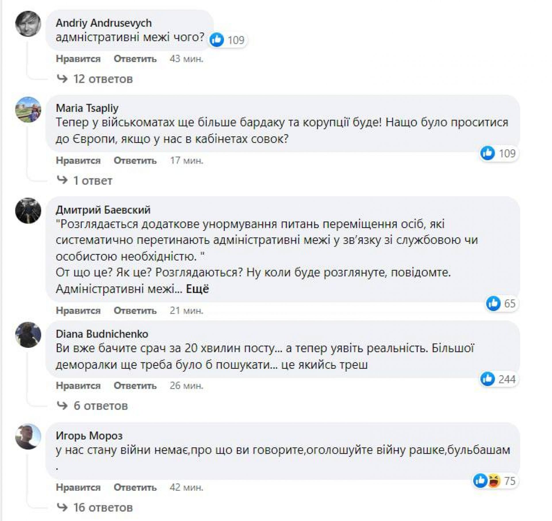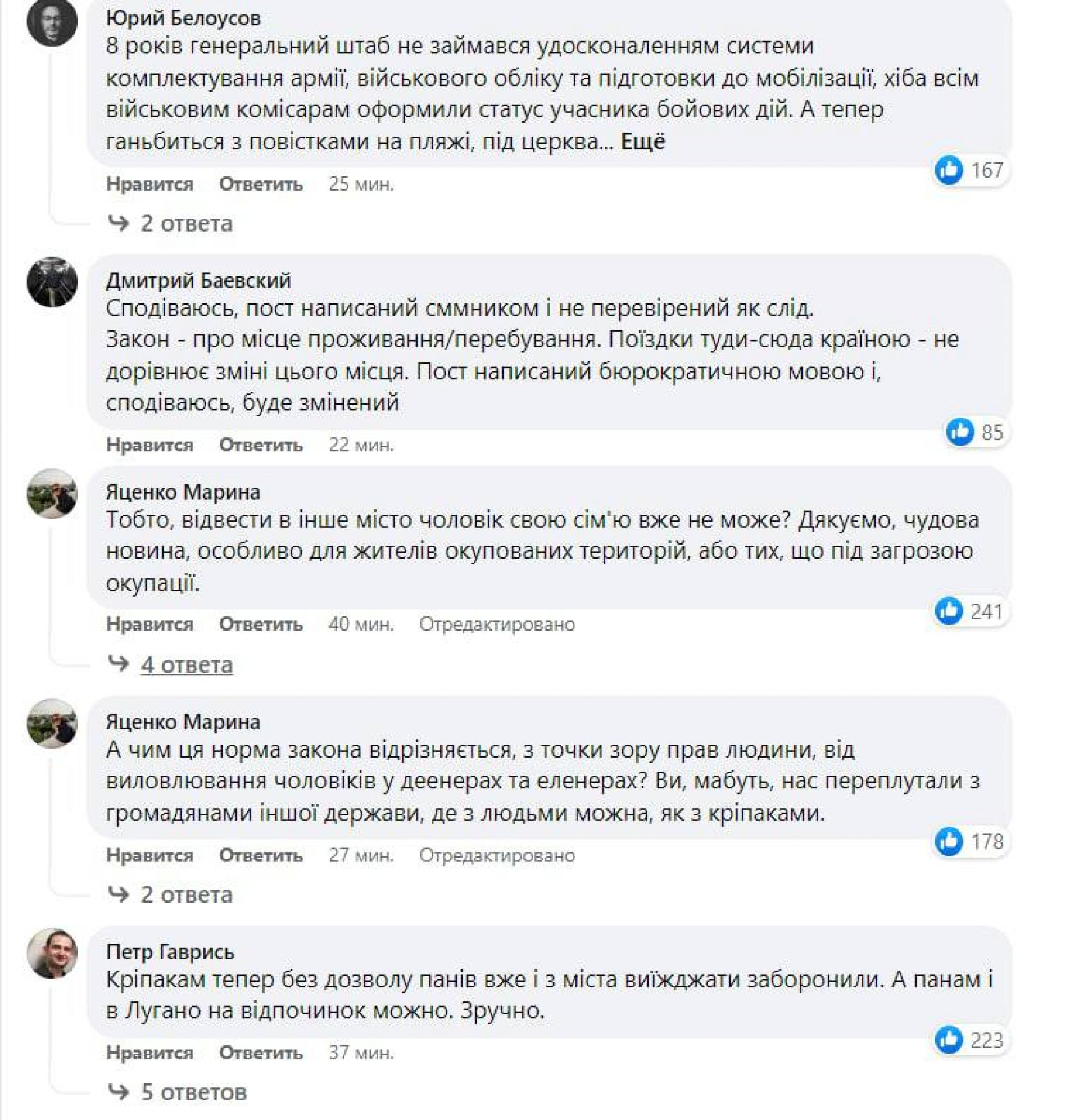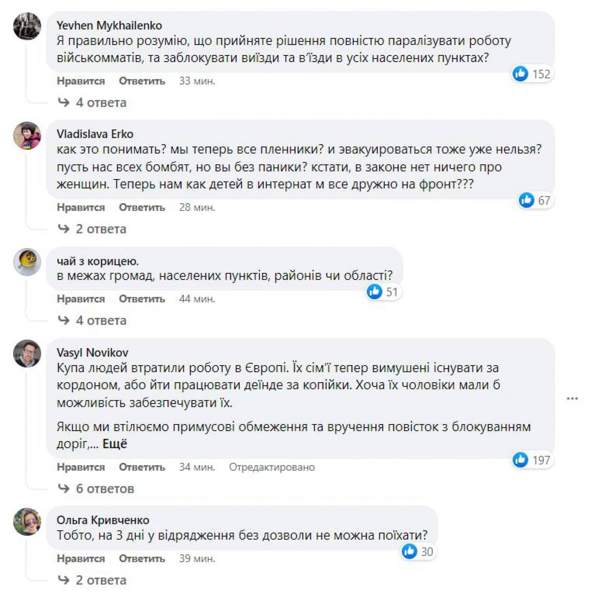 Втім, головне питання, яке цікавило людей: та за які «адміністративні межі» не можна виїжджати тим, хто на обліку в військкоматі? І коли почнуть не випускати військовозобов’язаних з їхніх міст та сіл?