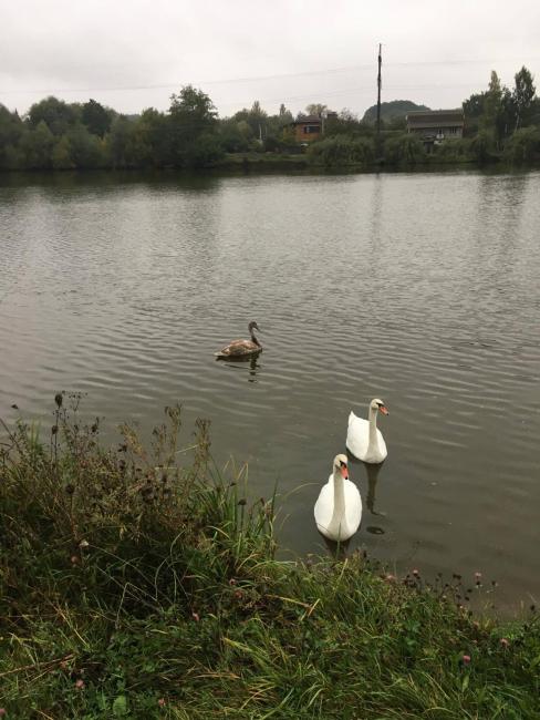 На водоймі в Лука-Мелешківській врятували лебедя, який потрапив у браконьєрську пастку