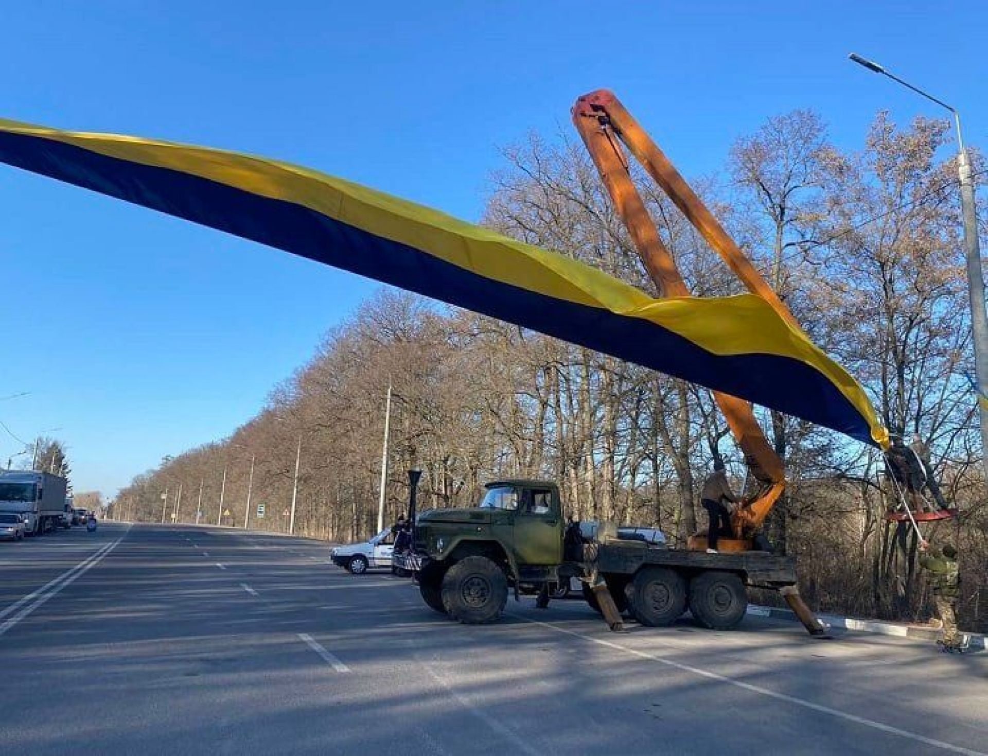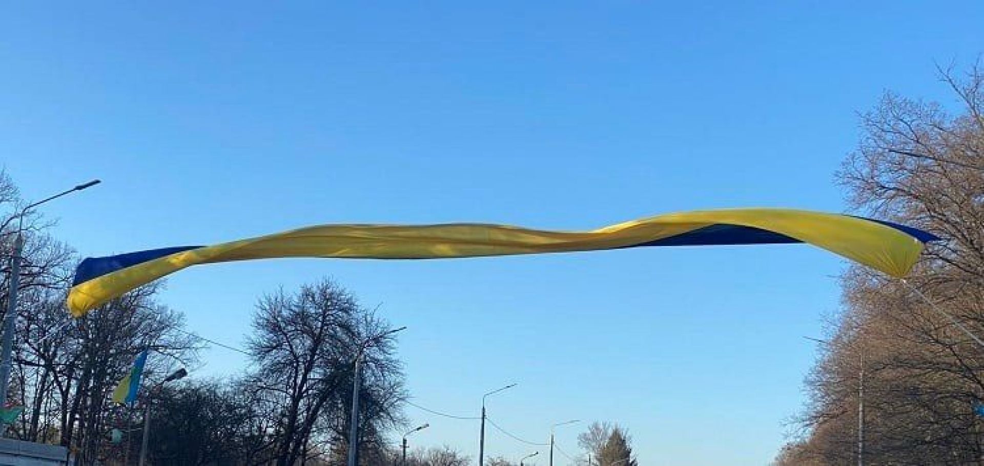 На в'їзді до Калинівки розтягнули 25-метровий прапор України