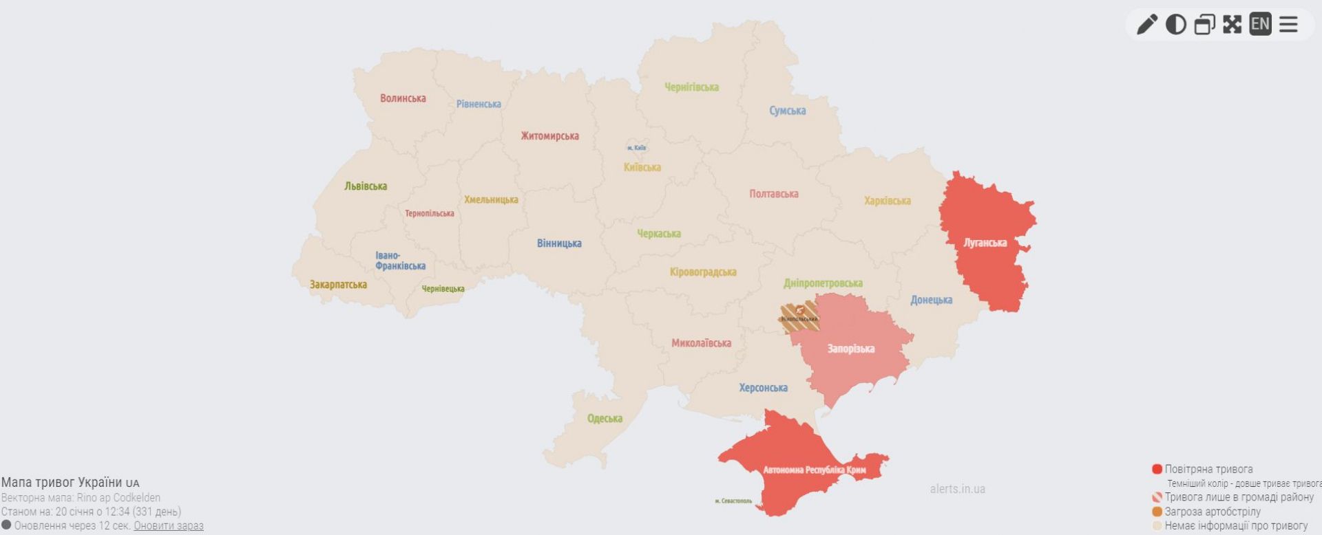 Сьогодні, 20 січня, о 11.48 Віталій Кім повідомив про можливі ворожі повітряні цілі над нашою областю
