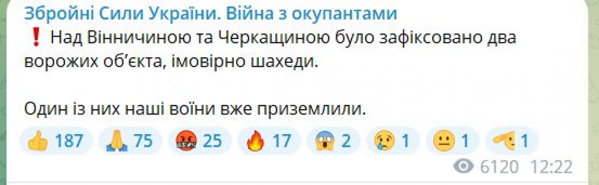 Інформацію підтвердили у ЗСУ на телеграм-сторінці: