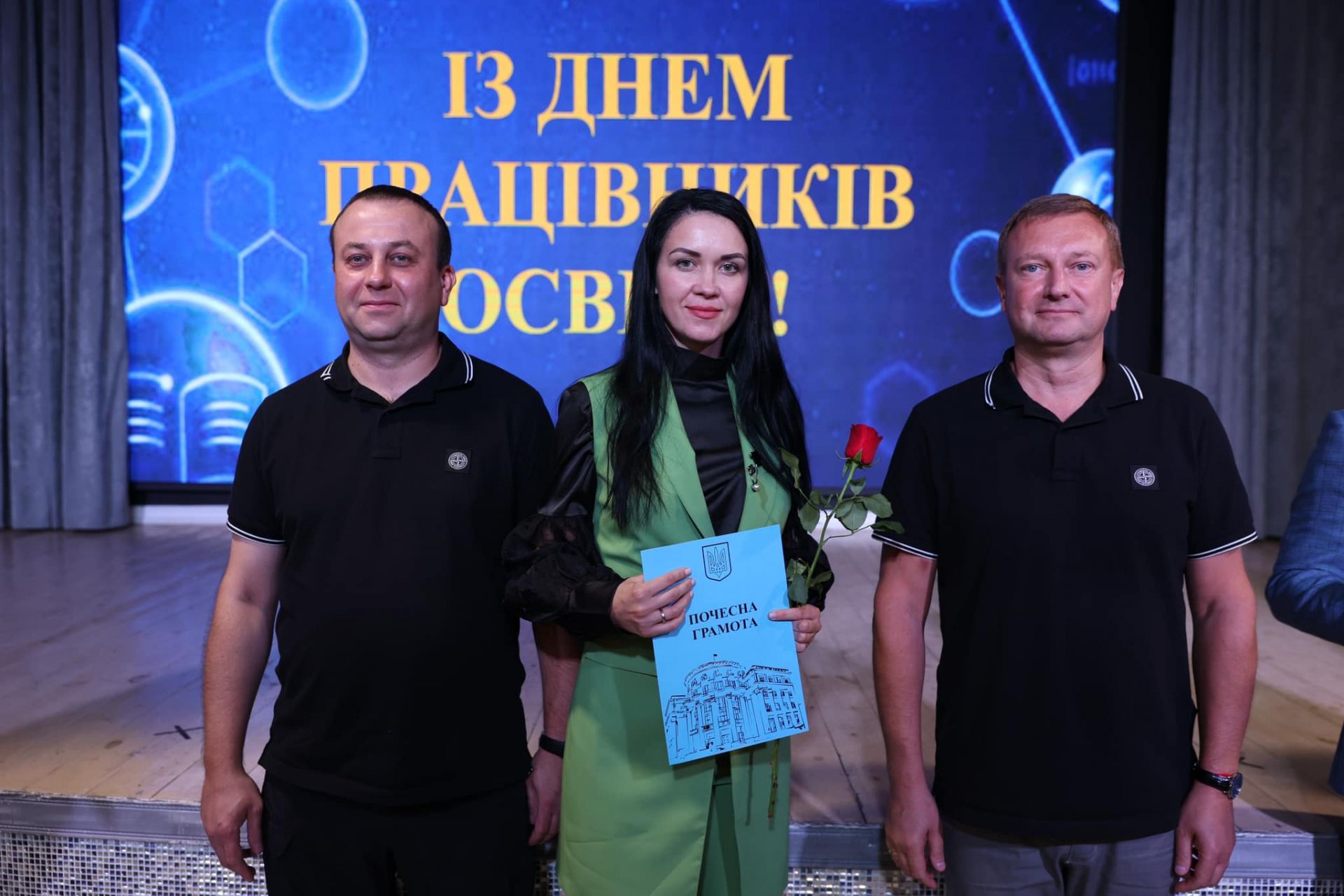 За багаторічну плідну педагогічну діяльність, ефективне використання в роботі новітніх технологій, зміцнення навчально-матеріальної бази закладів освіти та з нагоди професійного свята були вручені премії та Почесні грамоти обласної військової адміністрації та обласної Ради, а також грамоти, подяки і нагрудні знаки від Департаменту гуманітарної політики Вінницької ОВА.