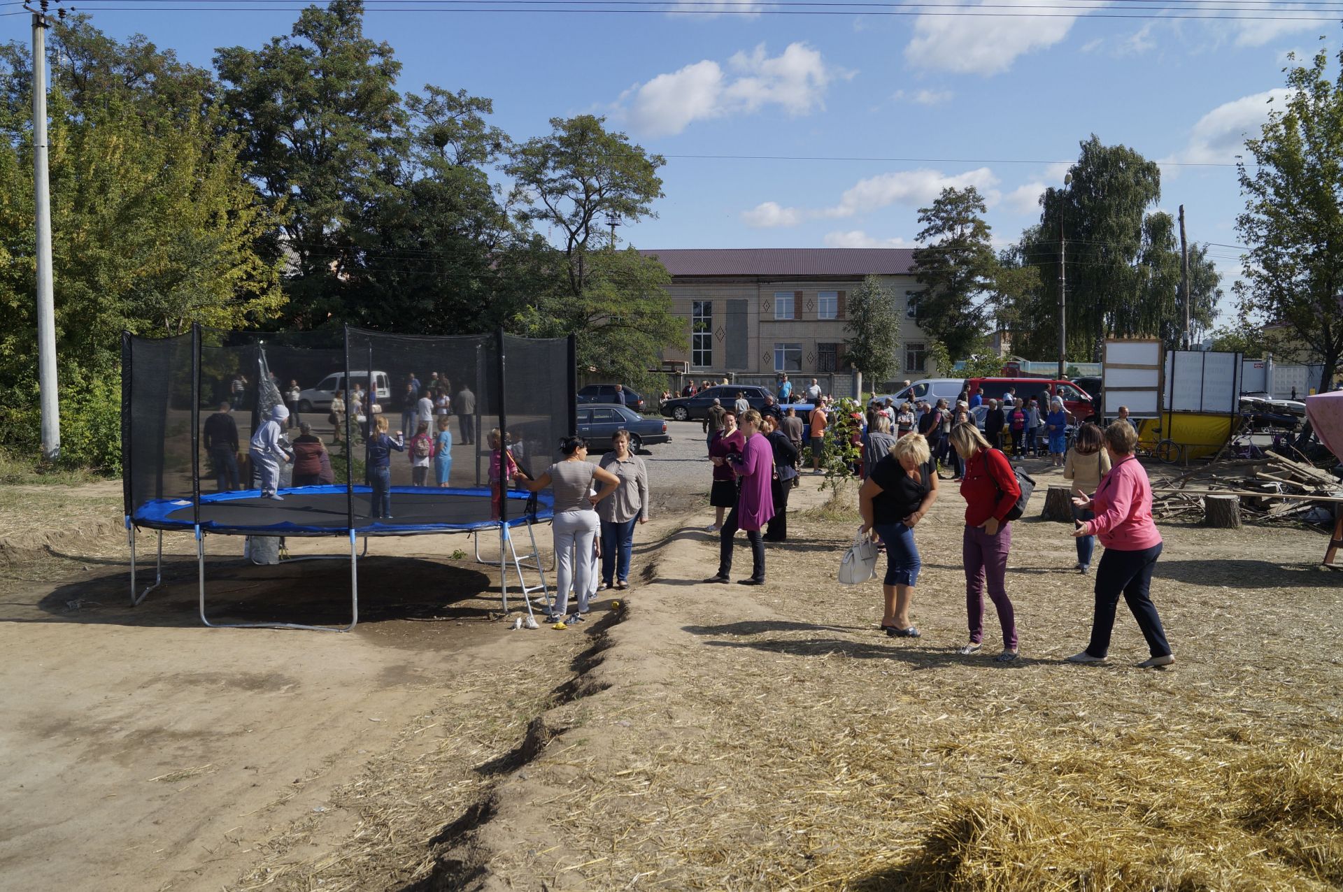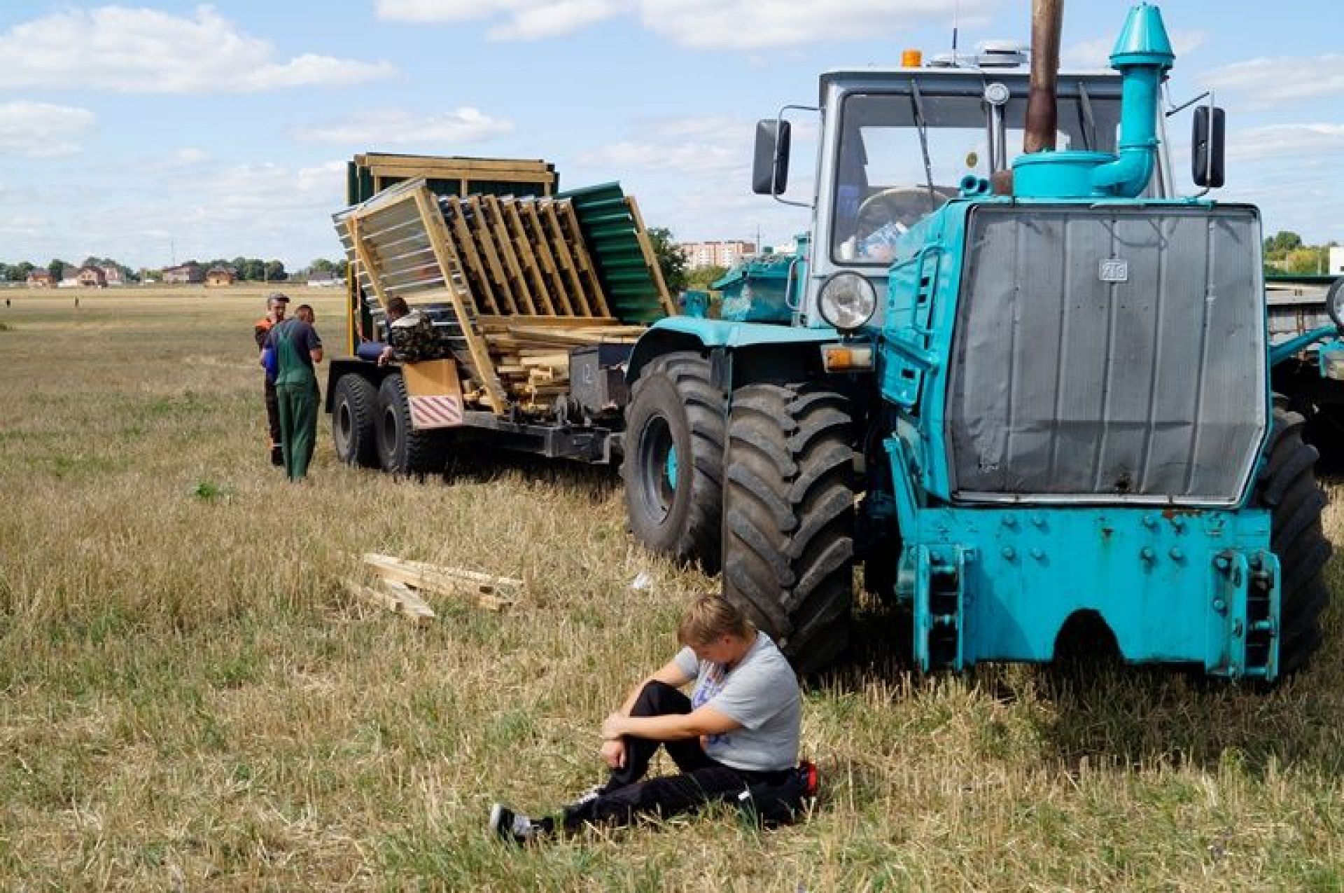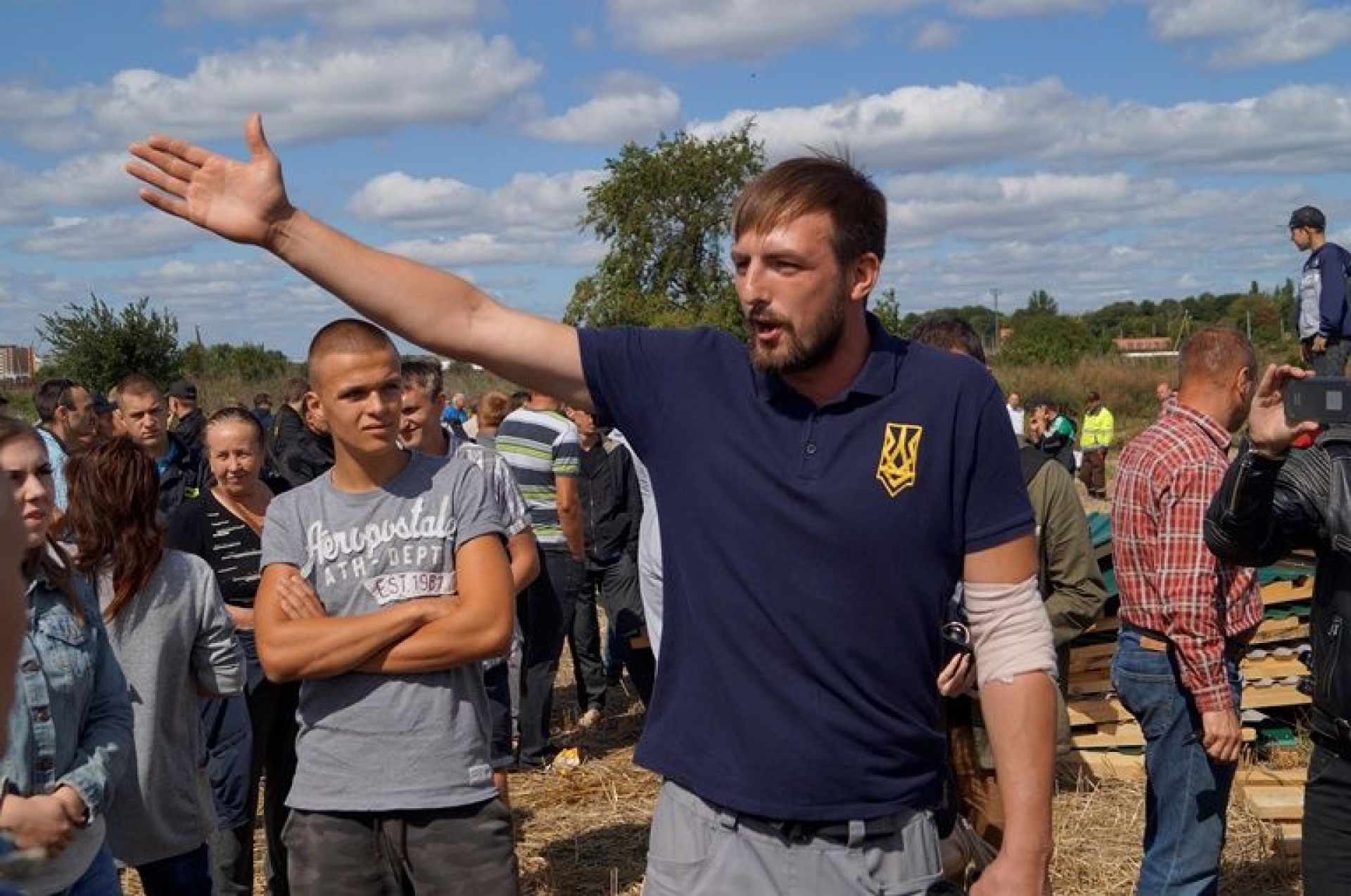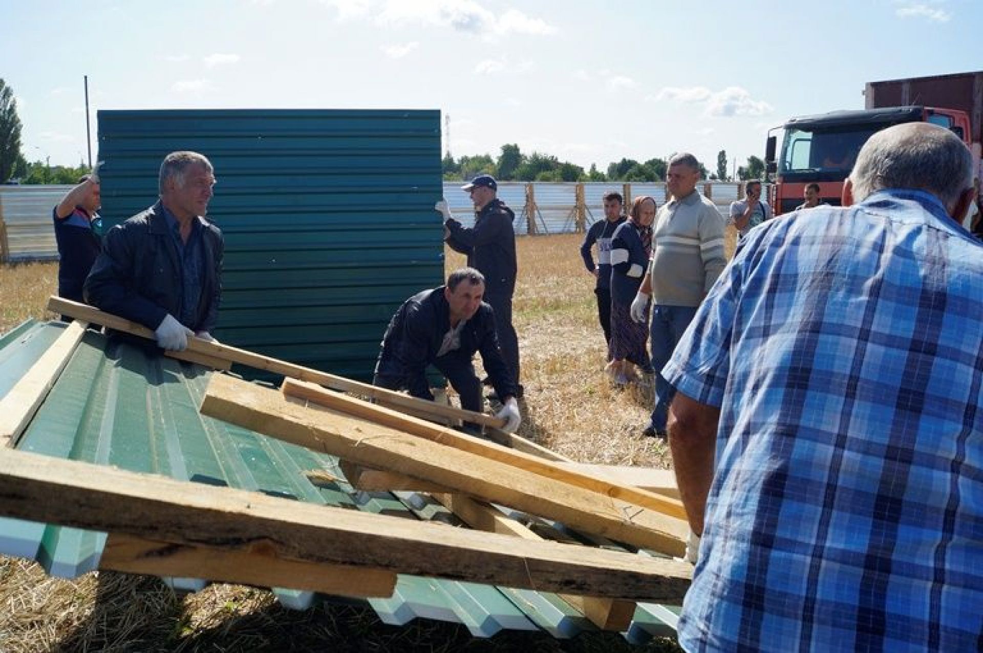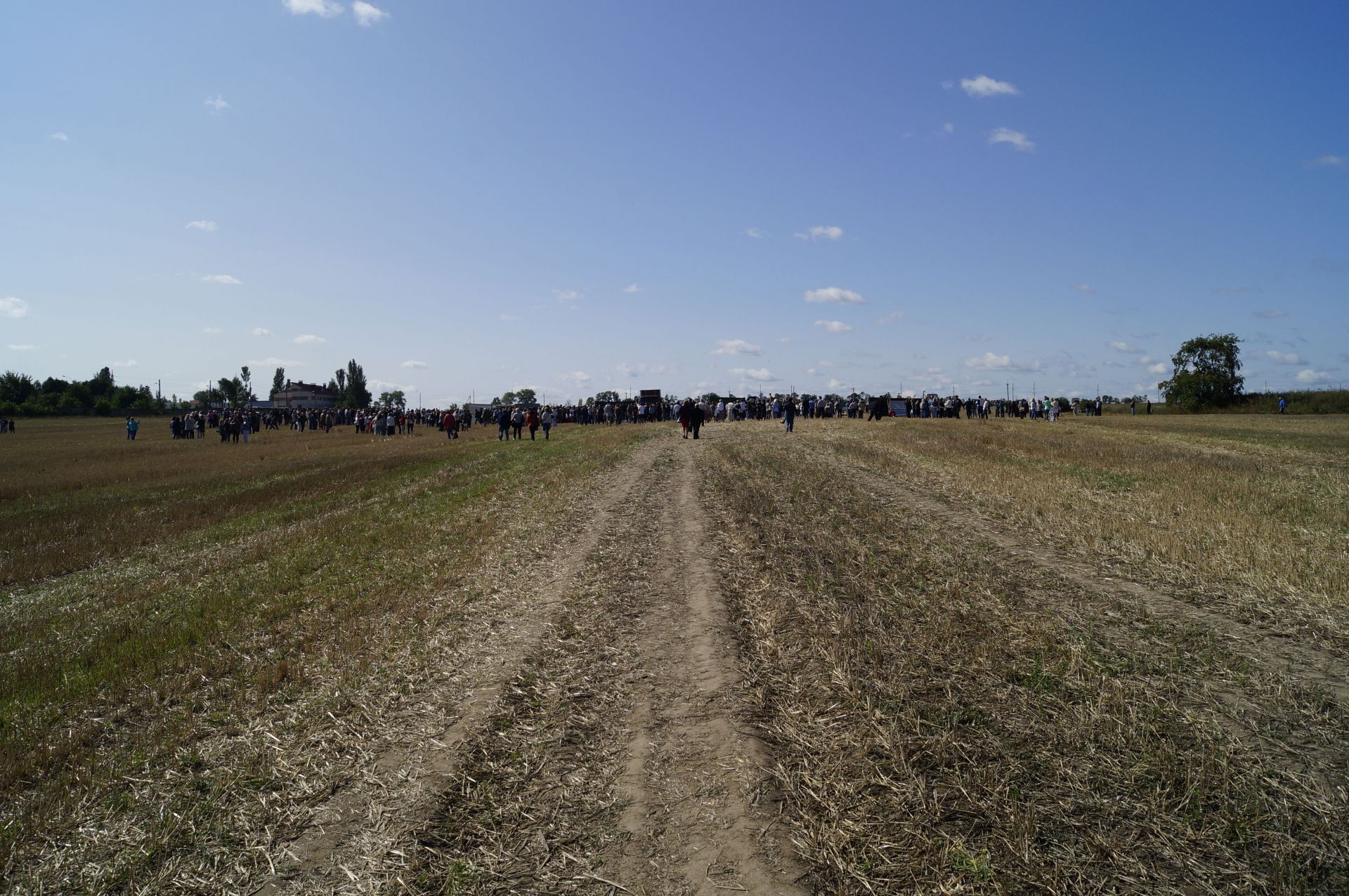 Зранку, 29 серпня, на сабарівському полі людно, тут зібралось близько трьох сотень людей. В’їзд зі сторони Сабарівського шосе для транспорту перекритий лавками та батутом. По іншу сторону поля будівельна техніка навантажена металопрофілем для паркану, щебенем та відсівом.