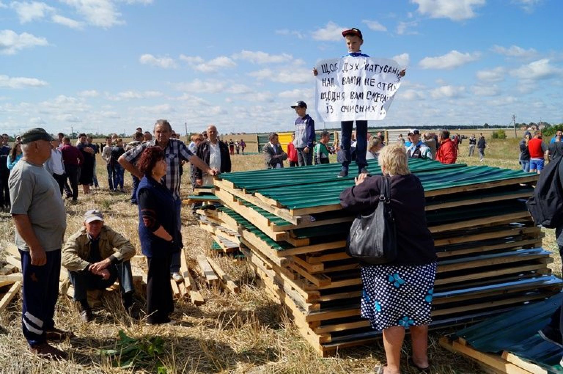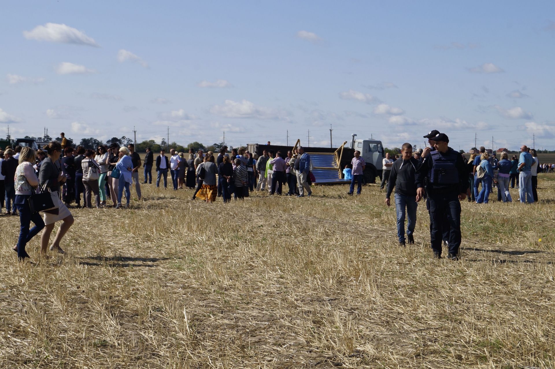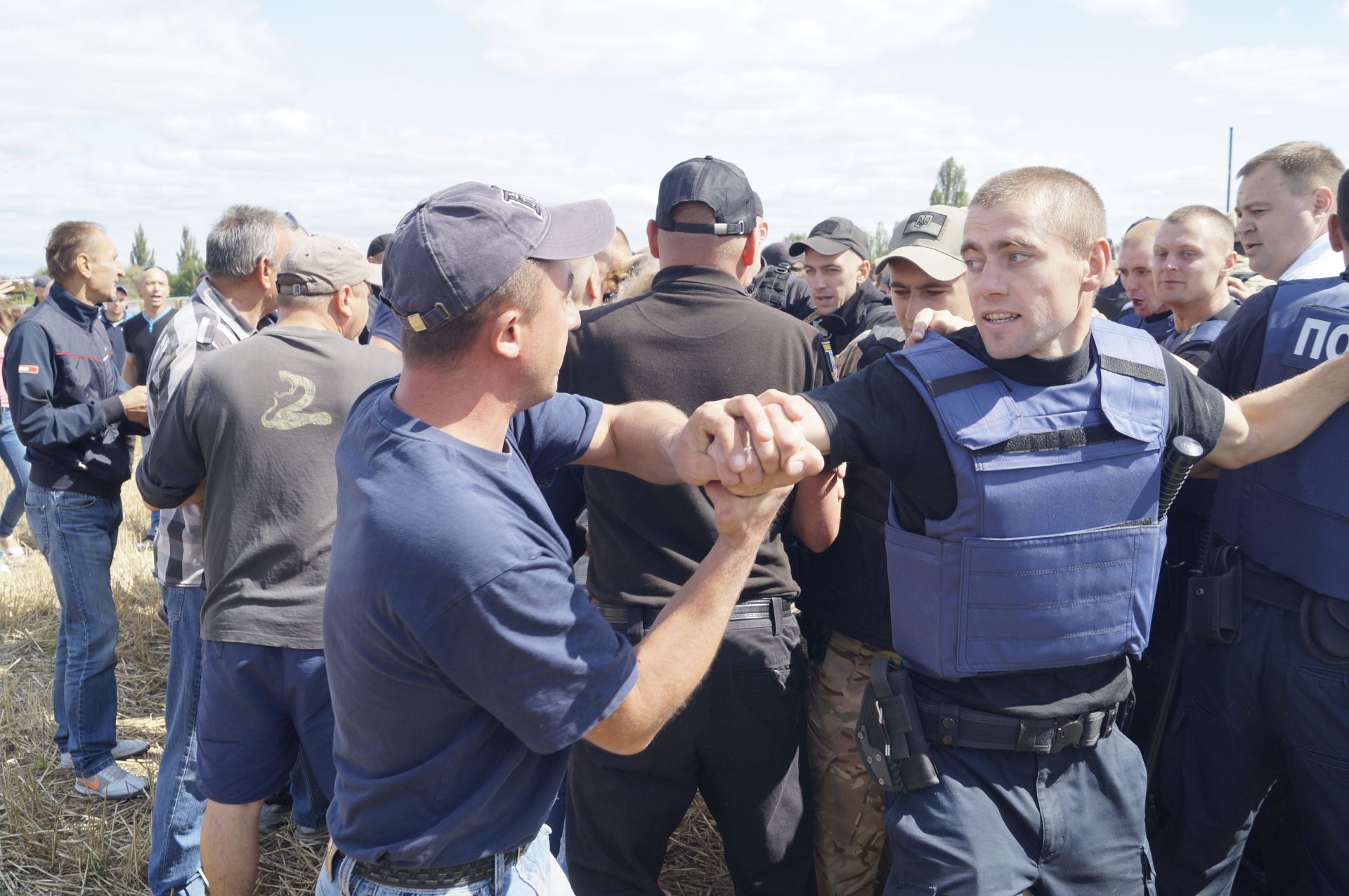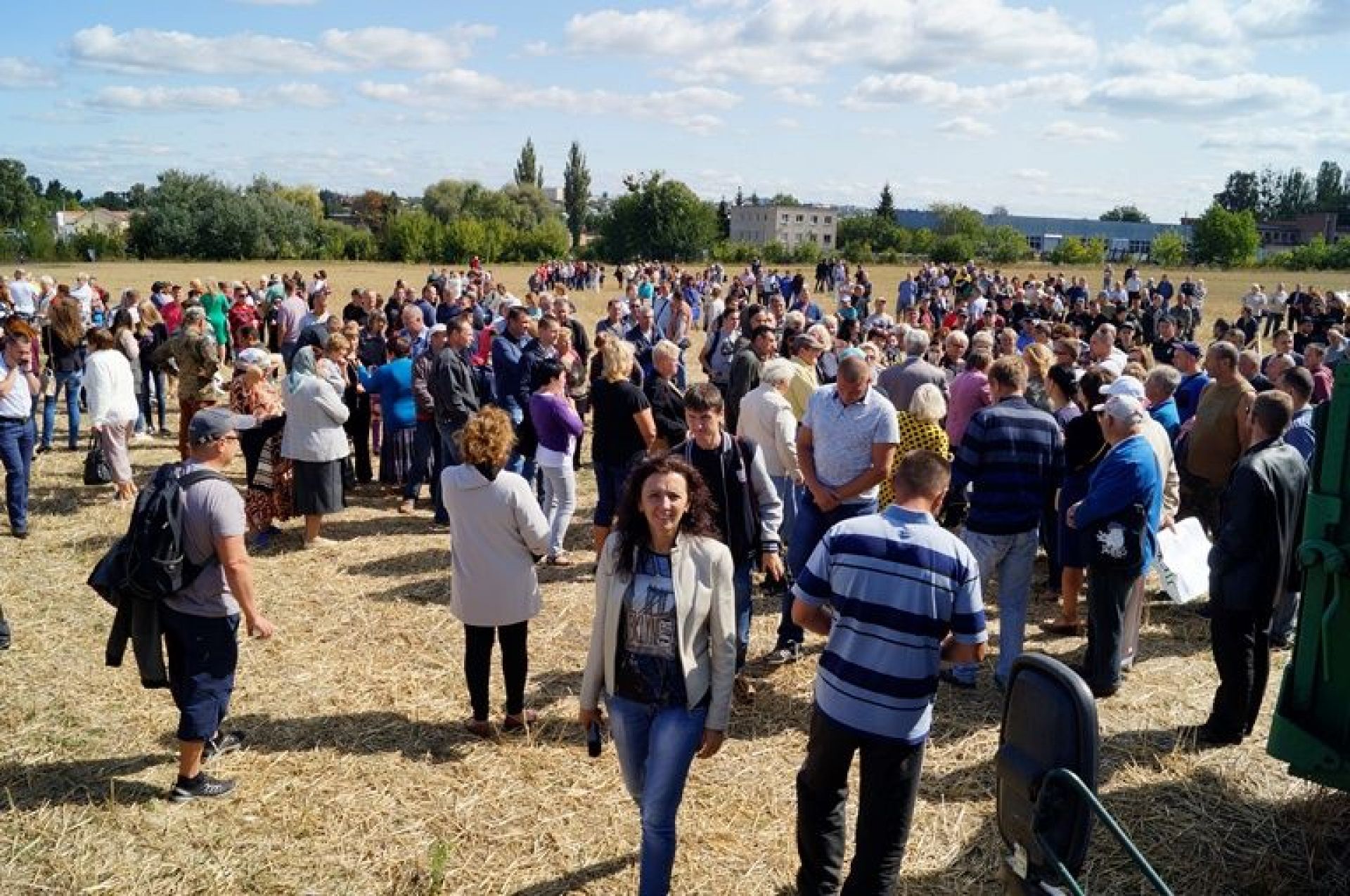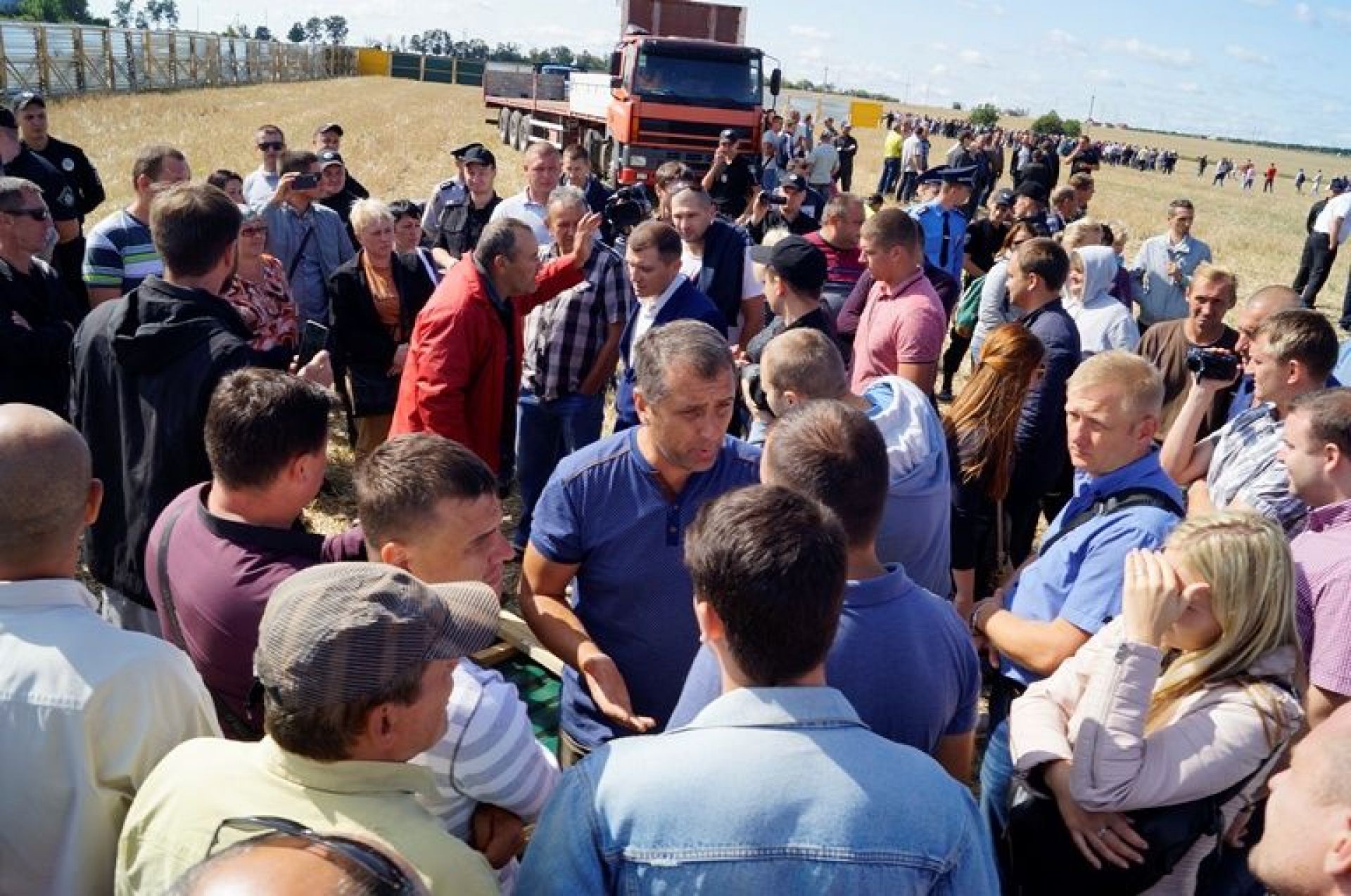 Серед поля, навколо трьох вантажівок і недобудованого паркану, зібрався натовп.