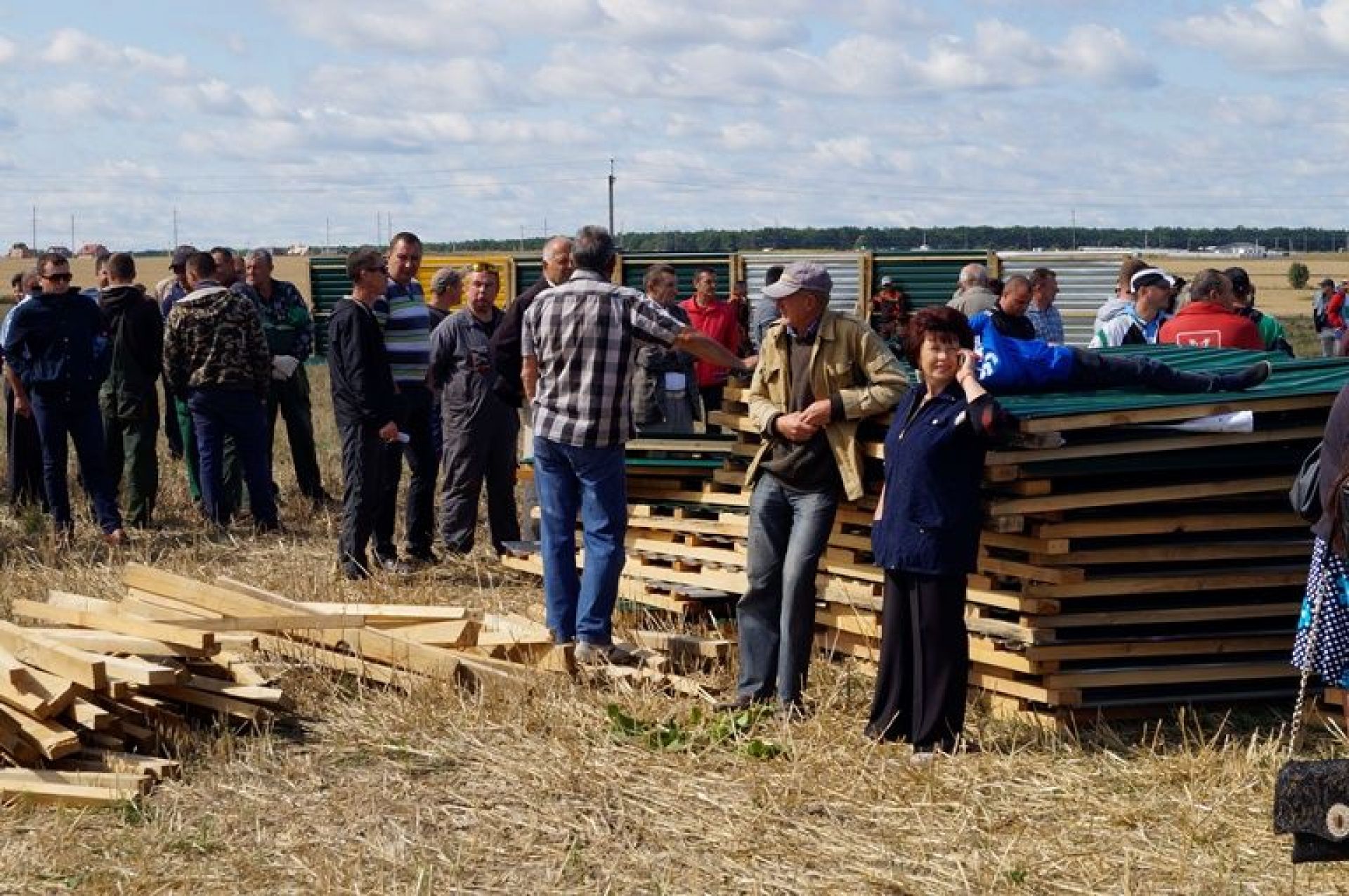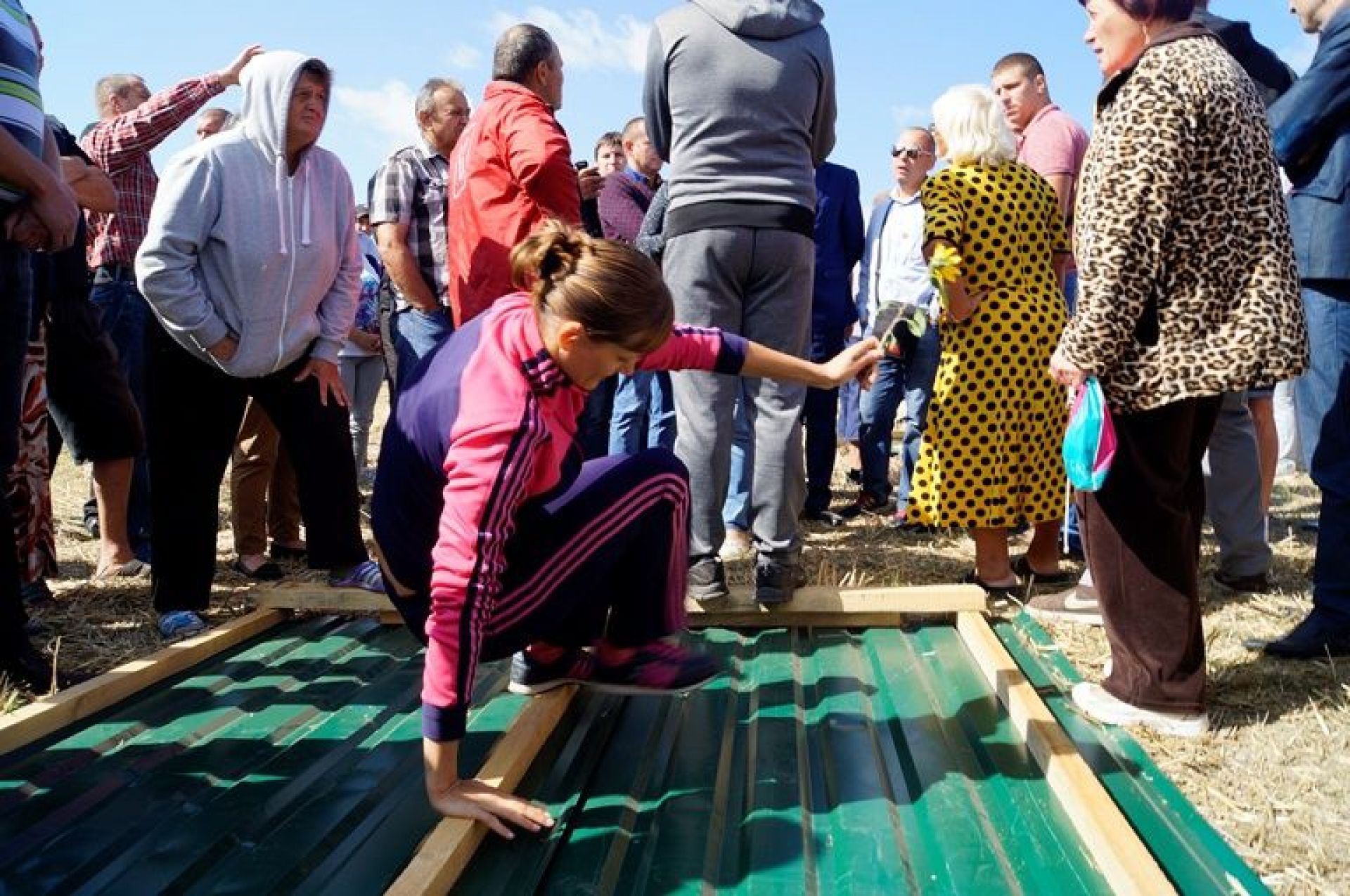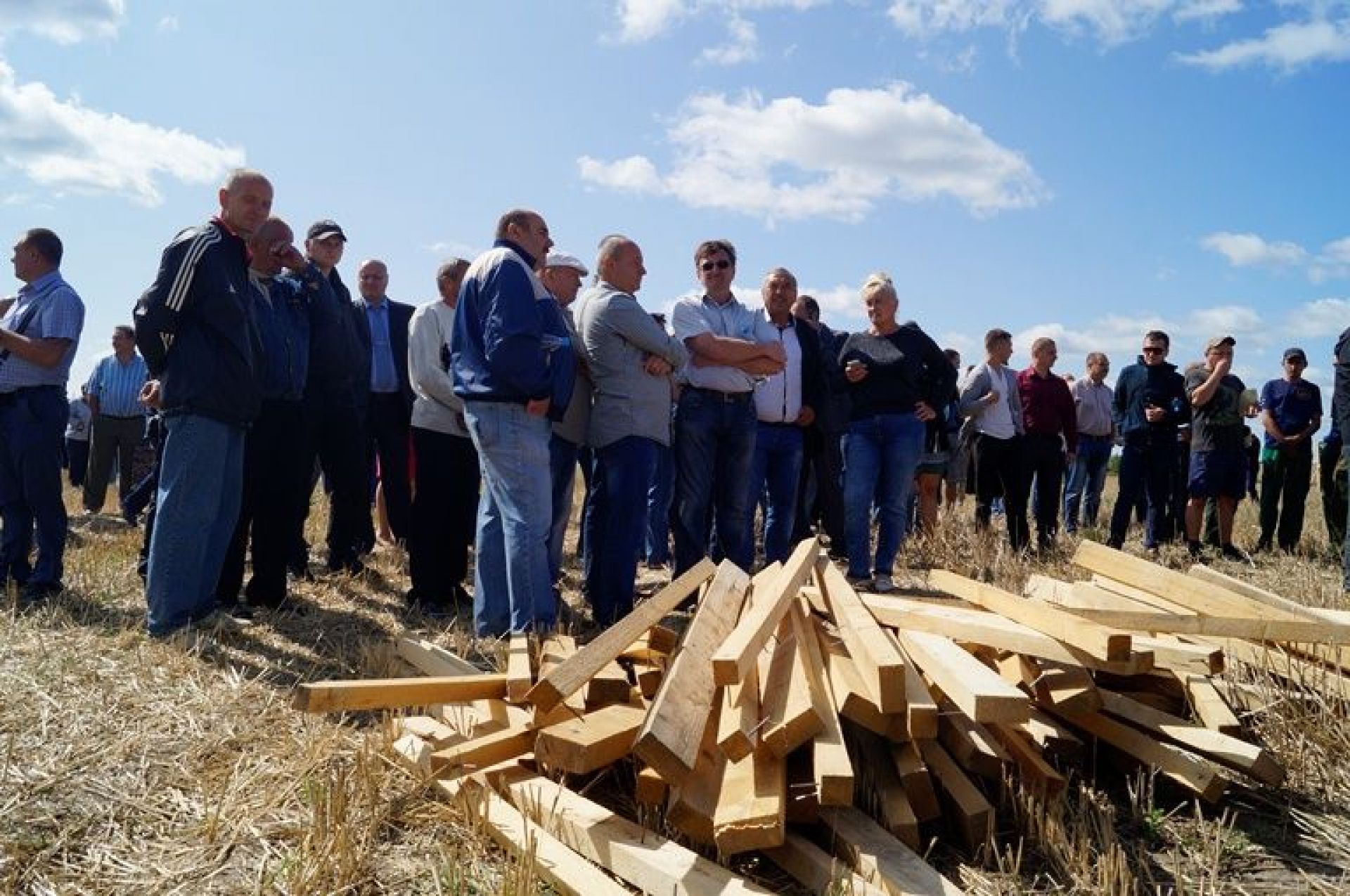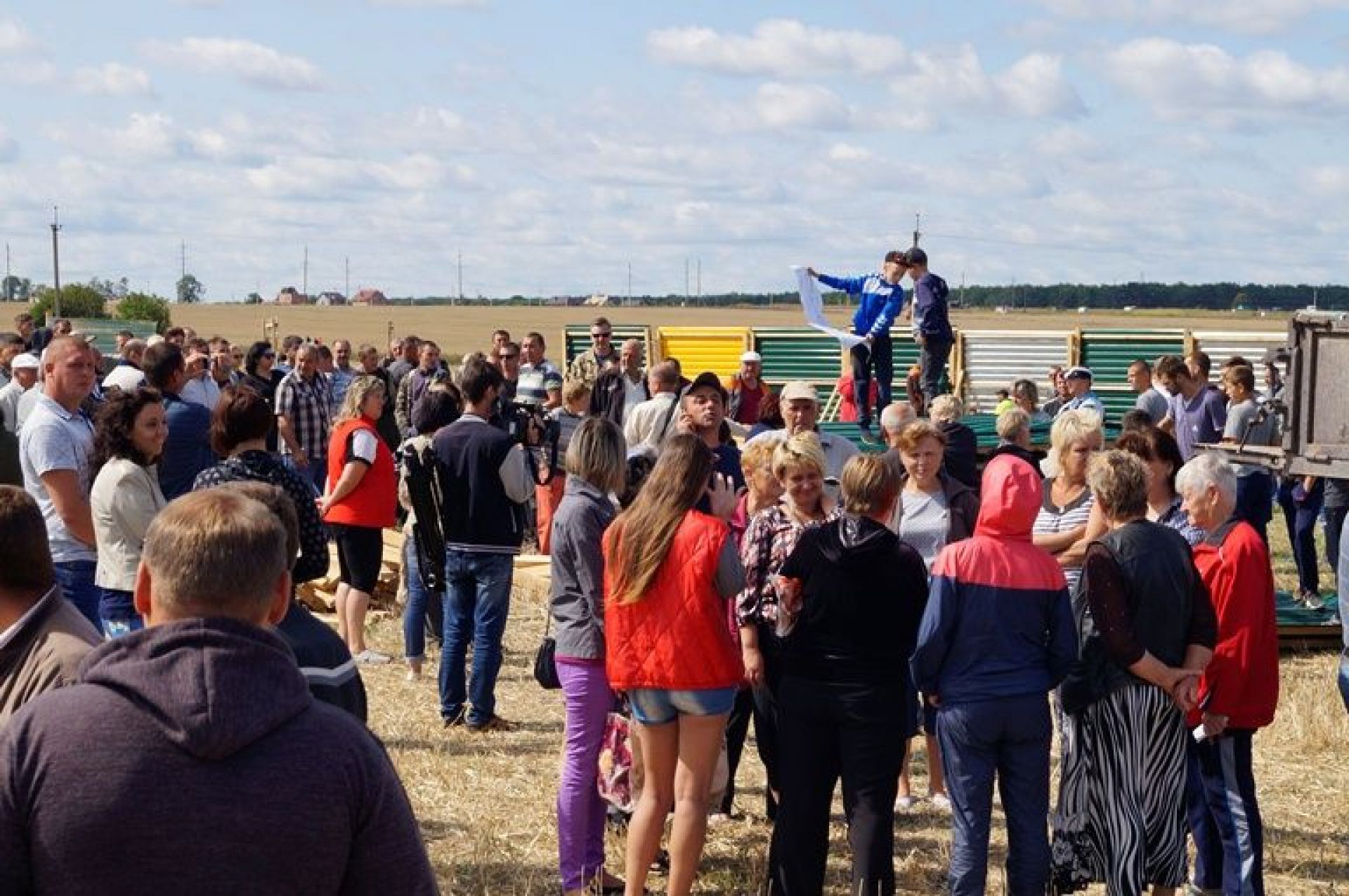 Серед поля, навколо трьох вантажівок і недобудованого паркану, зібрався натовп.