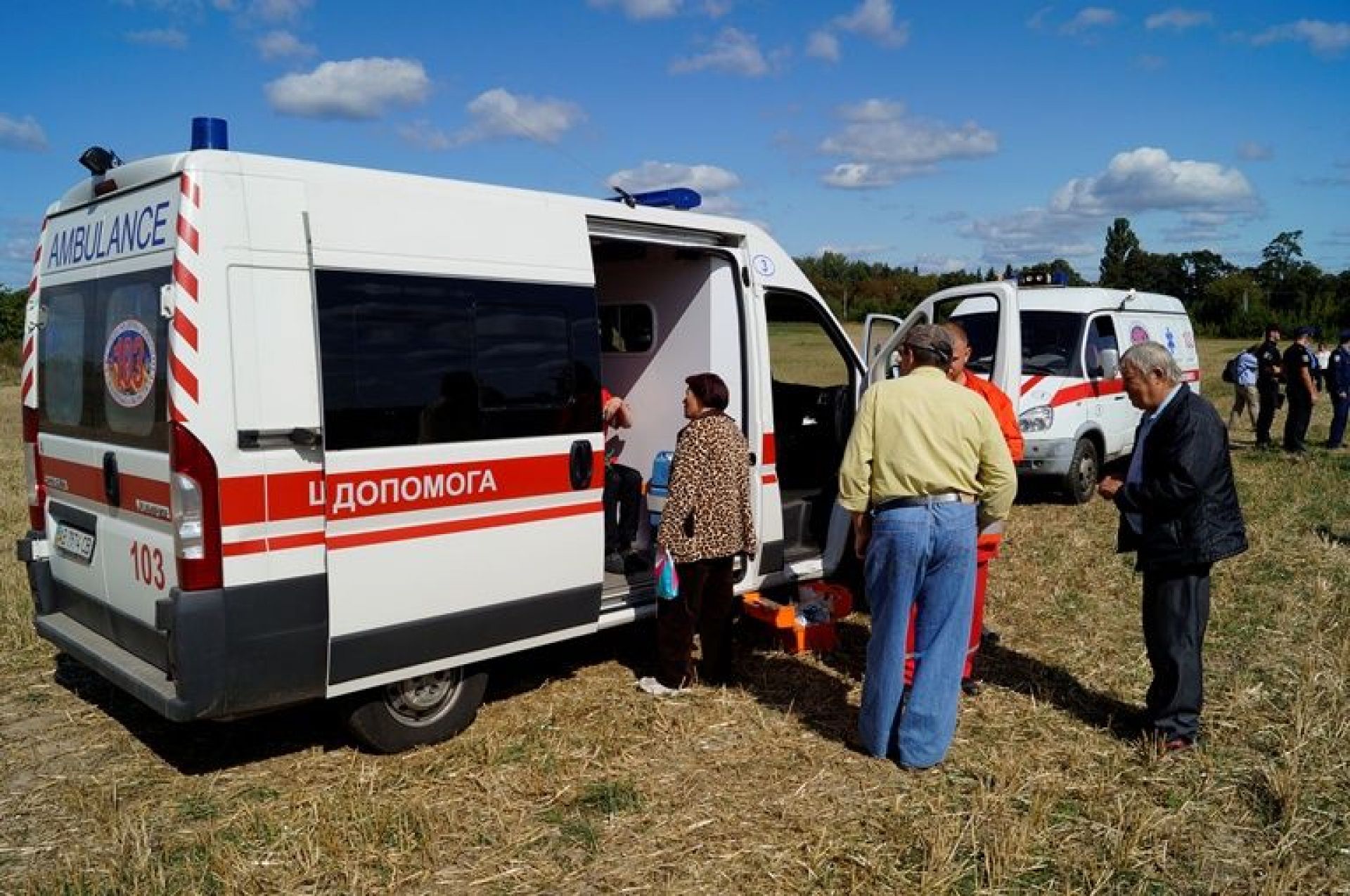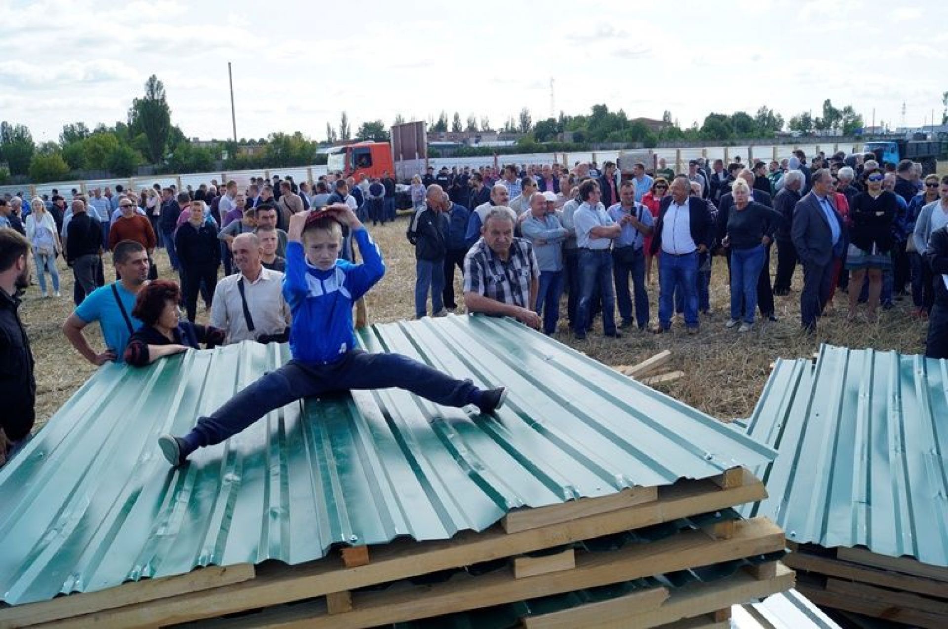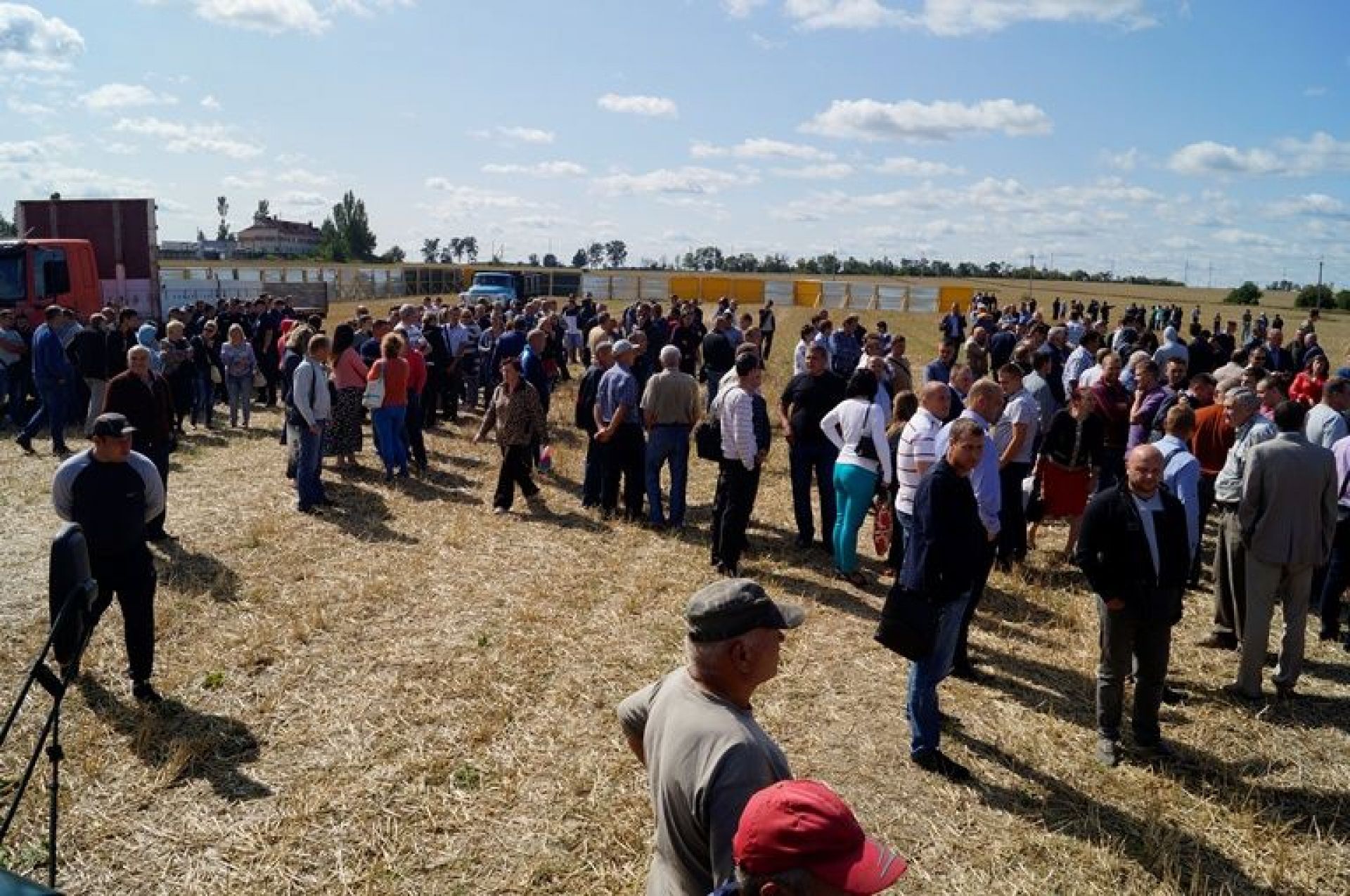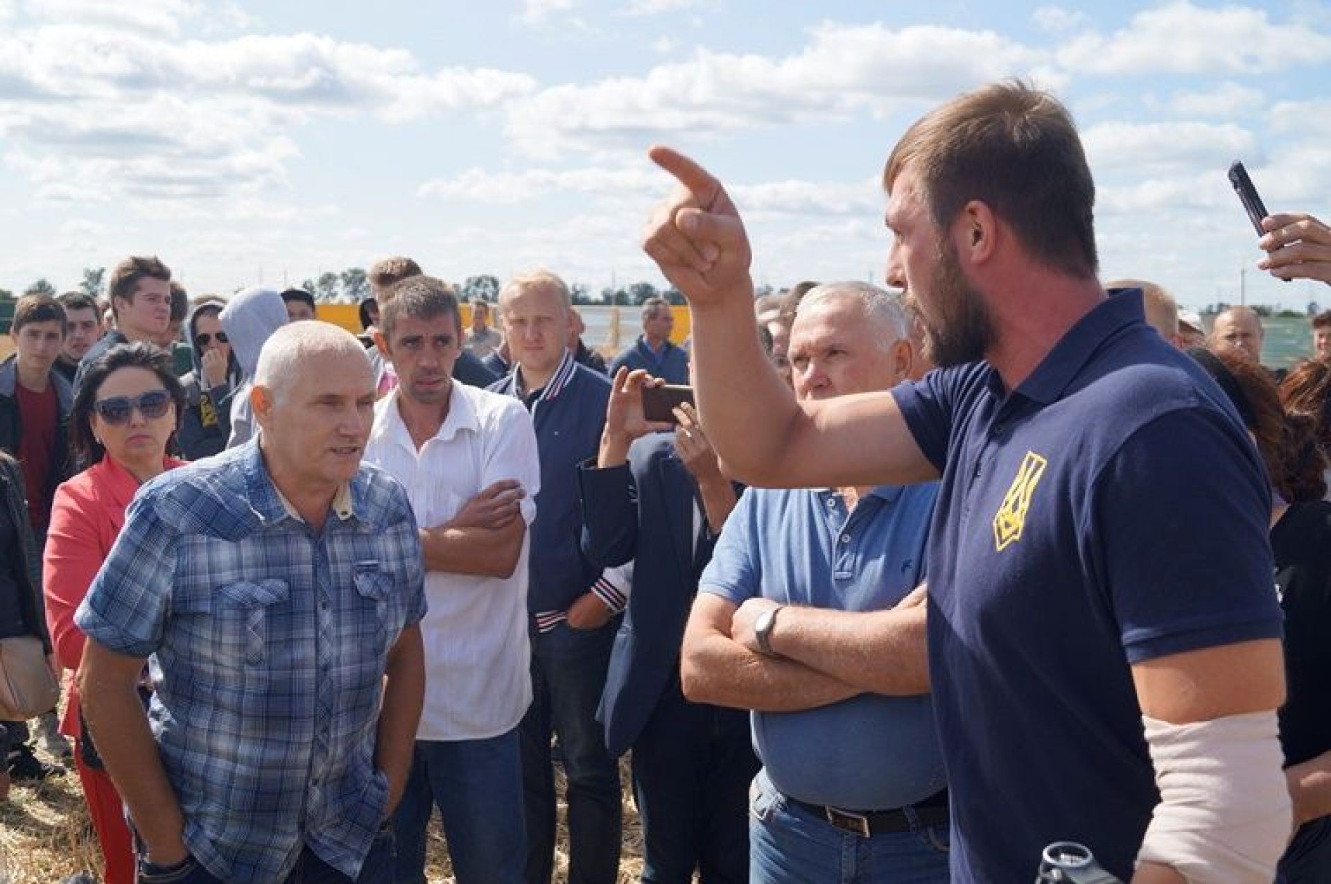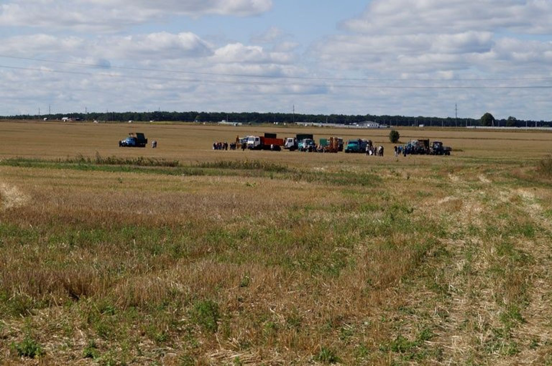 Серед поля, навколо трьох вантажівок і недобудованого паркану, зібрався натовп.