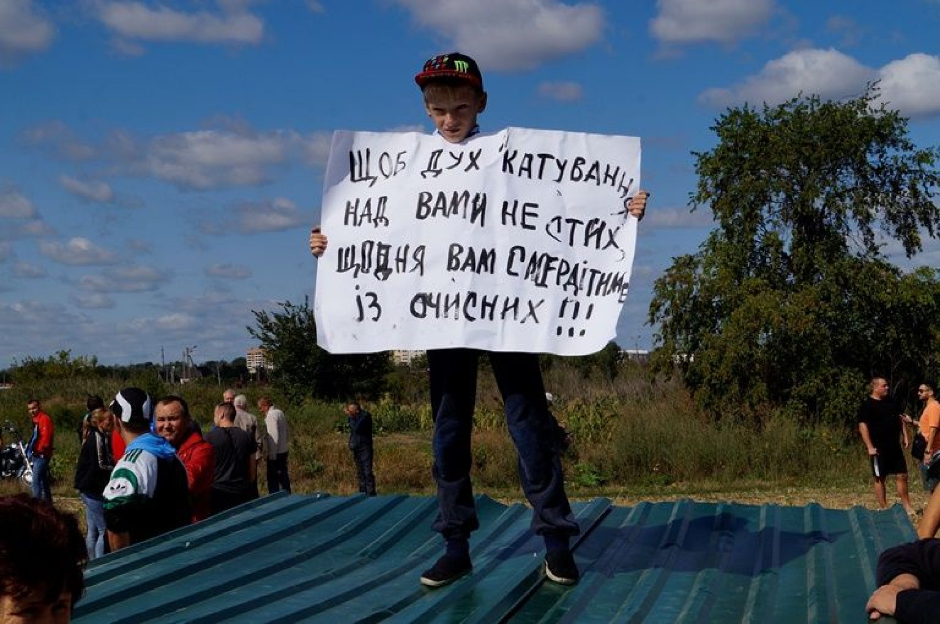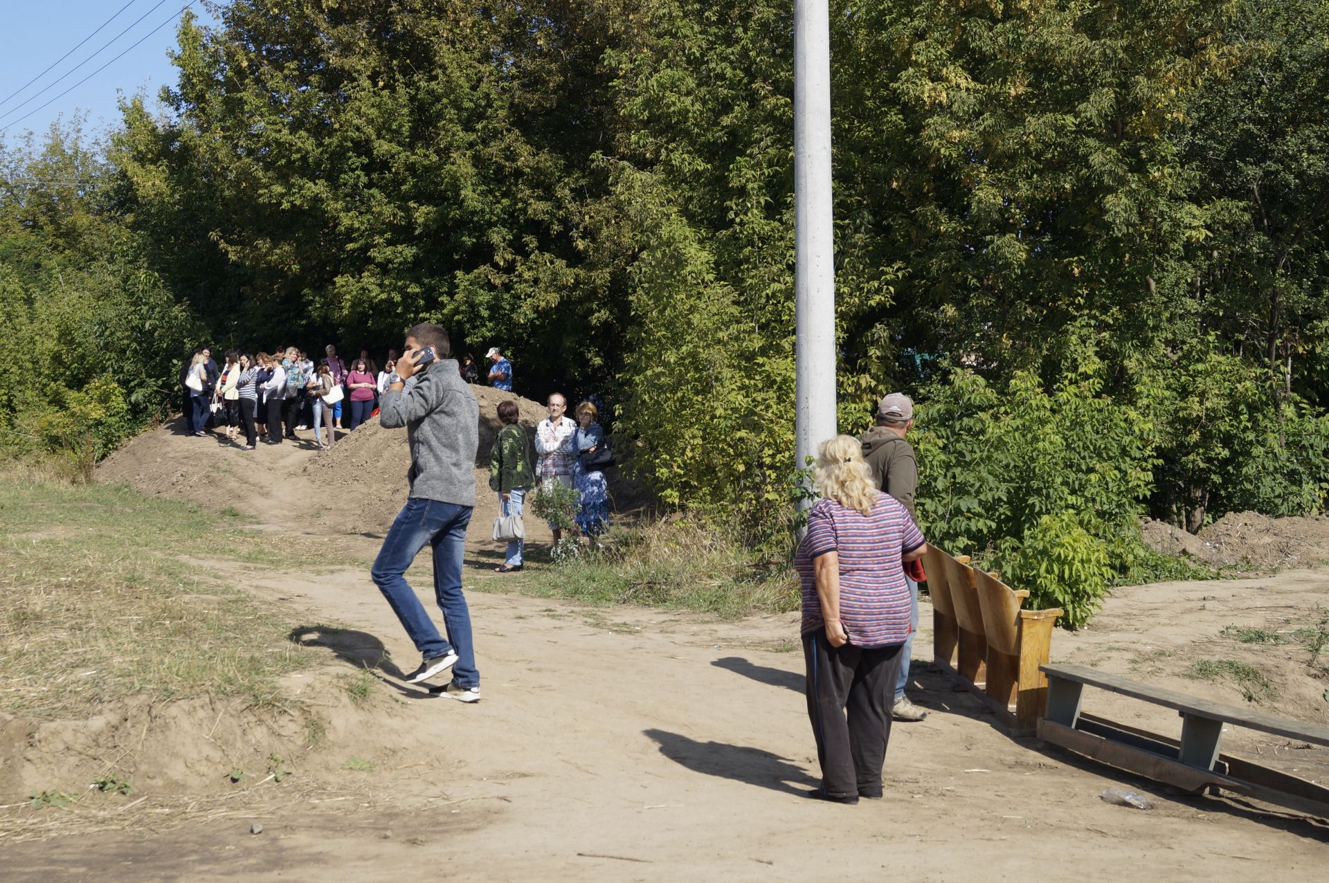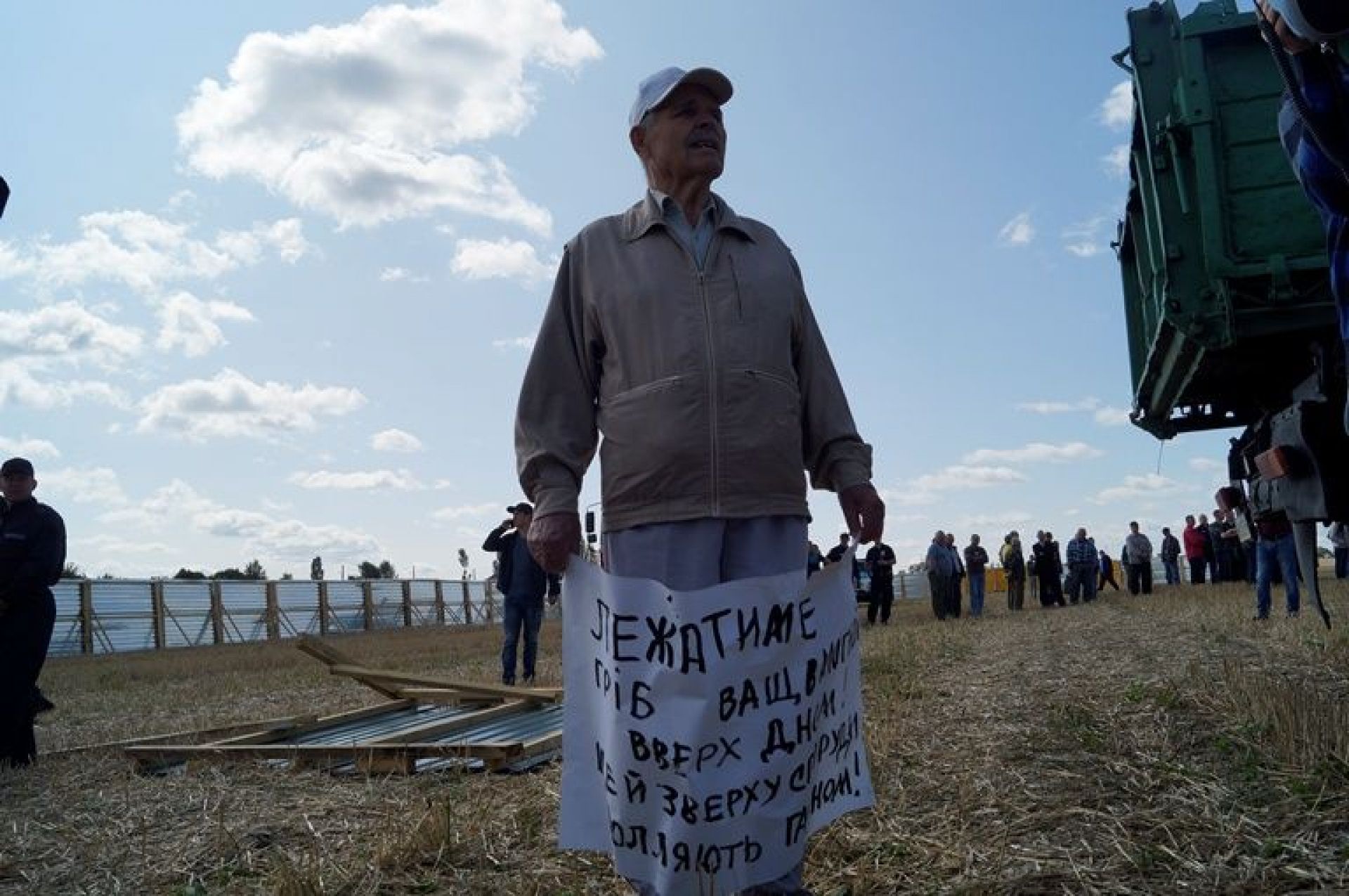 - Зранку муніципальні автобуси привезли до нас бюджетників – на «мітинг», - каже сабарівчанка Олена, яка чергує біля входу на поле. – Частина з них стоїть в кущах, інша вже вийшла на поле. Виходять по двоє-троє, щоб не всі разом.
