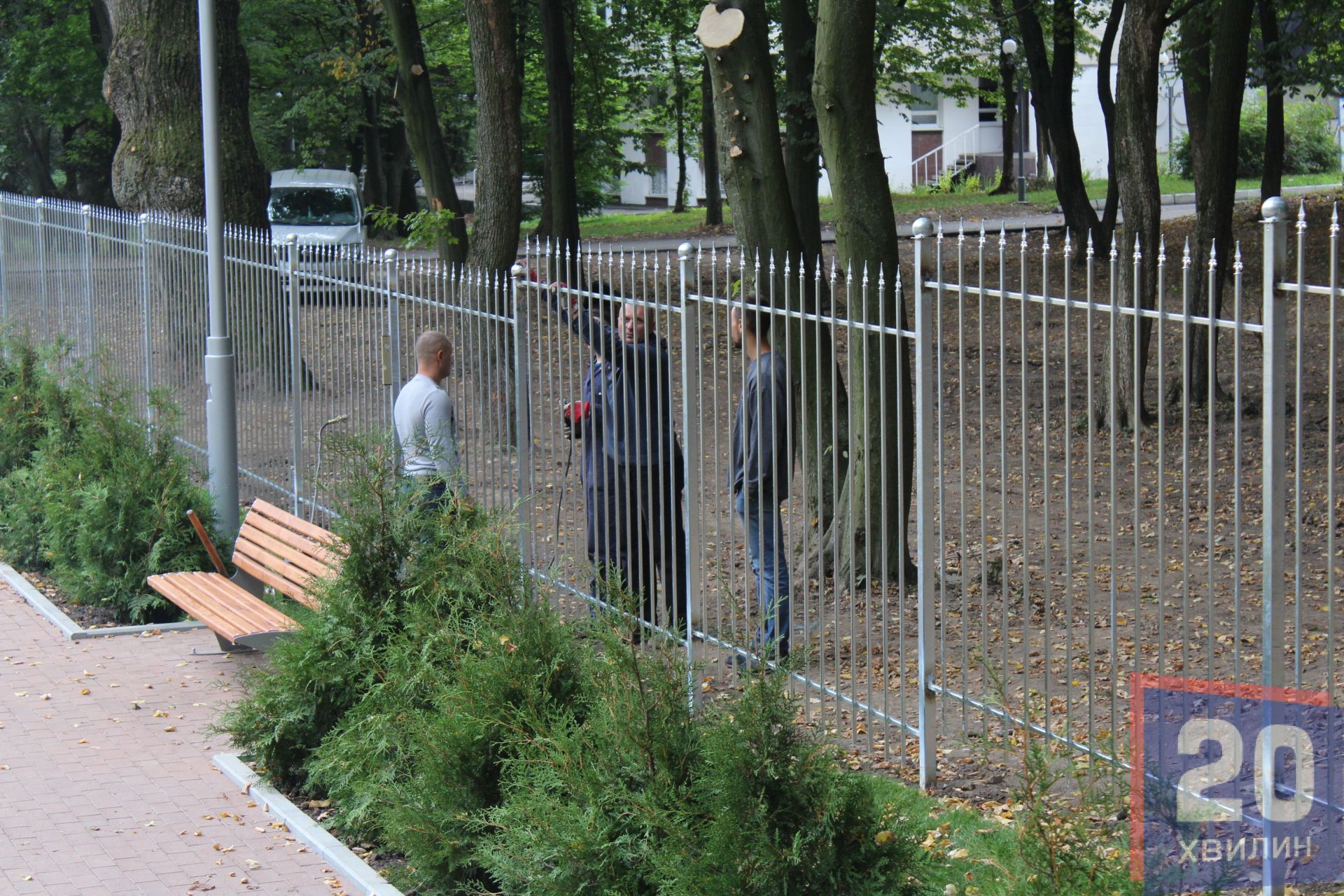 Для захисту нашої алеї виконали перші два пункти: робочі встановили вже половину огорожі, а на стовпах є відеокамери. Тоді як охоронців у «міні-Вінниці», як розказав завгосп парку Юрій Приймак, поки що немає.