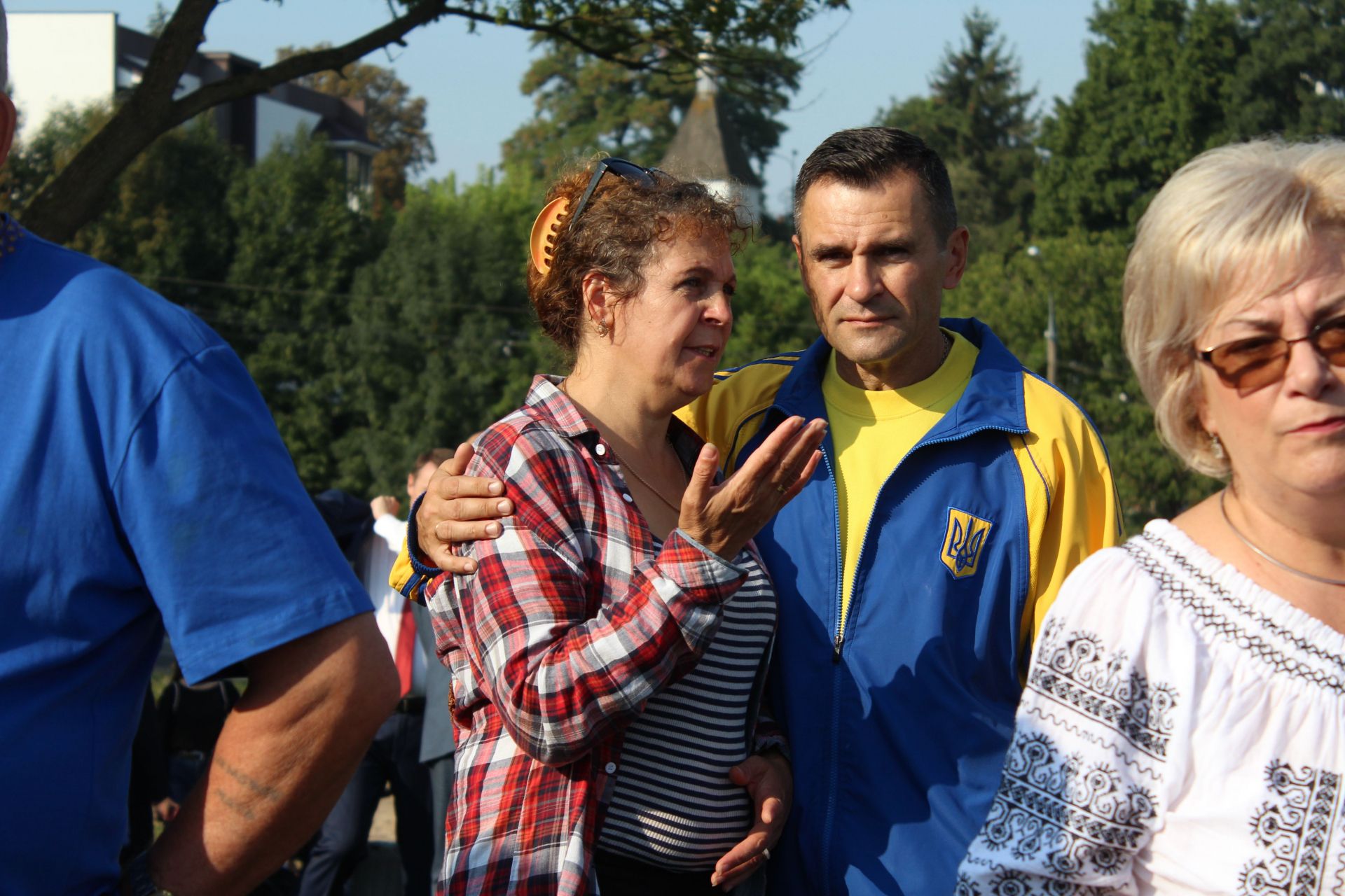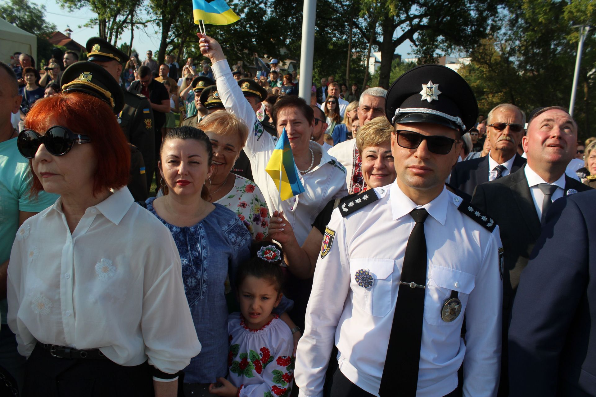 Вже о 08.20 на Замковій горі було людно. Люди зібралися тут, щоб побачити, як над містом замайорить величний український стяг. Розміри прапора 10 на 15 метрів.