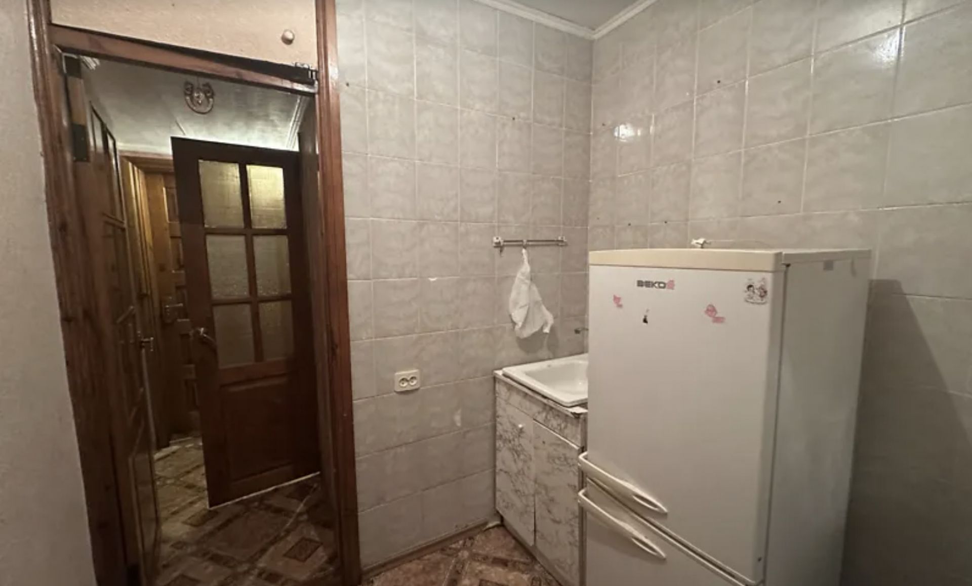 Квартира в жилому стані, є кухонні меблі та холодильник. Однак сама кімната без меблів та немає пральної машинки.