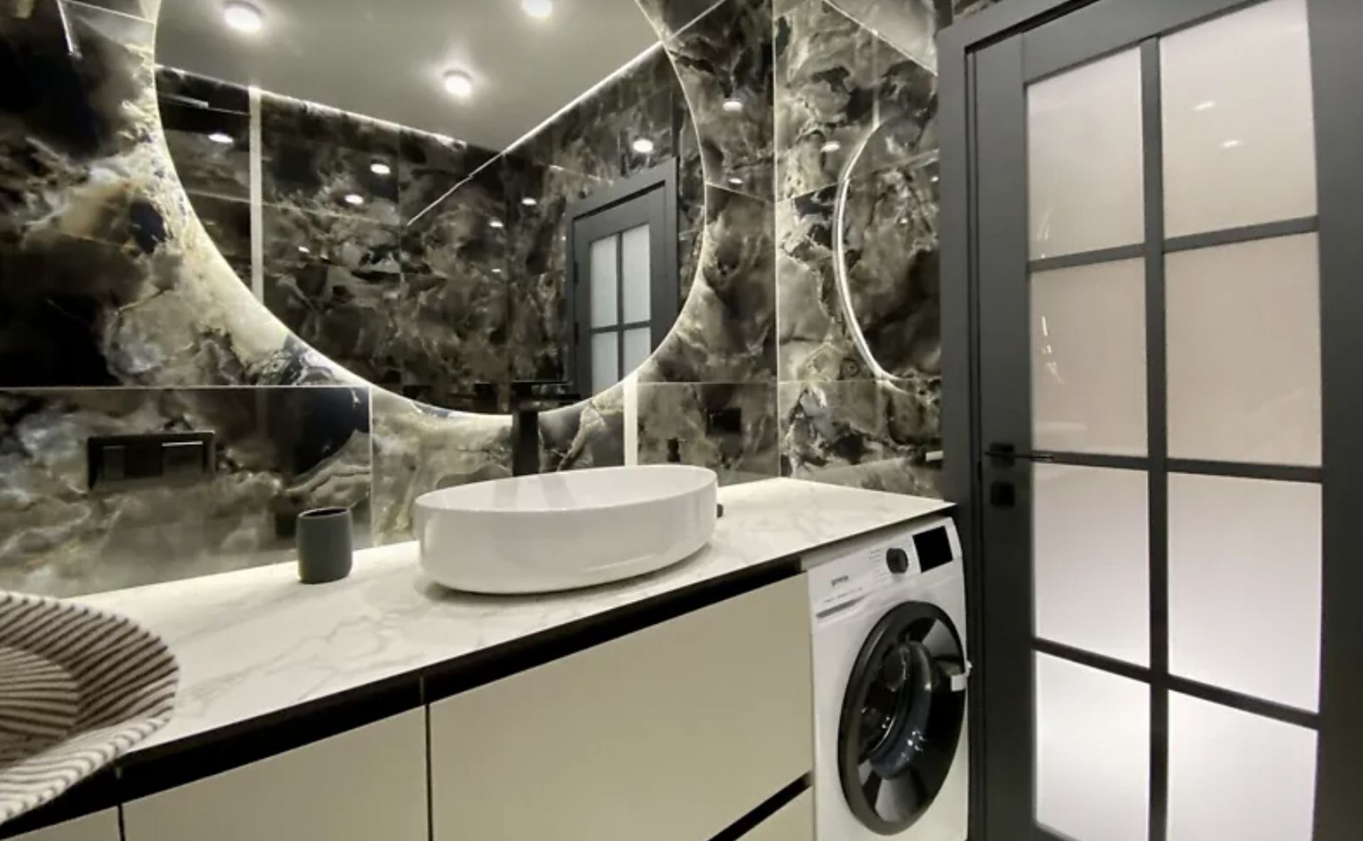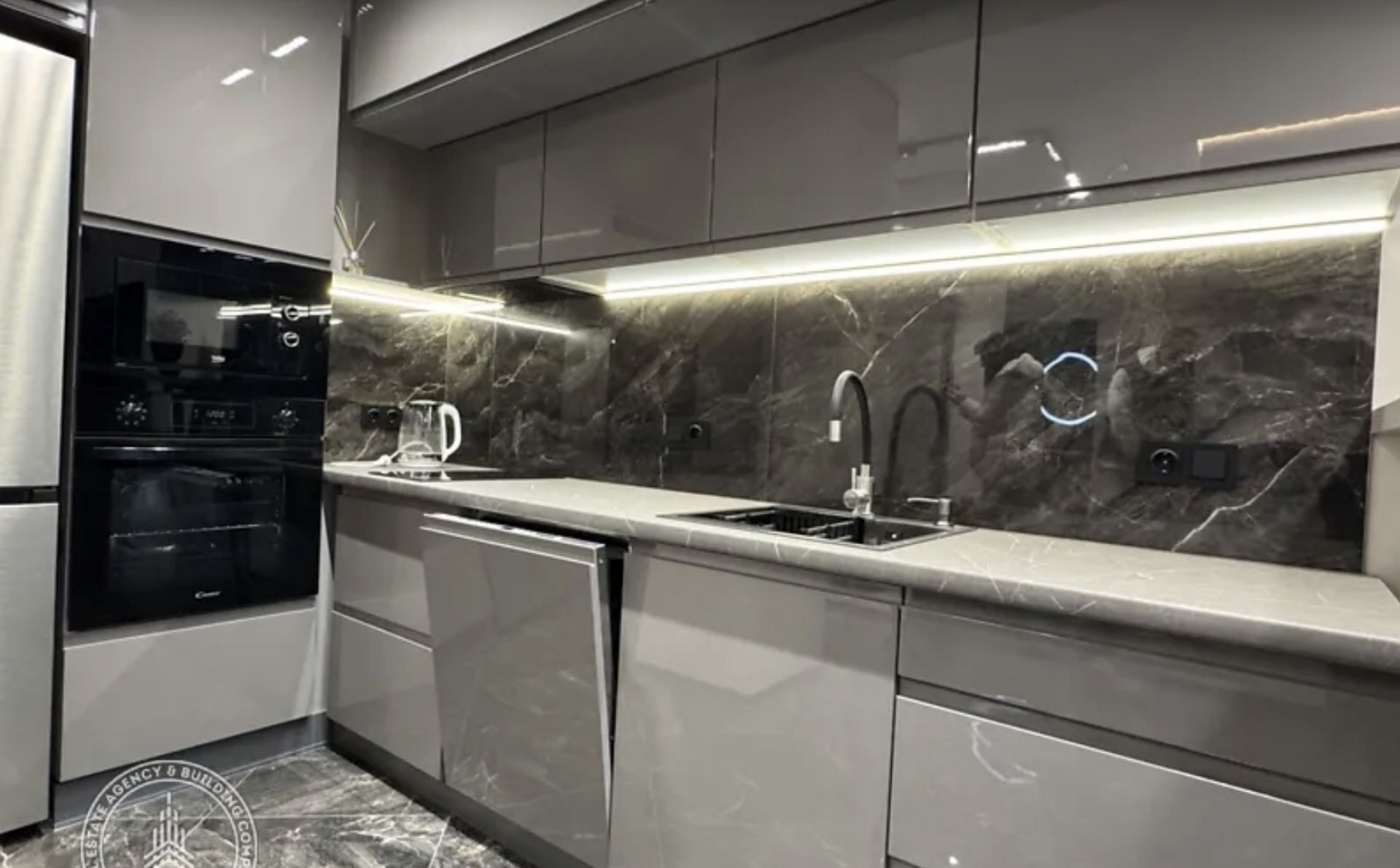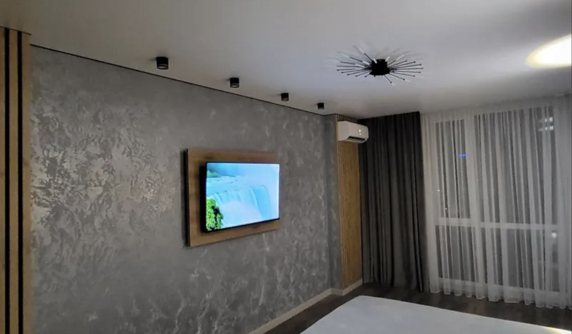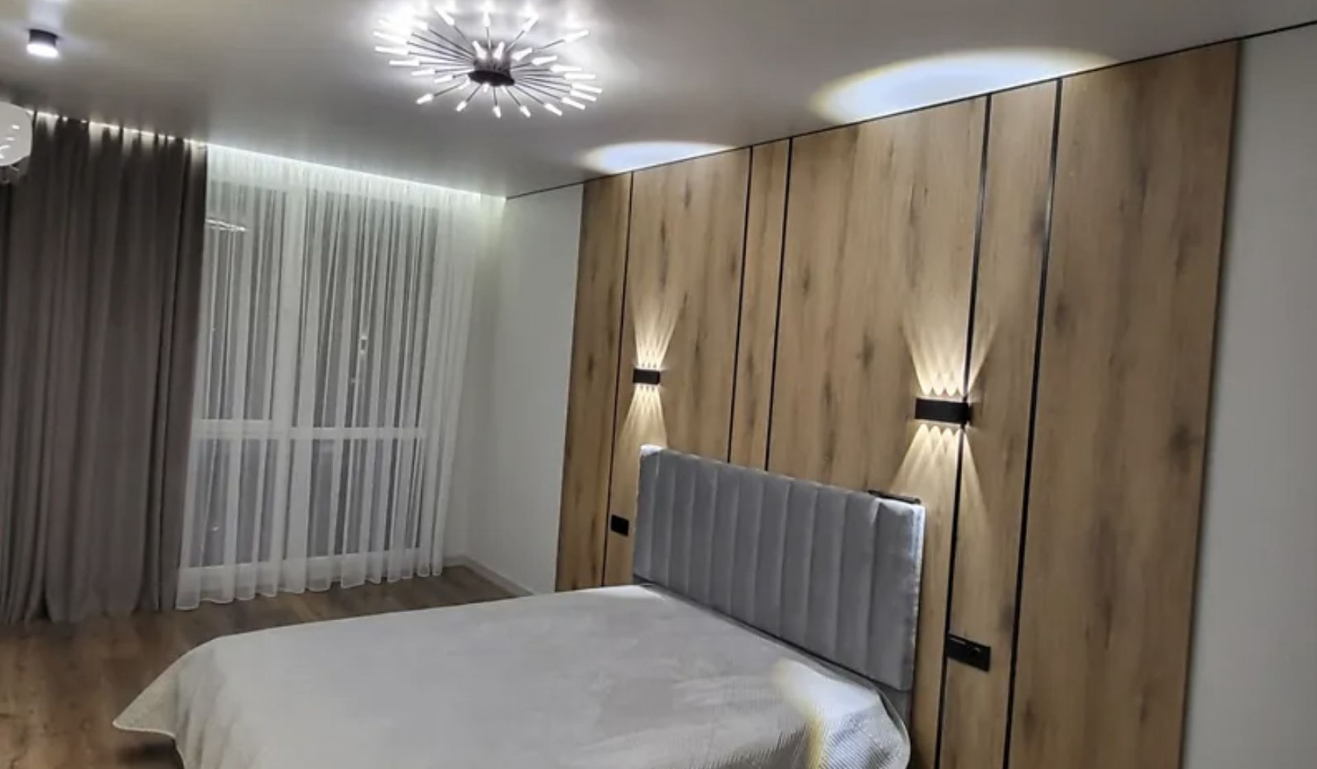 У оголошенні пишуть, що це перша здача помешкання, а в будинку, де знаходиться квартира, не вимикають світло. Тут є дизайнерський ремонт, повна комплектація меблів та техніки: двоспальне ліжко, диван, вмонтовані шафи, посудомийна машинка, вмонтований холодильник, телевізор, пральна машинка, витяжка, камін.