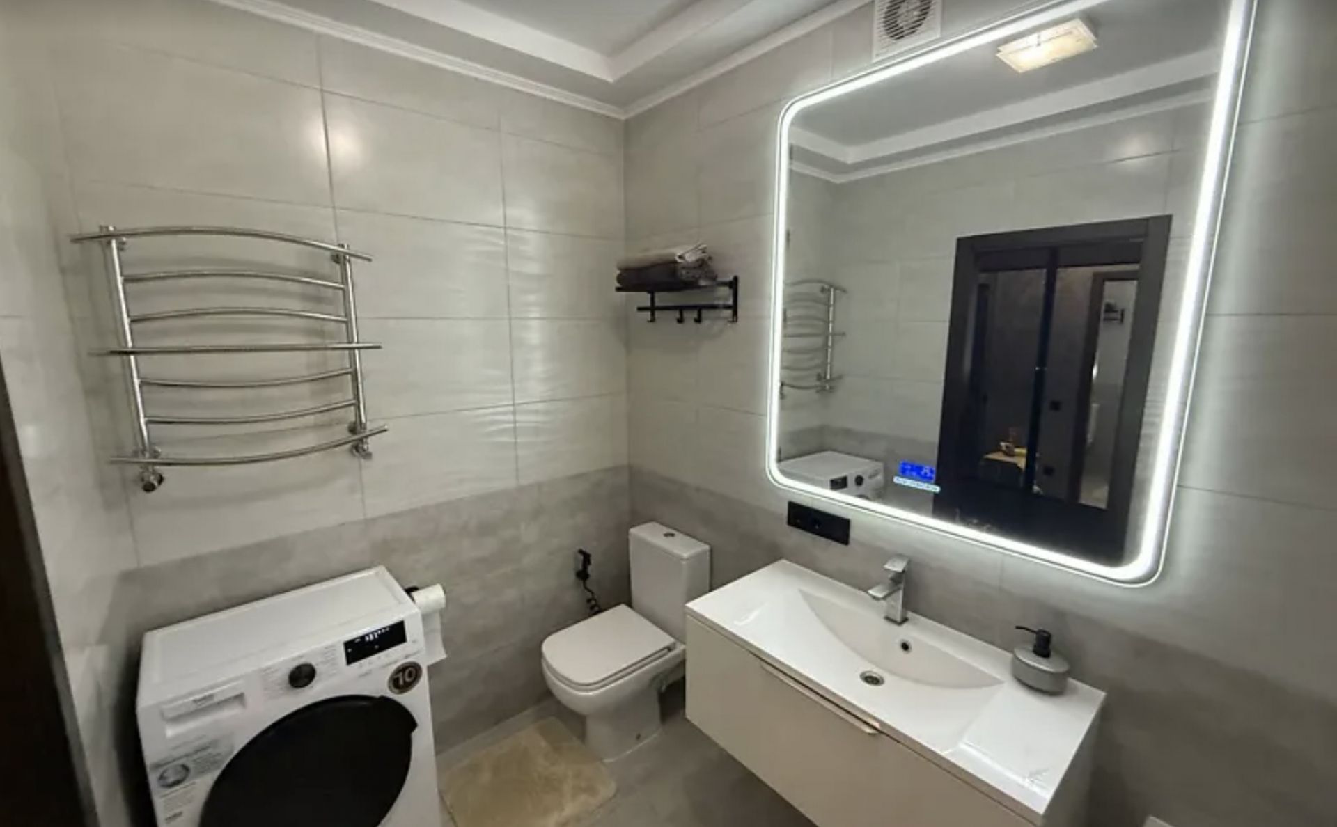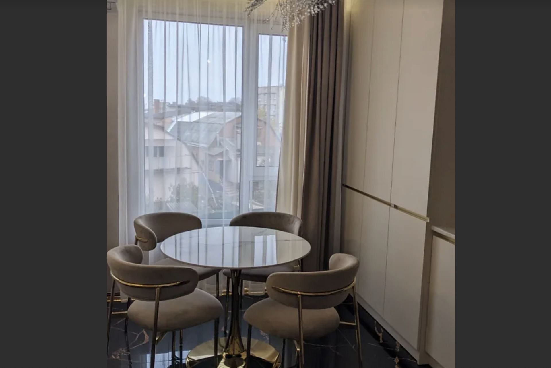 З оголошення дізналися, що ця оселя пропонується до першої здачі: у ній до цього ніхто не жив. Орендарям пропонують дизайнерський ремонт, індивідуальне газове опалення, теплу підлогу, панорамні вікна. Тут є всі меблі та побутова техніка: робот-пилосос, електрочайник, праска, постільна білизна, ковдра, рушники, каструлі, сковорідки, тарілки, чашки, стакани.