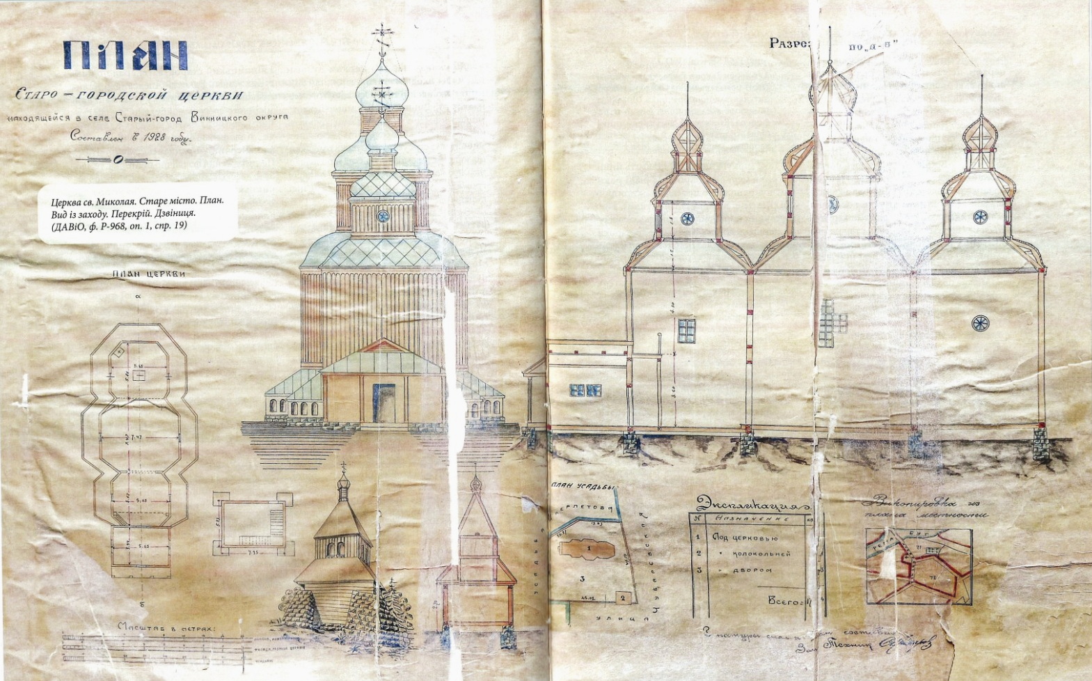 Світлини у дописі з буклету 1990 року «Вінницький обласний художній музей. Відділ декоративно-прикладного мистецтва. Путівник» та креслення храму з фондів ДАВіО.