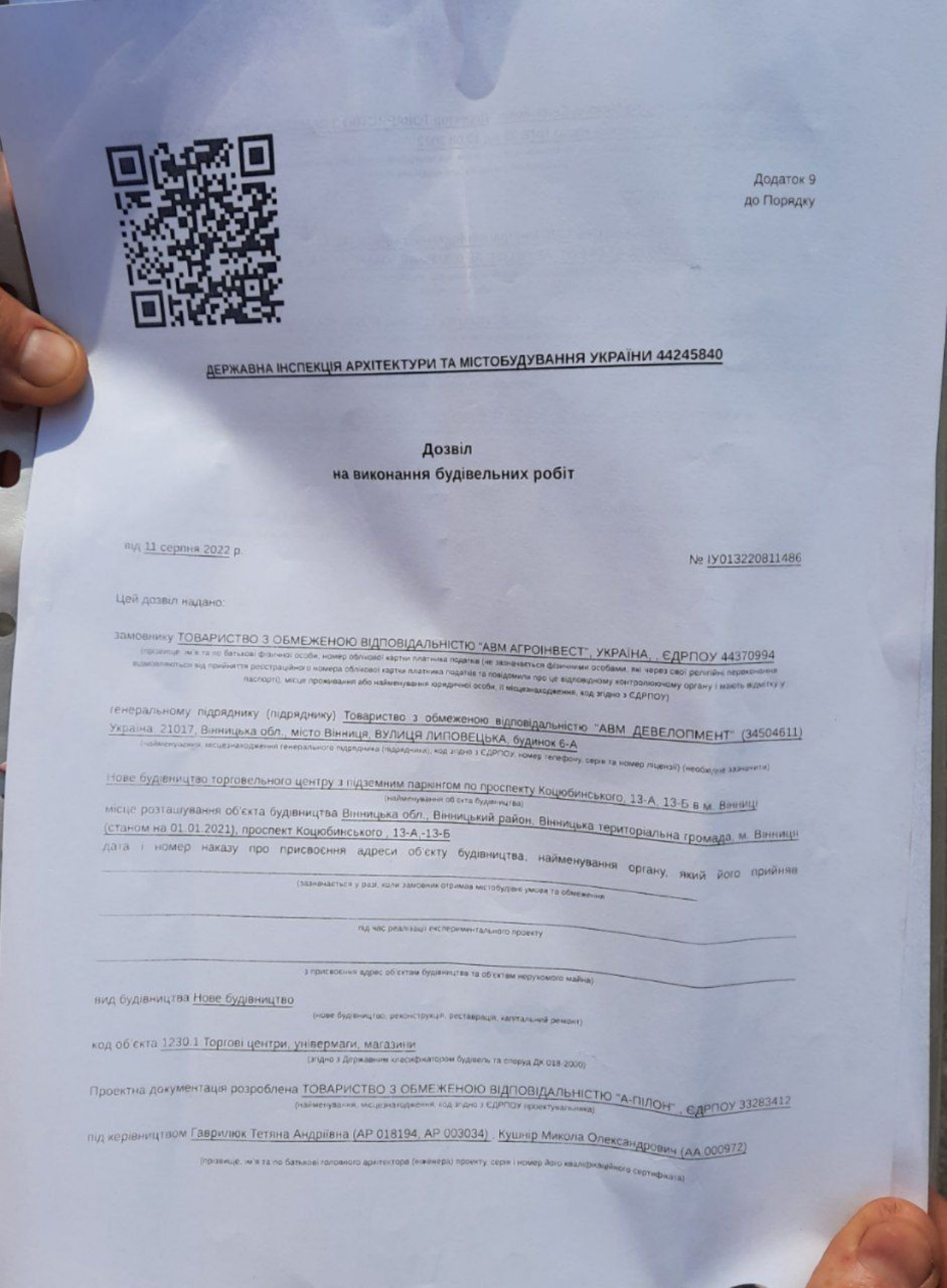 — На разі все, що я вам можу сказати, що в документах є помилка стосовно дозволу будівництва, вказано, що його надала міська рада, а в дозволі виконання будівельних робіт написано, що видавала Державна інспекція архітектури містобудування, — говорить пан Василь.