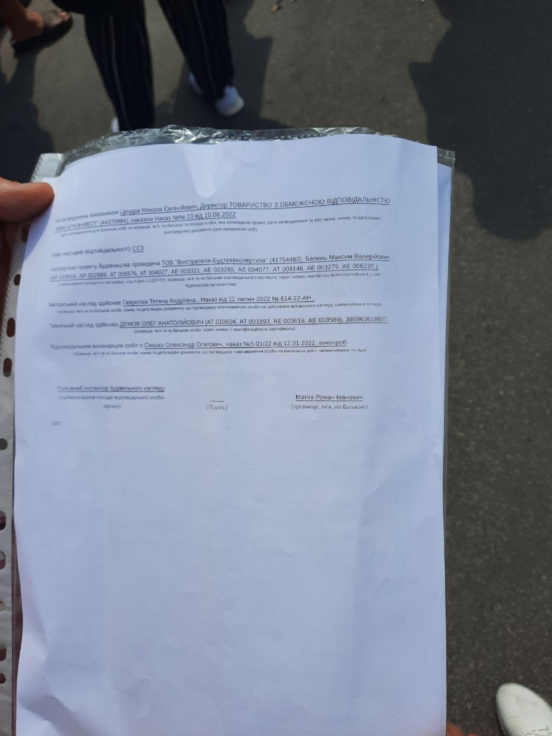 Заступник начальника відділу Департаменту архітектурно-будівельного контролю приїхав, щоб розібратися, яка тут відбувається ситуація, адже об'єкт належить до класу наслідків СС3, тобто за даний об'єкт несе відповідальність Державна інспекція України.