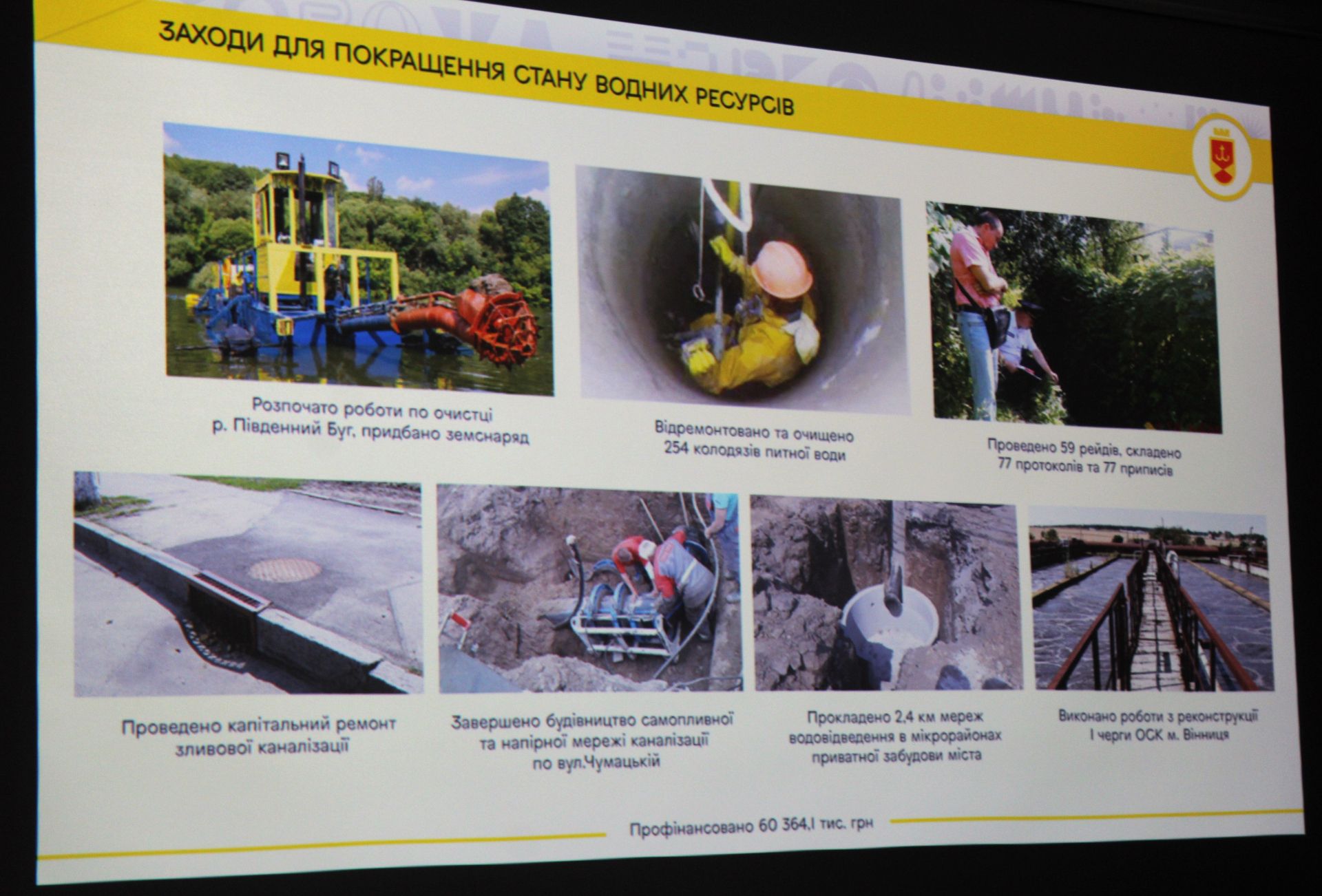 — За ці кошти розпочато роботу по очистці річки Південний Буг, виконано ремонт і очищено 254 колодязів, проведено капремонт зливової каналізації, завершено будівництво мережі каналізації на Чумацькій, прокладено 2,4 кілометра мереж каналізації в приватному секторі та виконано роботи з реконструкції очисних споруд на Сабарові, 1 черга, — сказала очільниця відділу охорони довквілля Департаменту економіки та інвестиції міськради Світлана Юзвак.
