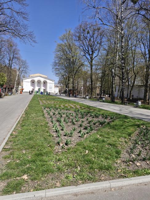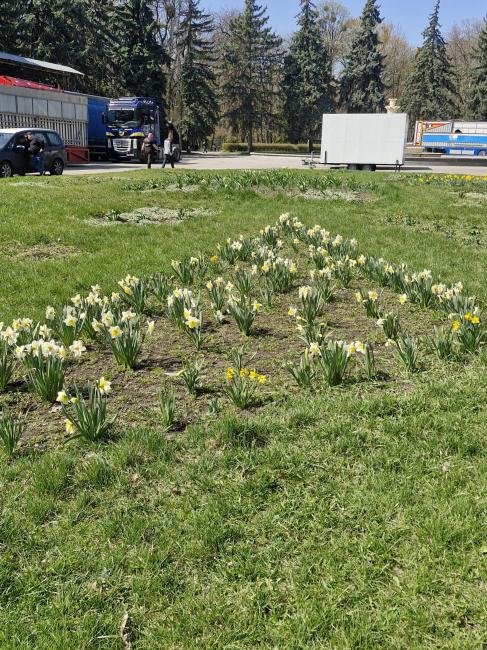 Лише біля центрального фонтану журналістка помітила нарциси та тюльпани. Втім, очевидно, що ці квіти — «спадок» минулих років. Більшість квітників у парку перебувають у занедбаному стані, що зовсім не пасує статусу головної рекреаційної зони міста.