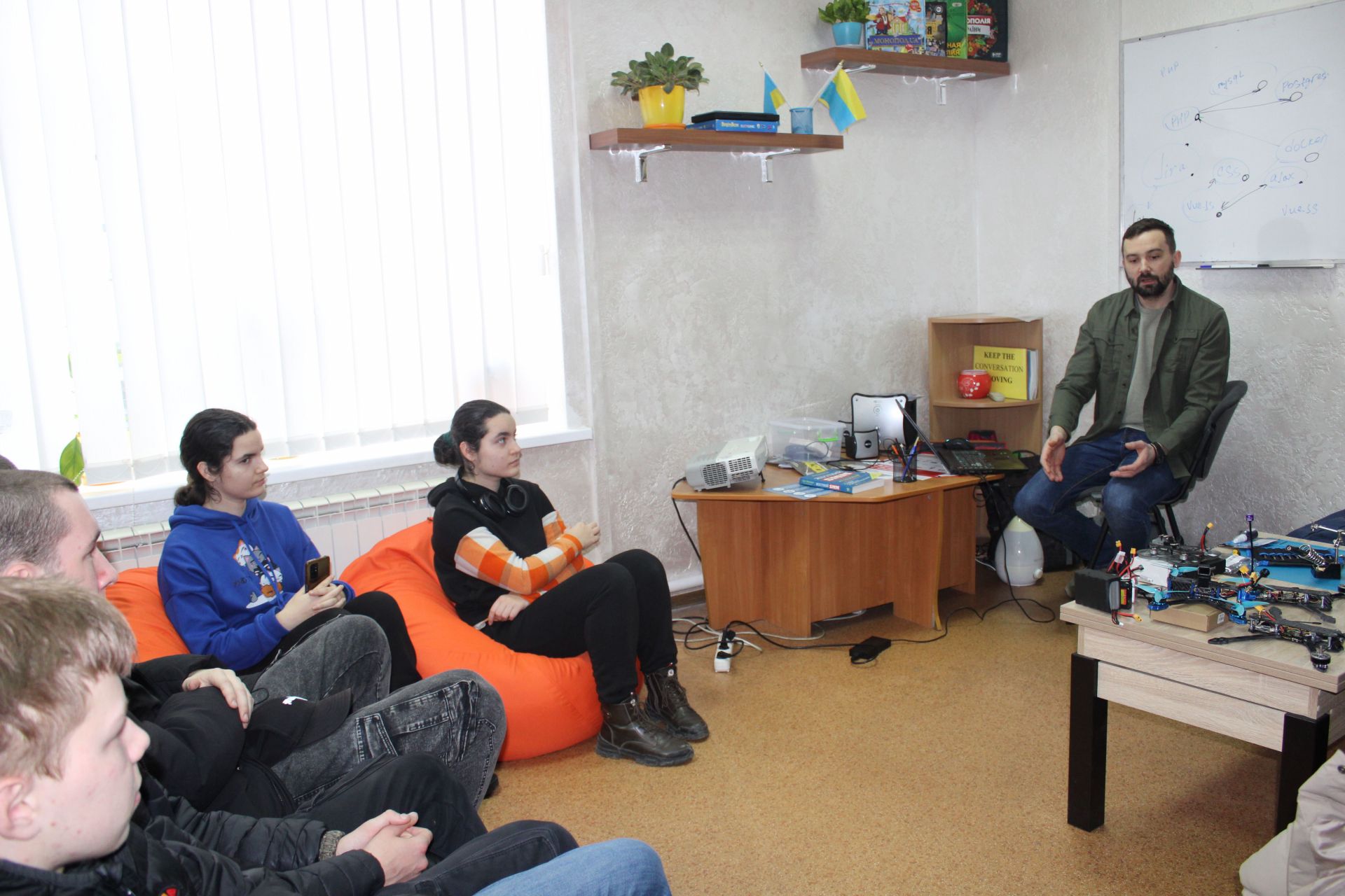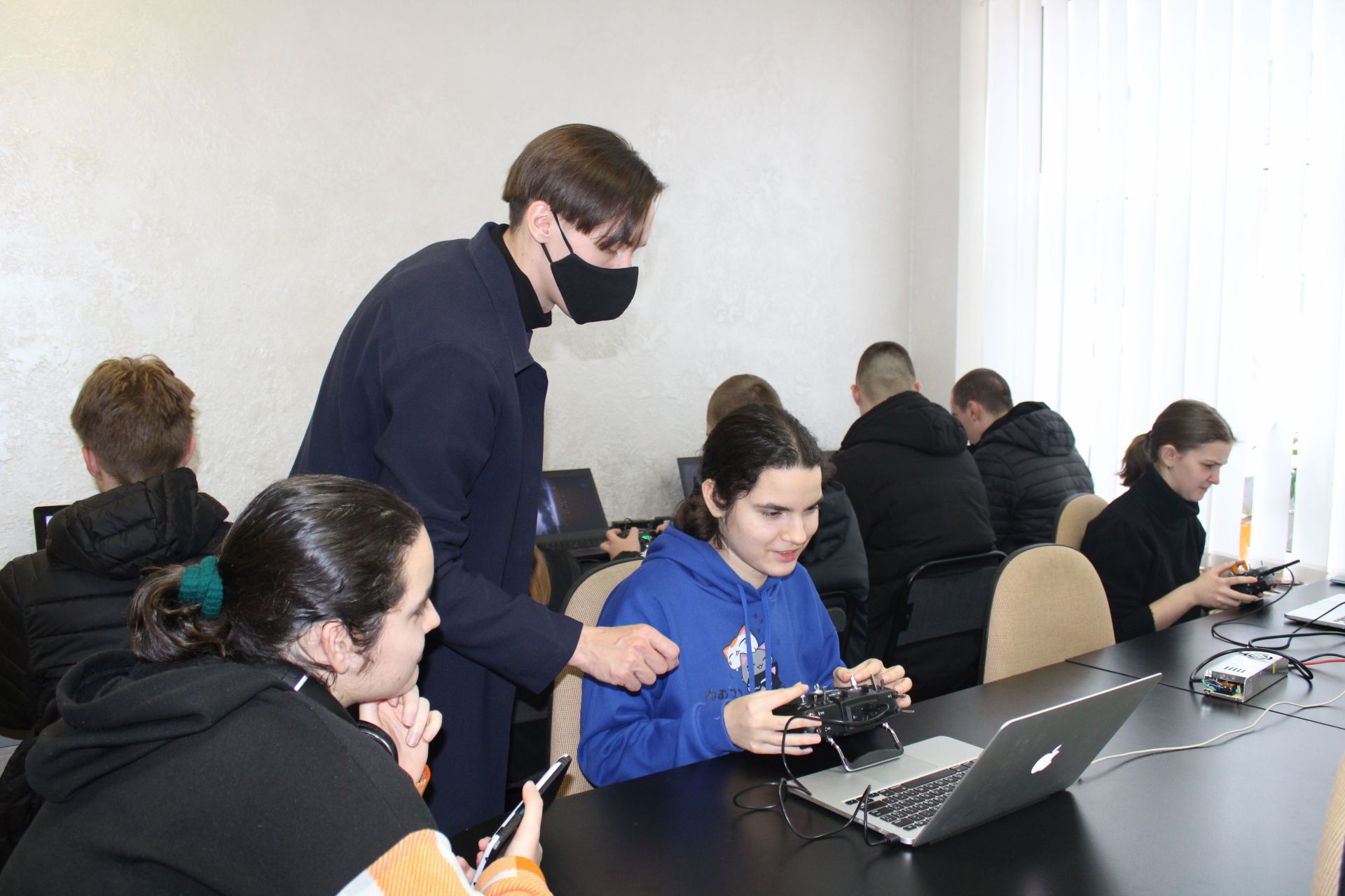 У цьому вузі, на льотному факультеті, де сподіваються навчатися більшість присутніх хлопців і дівчат, є така спеціальність: пілоти БПЛА. Тож рекрутери запропонували їм пройти ознайомчий курс в ІТ-Академії. Щоб вони побачили, і змогли згодом порівняти, як подається програма для цивільних, на чому тут тренують, літають.