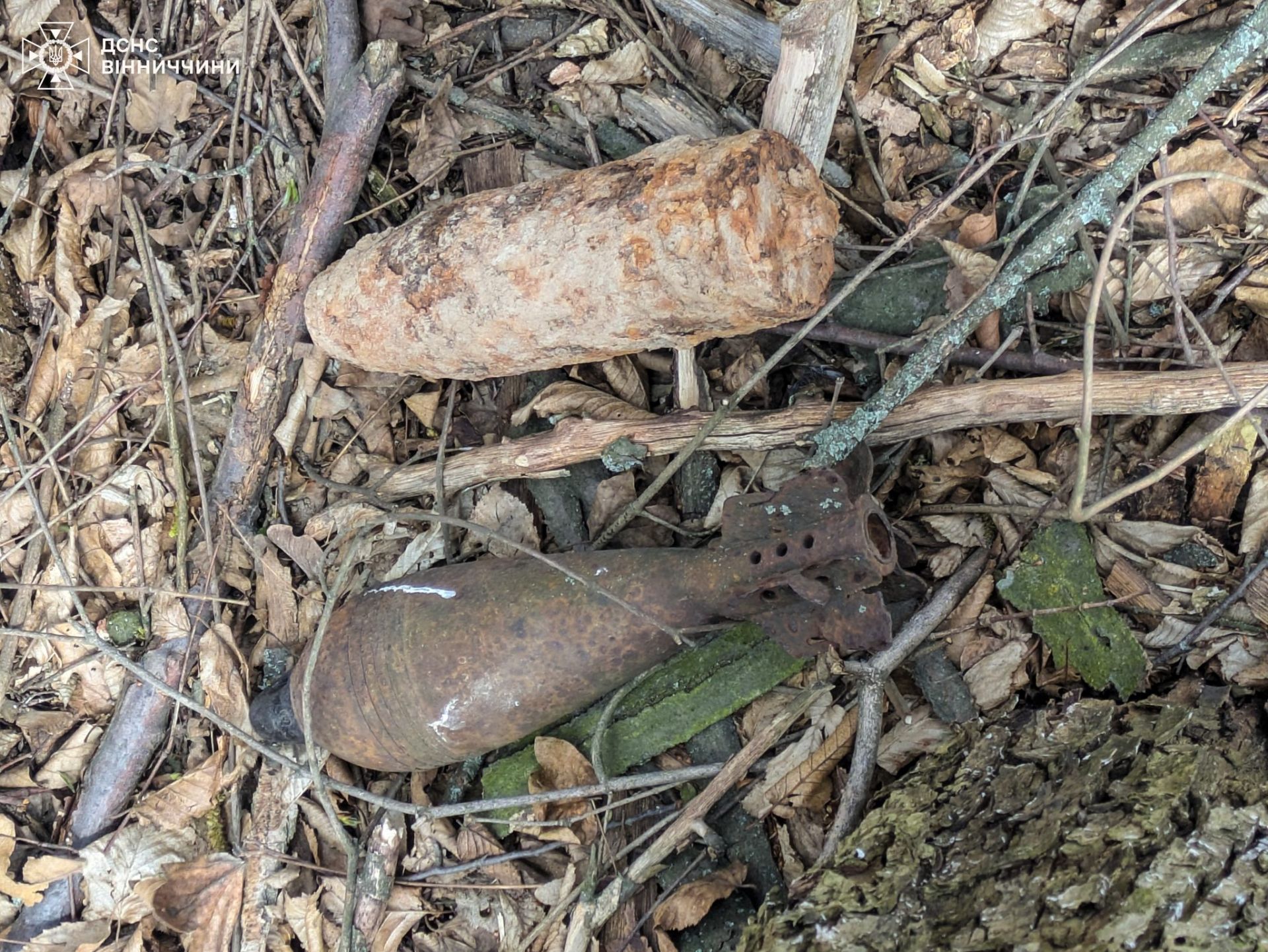 - На Вінниччині в лісі знайшли боєприпаси часів Другої світової війни. Сапери ДСНС їх знищили: мінометну міну (82 мм) та артснаряд (76 мм).