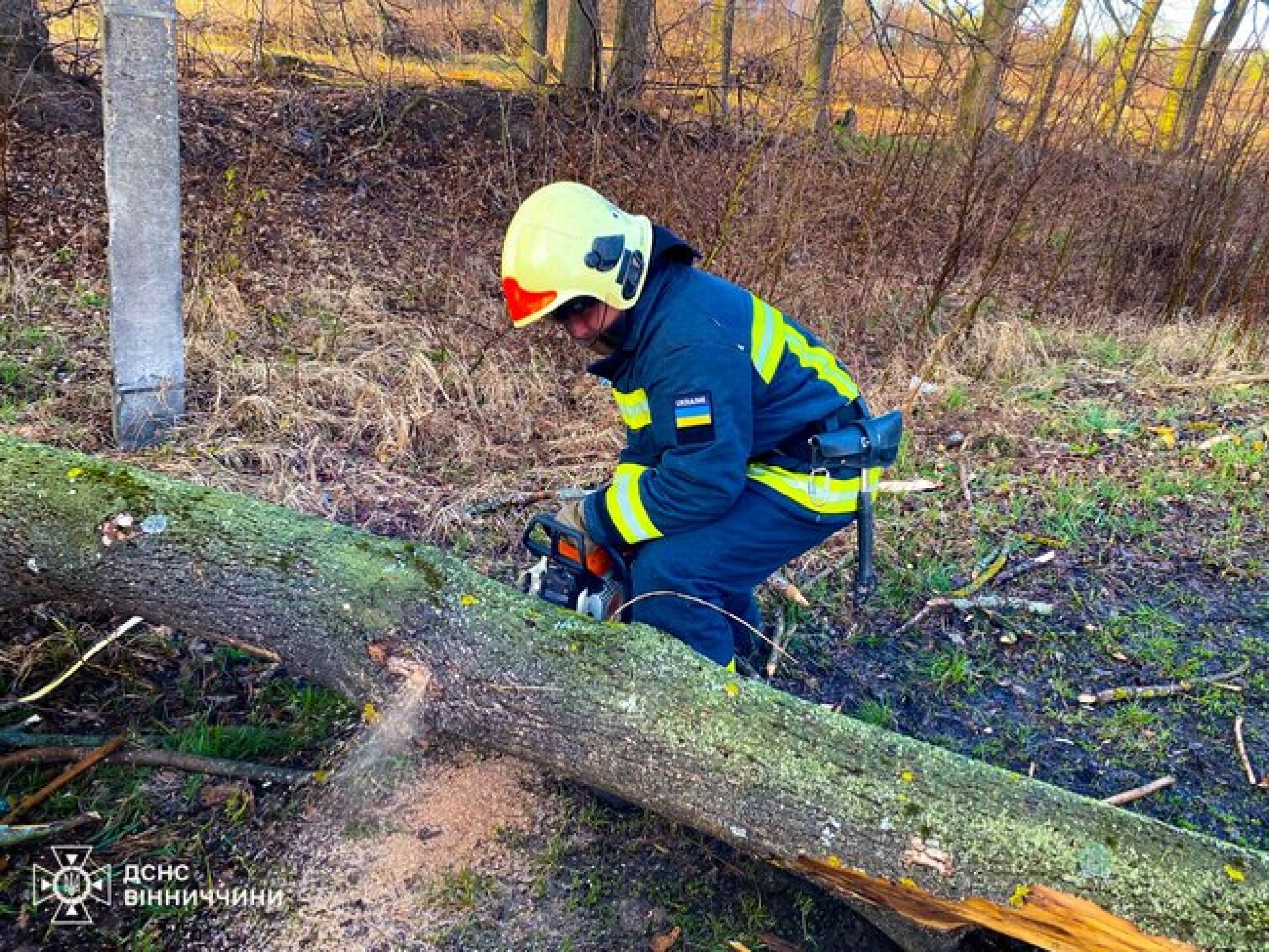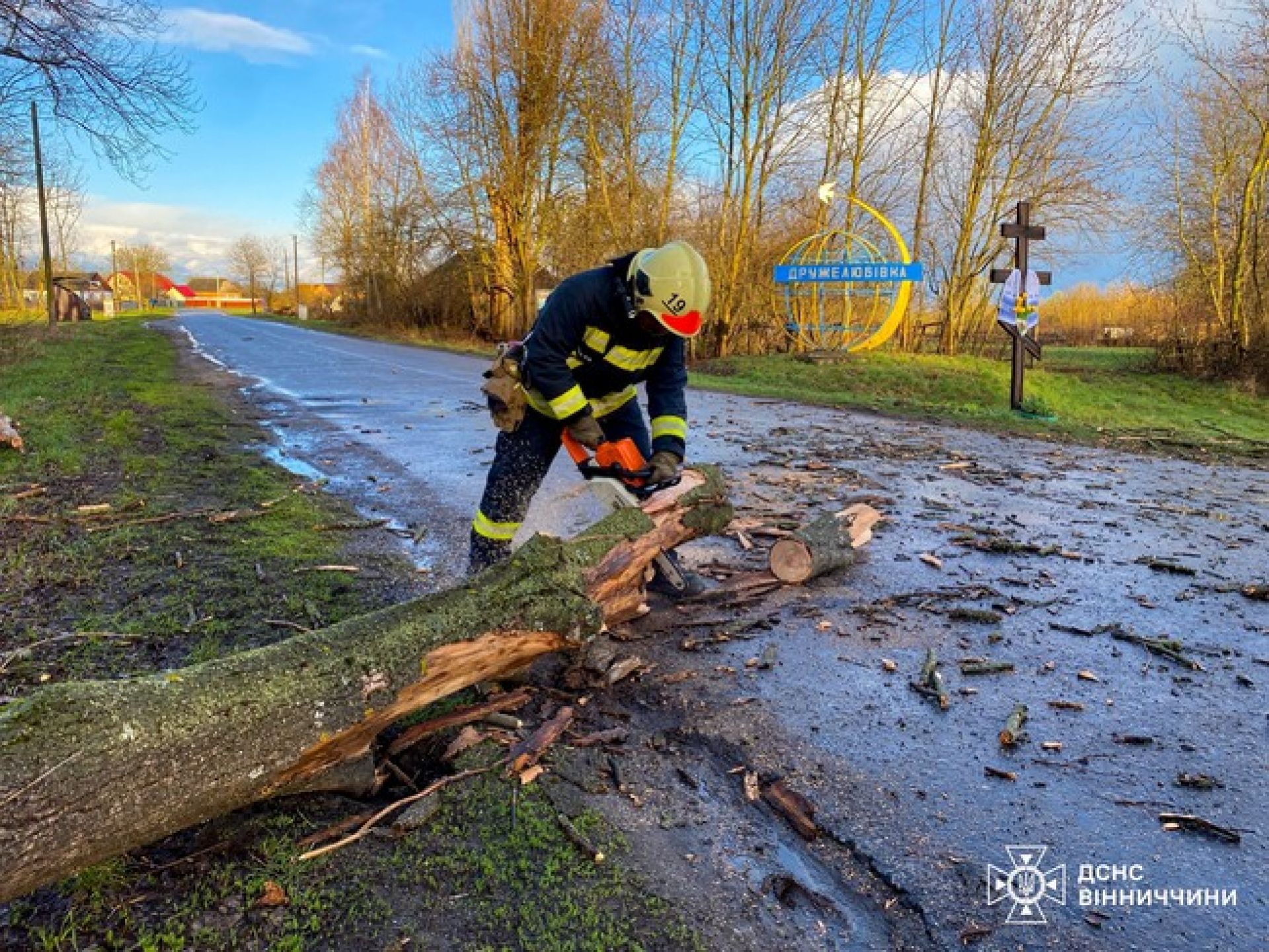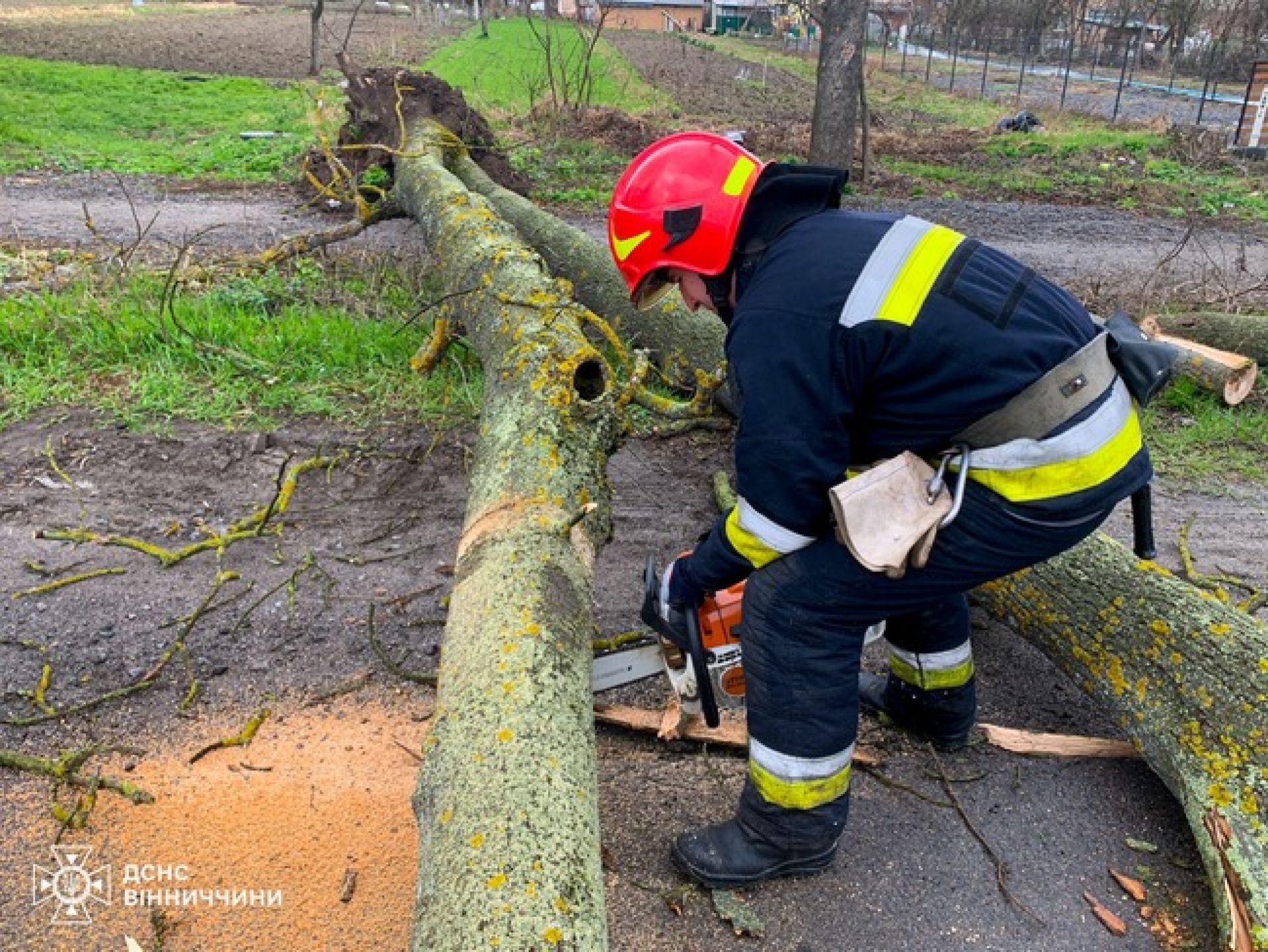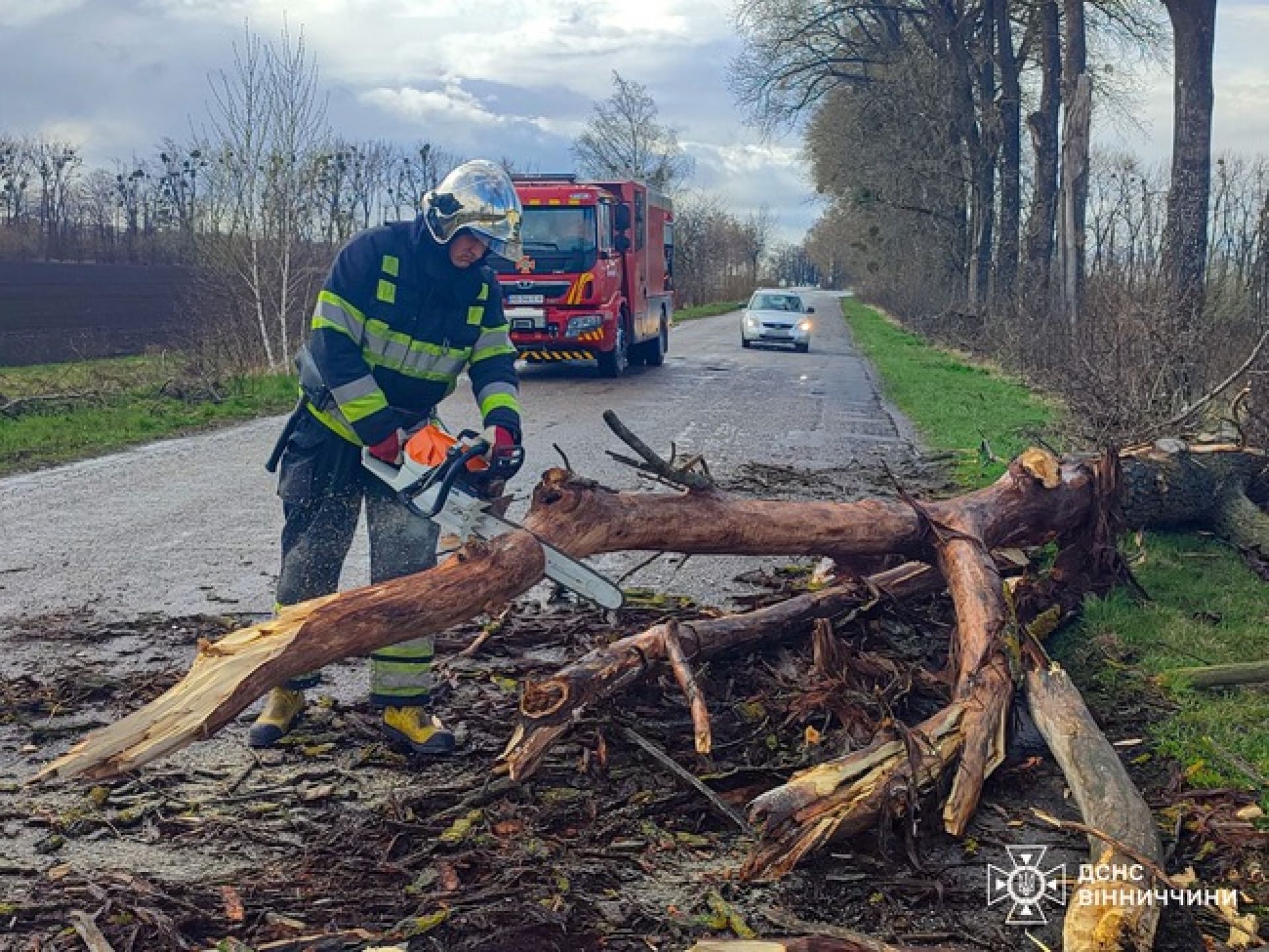 — Підрозділи працюють у посиленому режимі. Головне завдання — максимально швидко розчистити шляхи, аби не допустити заторів та аварійних ситуацій. Вітер настільки потужний, що старі дерева падають миттєво, — коментують у ГУ ДСНС України у Вінницькій області.
