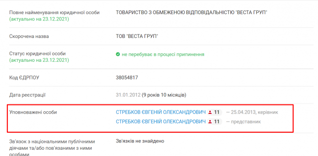 Орендаторку, яку помістили в ізолятор тимчасового тримання, звати Жанна. А ось сам заклад належить Товариству «Веста Груп», керівником якої є Стрєбков Євген Олександрович.